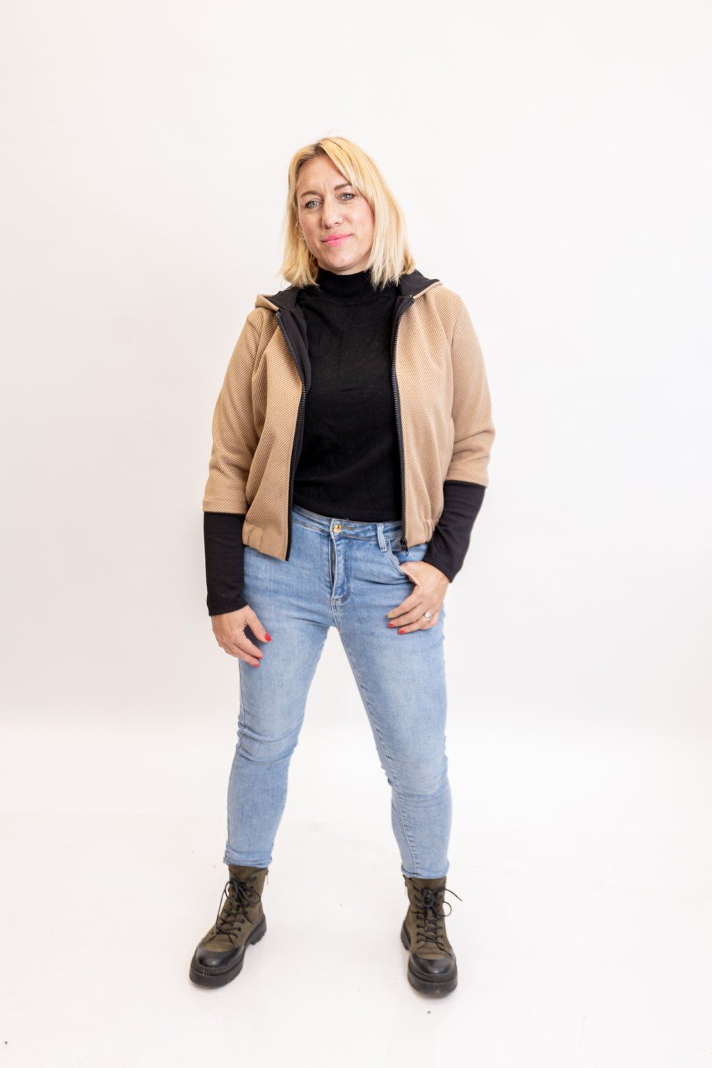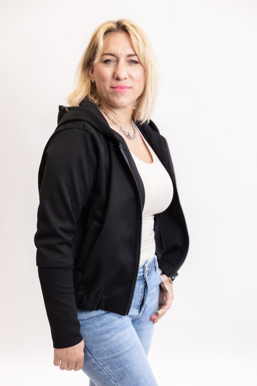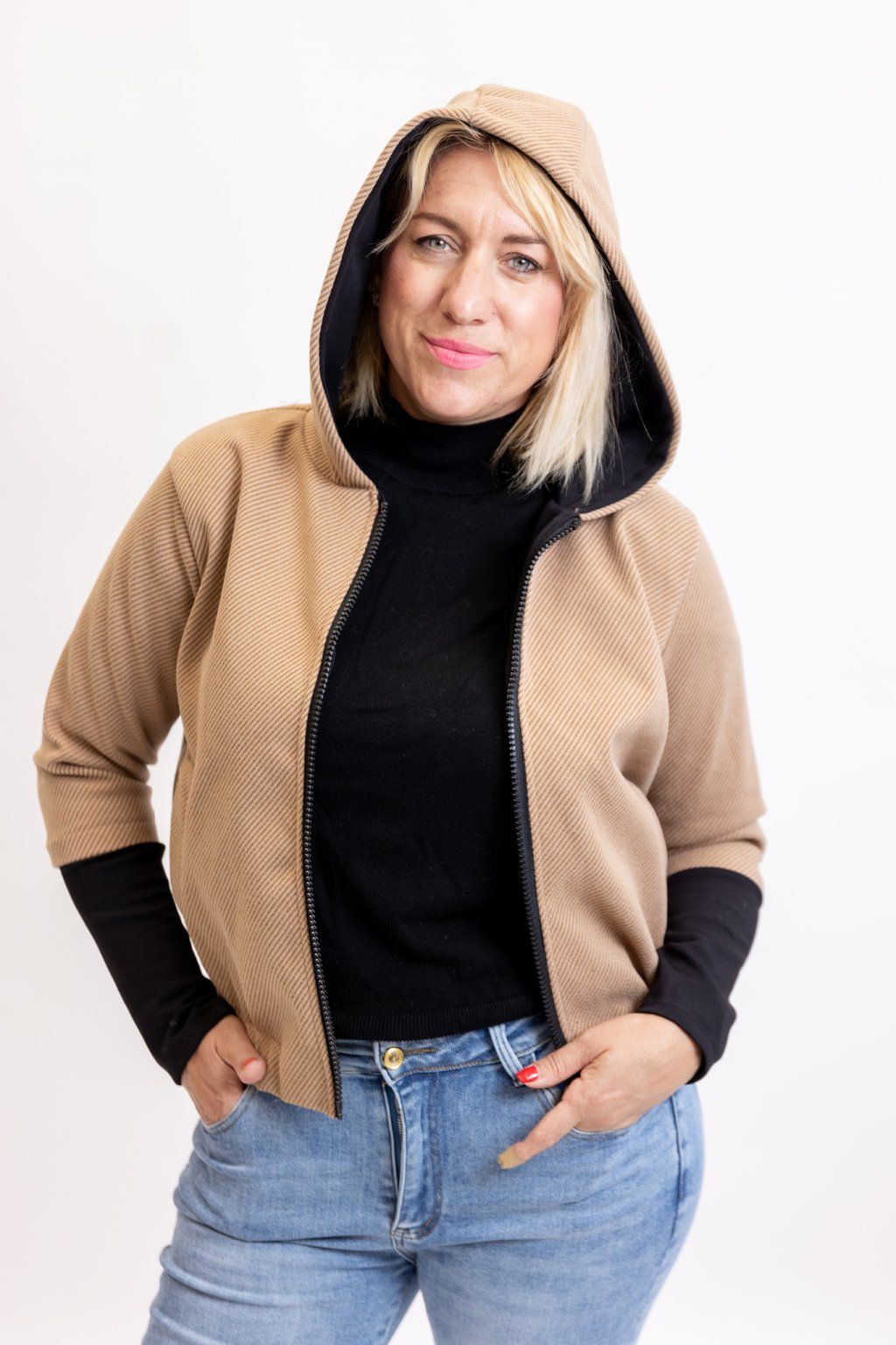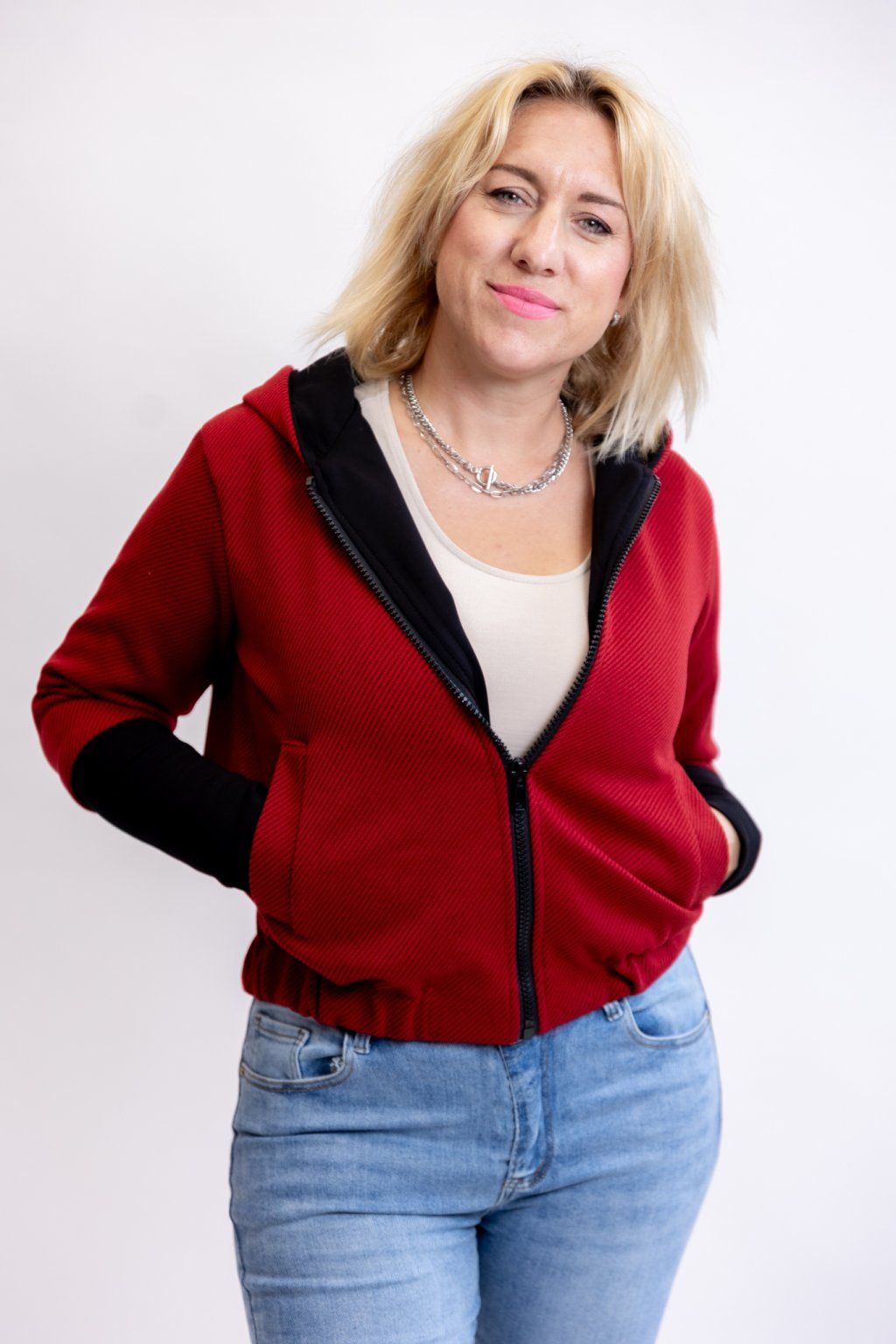 Hledáš originální svršek? Vyzkoušej bomber z teplákoviny MARISA. Tahle bomberka dokonale sedne každé postavě! Je podšitá a příjemně teplá. Má dvě kapsy, kapuci a po celé délce zapínání na zip. Spodní lem je zúžený gumou a hezky zvýrazní tvé křivky. Rukáv má dlouhý úzký náplet, který můžeš libovolně vyhrnout. Nejlépe sedne velikostem S-L. Podrobnější rozměry najdeš v popisku produktu. Máme ho pro tebe ve 4 barvách.