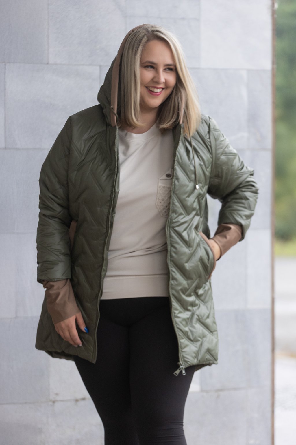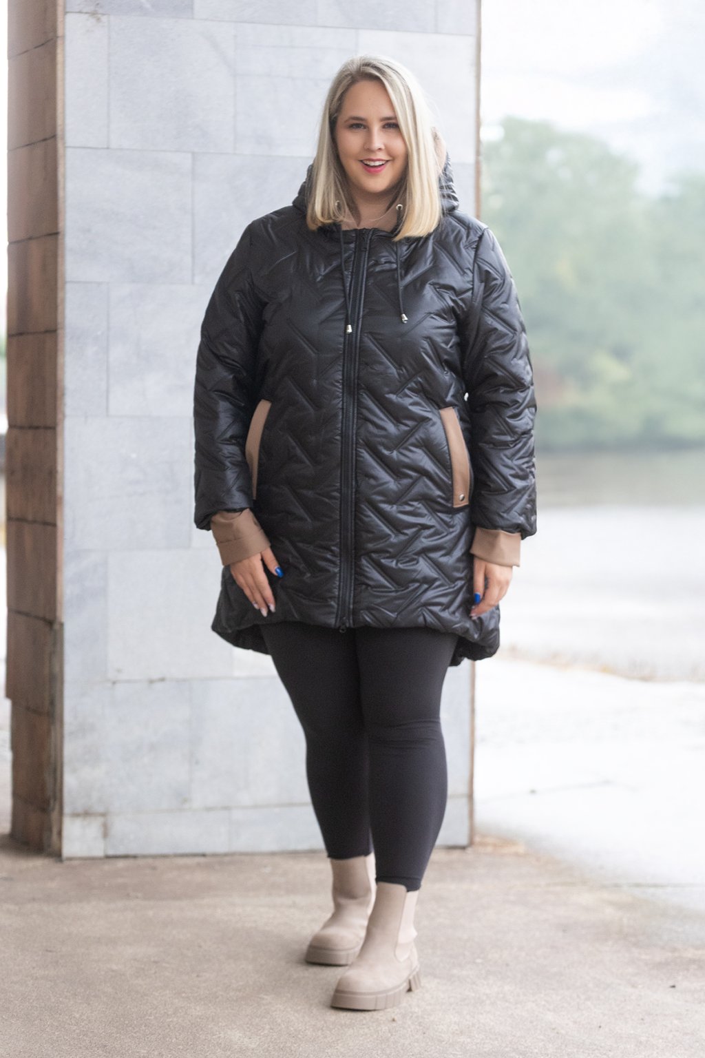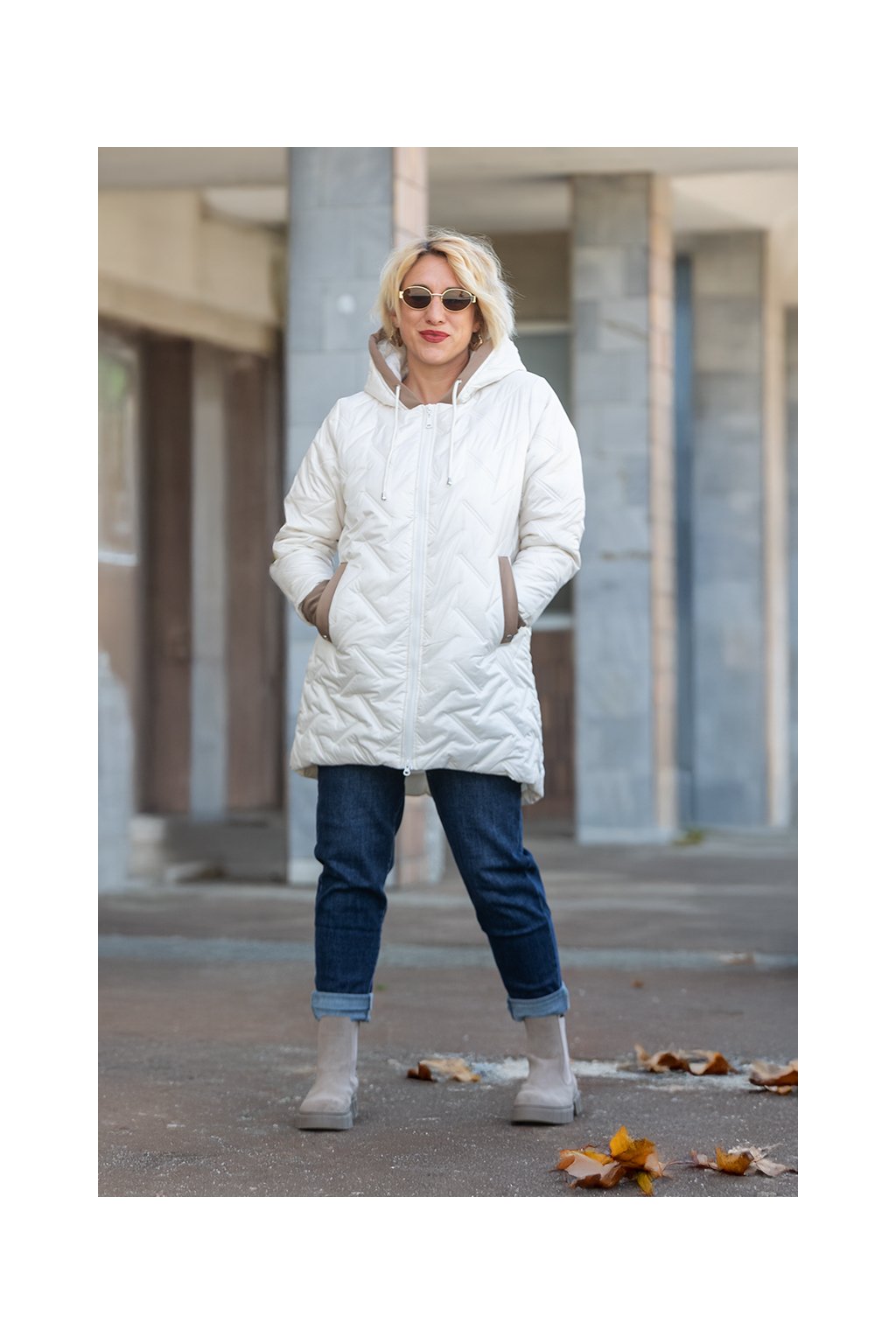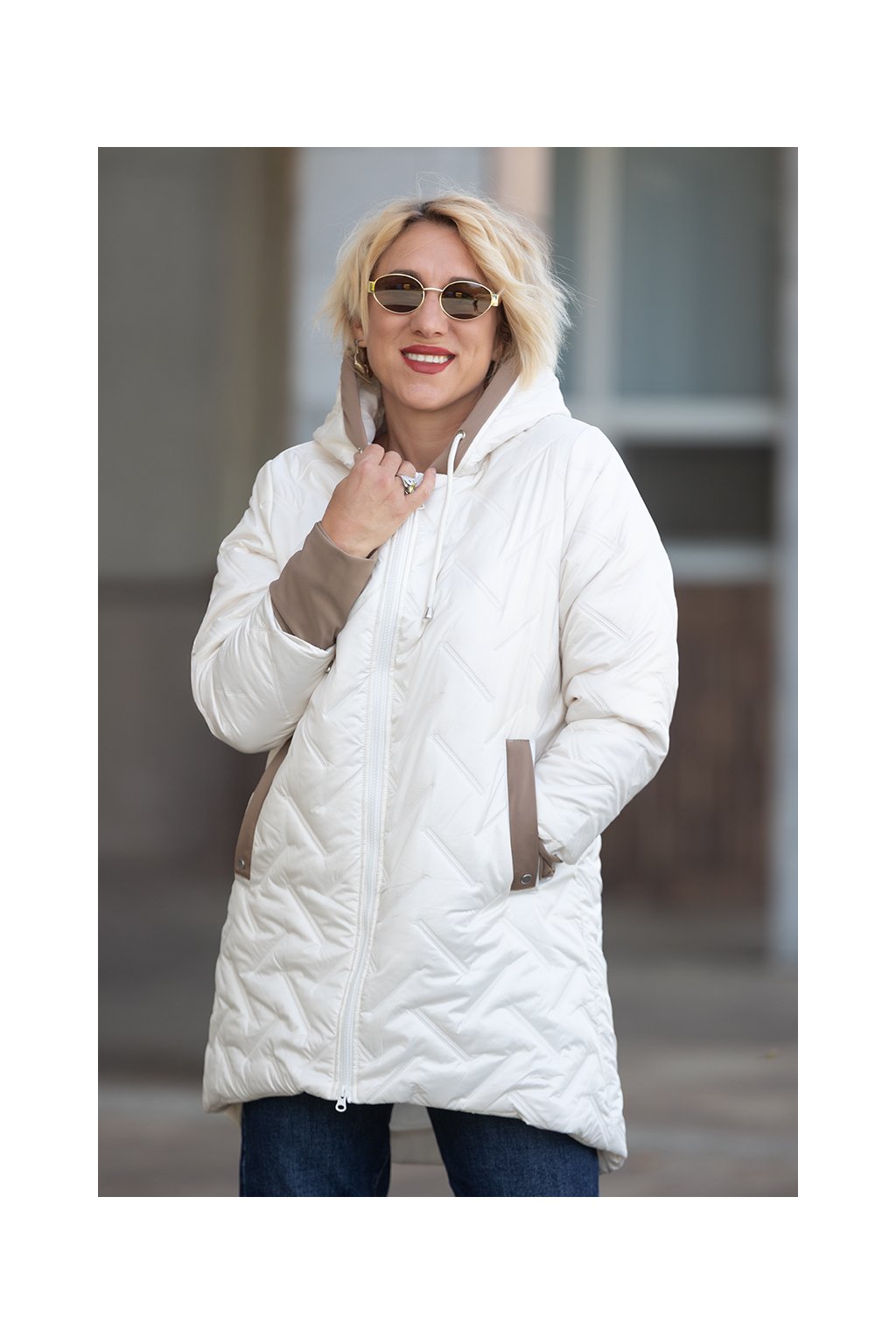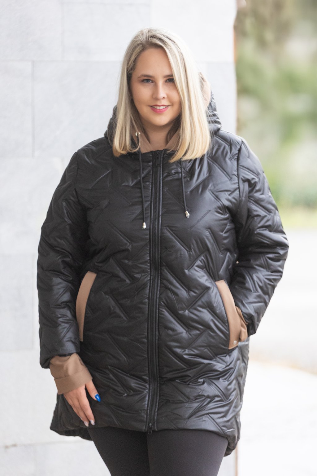 Dámská prošívaná bunda NANCY má délku do půli stehen a vypadá velice stylově. Bunda tě krásně zahřeje v chladnějším počasí a je doladěná manžetami z hebkého a velice příjemného materiálu. Zalíbí se ti určitě i kapuce, která je také lemována látkou a stejně tak kapsy. Kapsy se u bundy nachází po bocích. Krásný efekt vytváří i delší zadní díl. Tento podzimní kousek máme dostupný od velikosti 46 až do velikosti 56 a to ve více barvách.