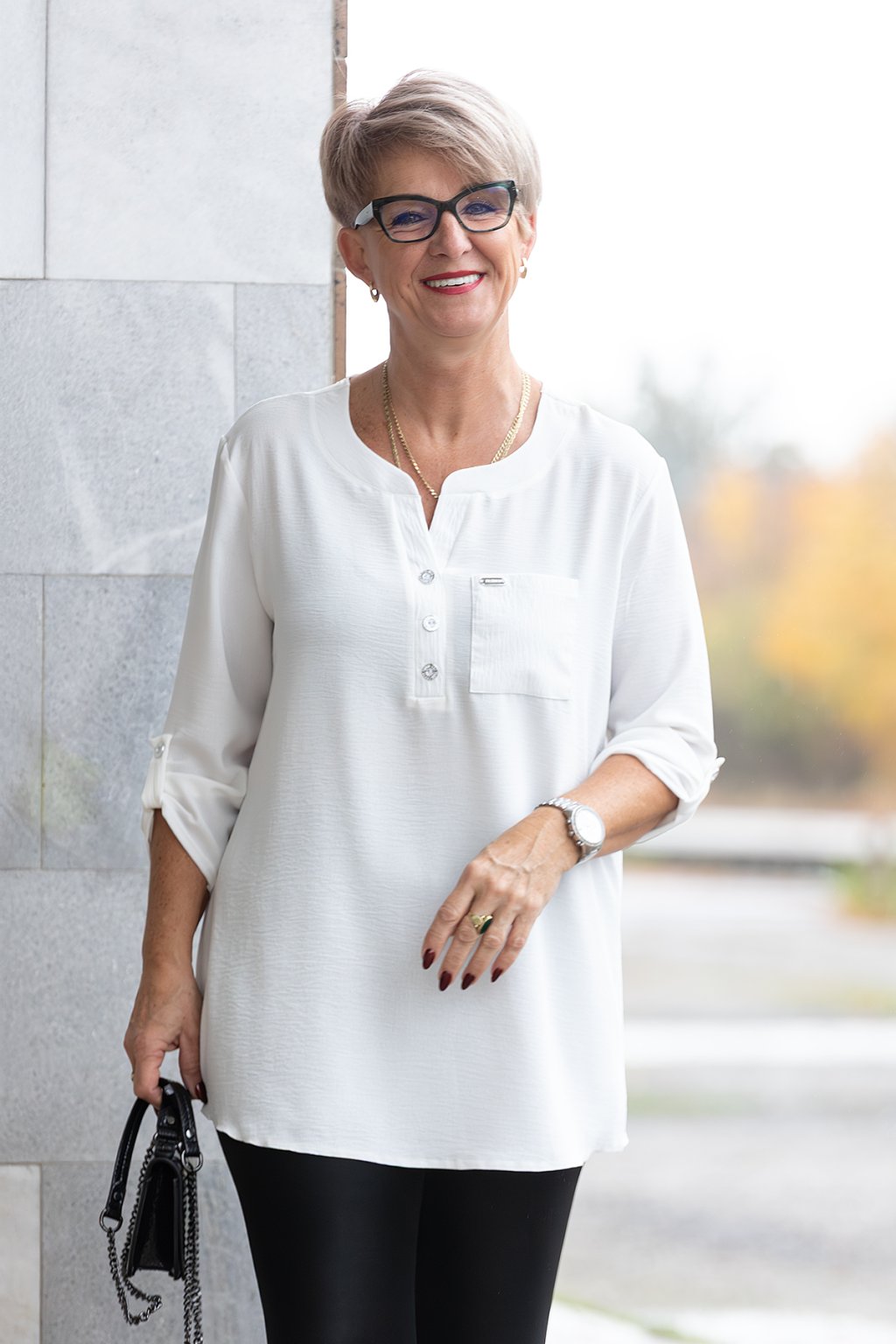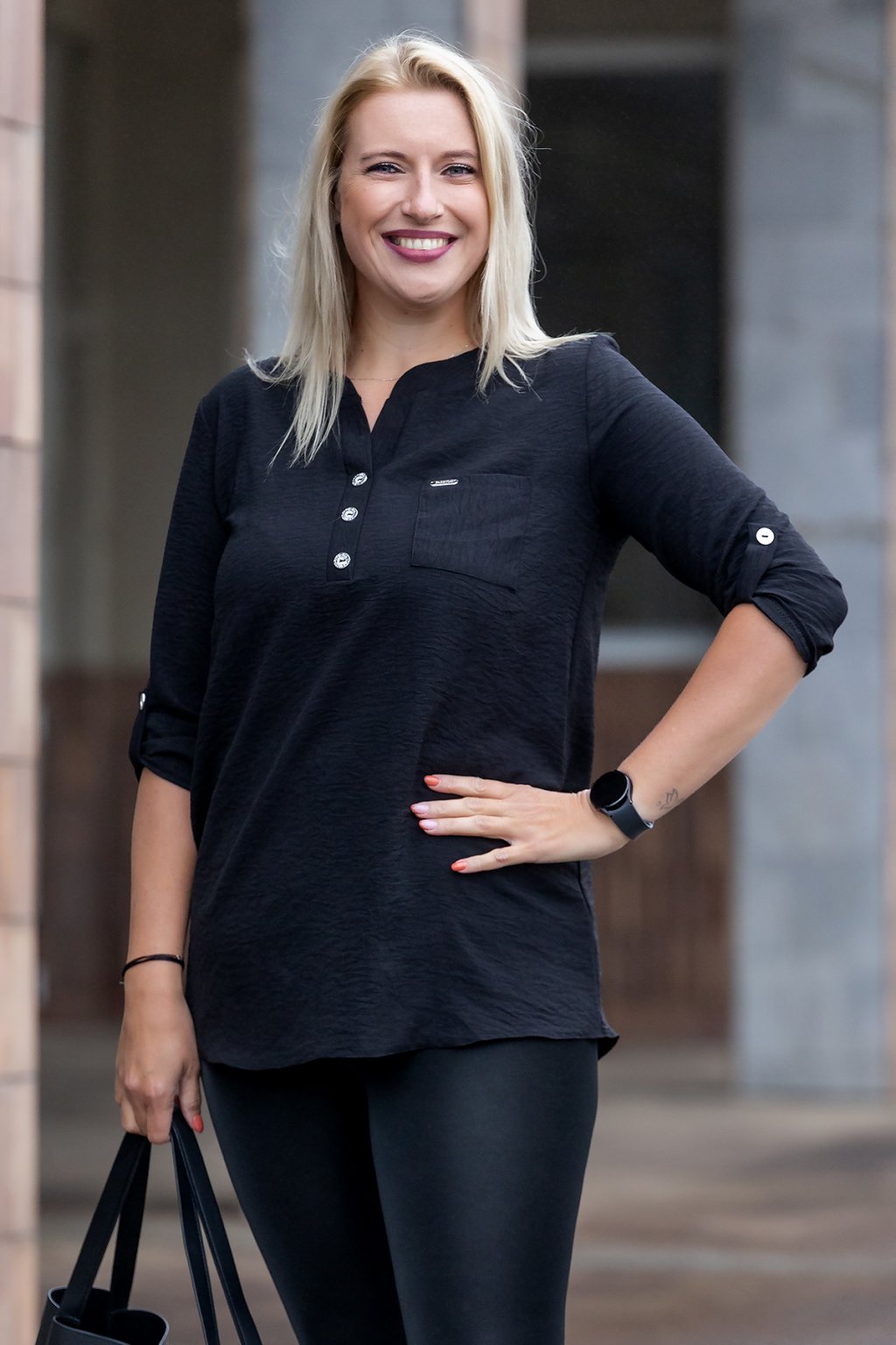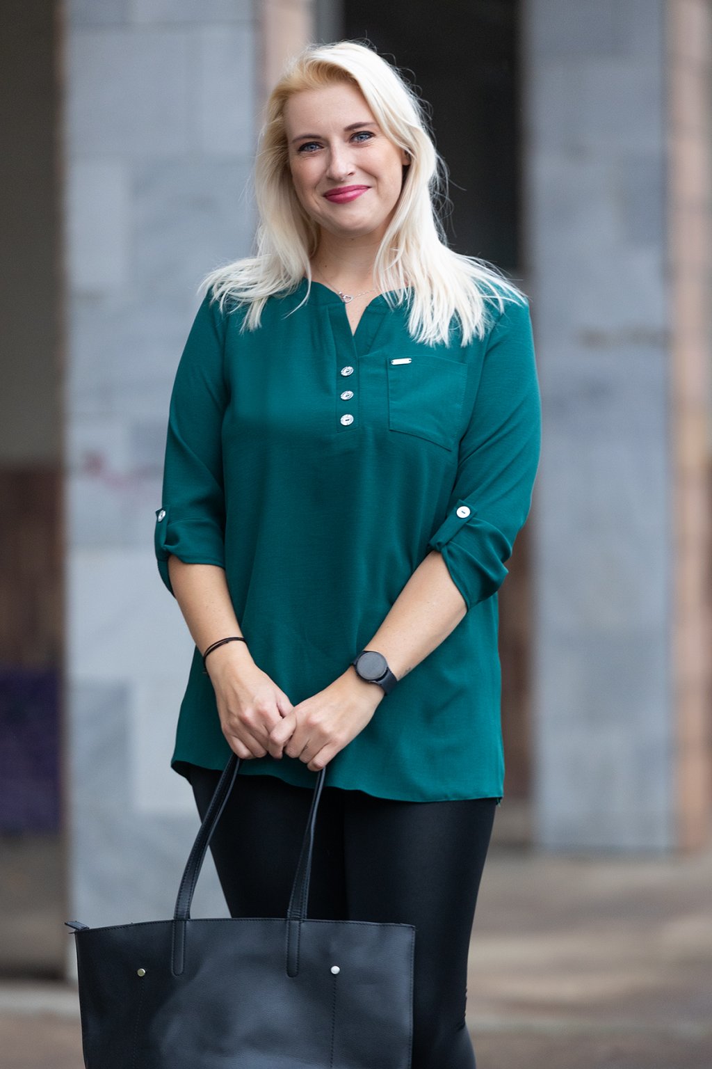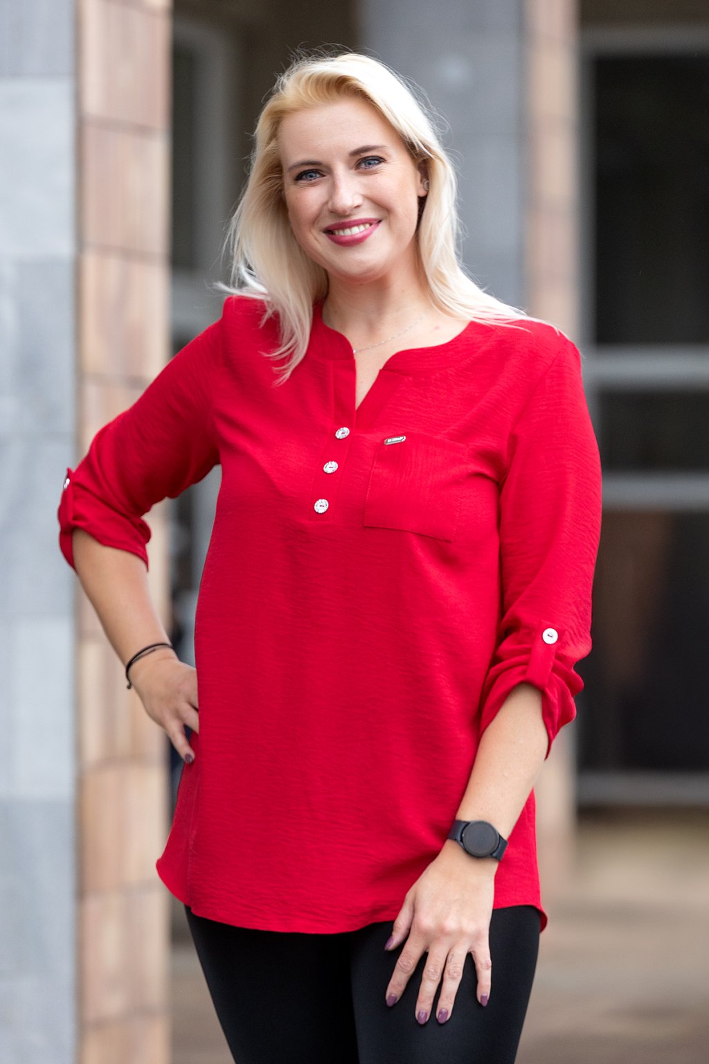 Dámská košile JANA s delším střihem se stane tvým nejlepším parťákem na každý den. Košile má volný a rovný střih, dlouhé rukávy, které se dají nosit i jako 3/4. Sepnout se dají aplikací s knoflíkem a vytvoří tak krásný efekt. Košile je z lehkého materiálu, velice příjemná na těle. Na přední straně je košile zdobená i knoflíčky a na hrudníku stylovou kapsičkou, která dodává košili ležérní dojem. Dostupná je ve velikostech L-4XL a vybírat můžeš i z barev, tak mrkni, jaká tě více zaujme.