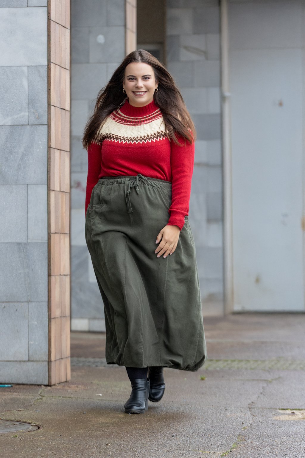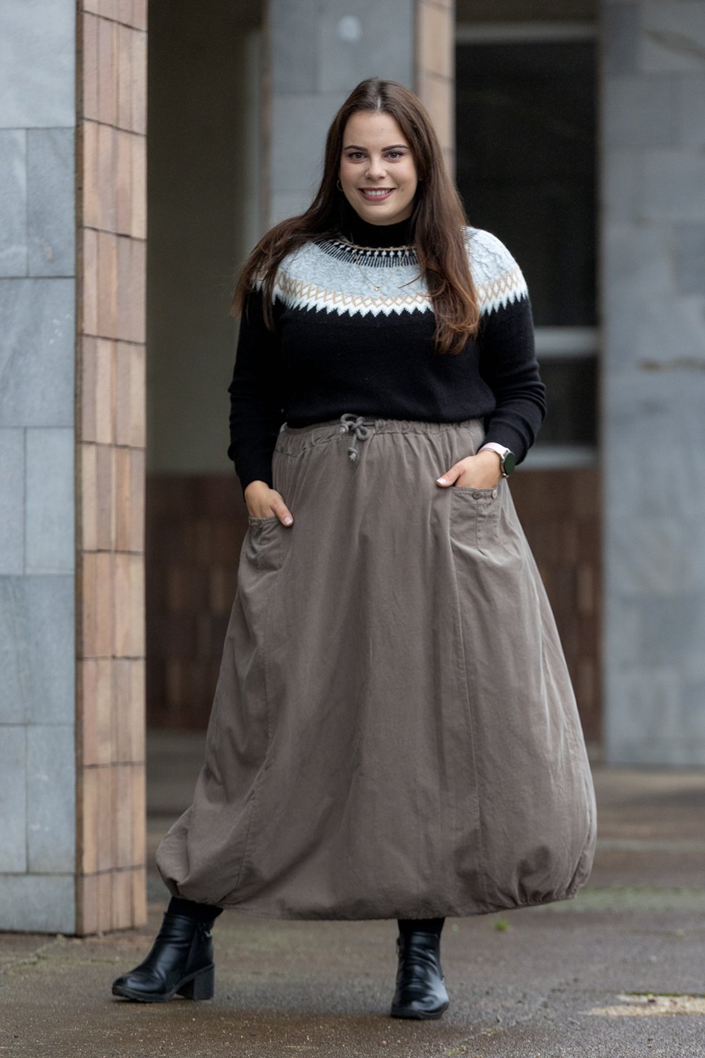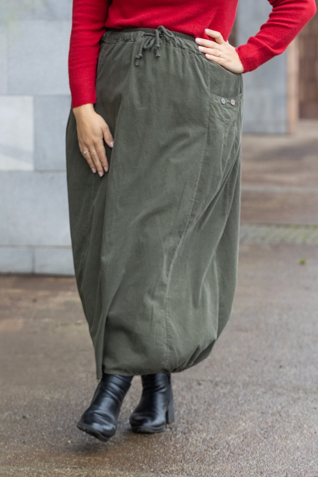 Dlouhá manšestrová sukně BĚTKA je jedinečnou volbou pro všechny milovnice módy. Nepřekvapí tě určitě pas do gumy ani ideální délka ke kotníkům. Zkrátka této velice šik sukni nemáme co vytknout.