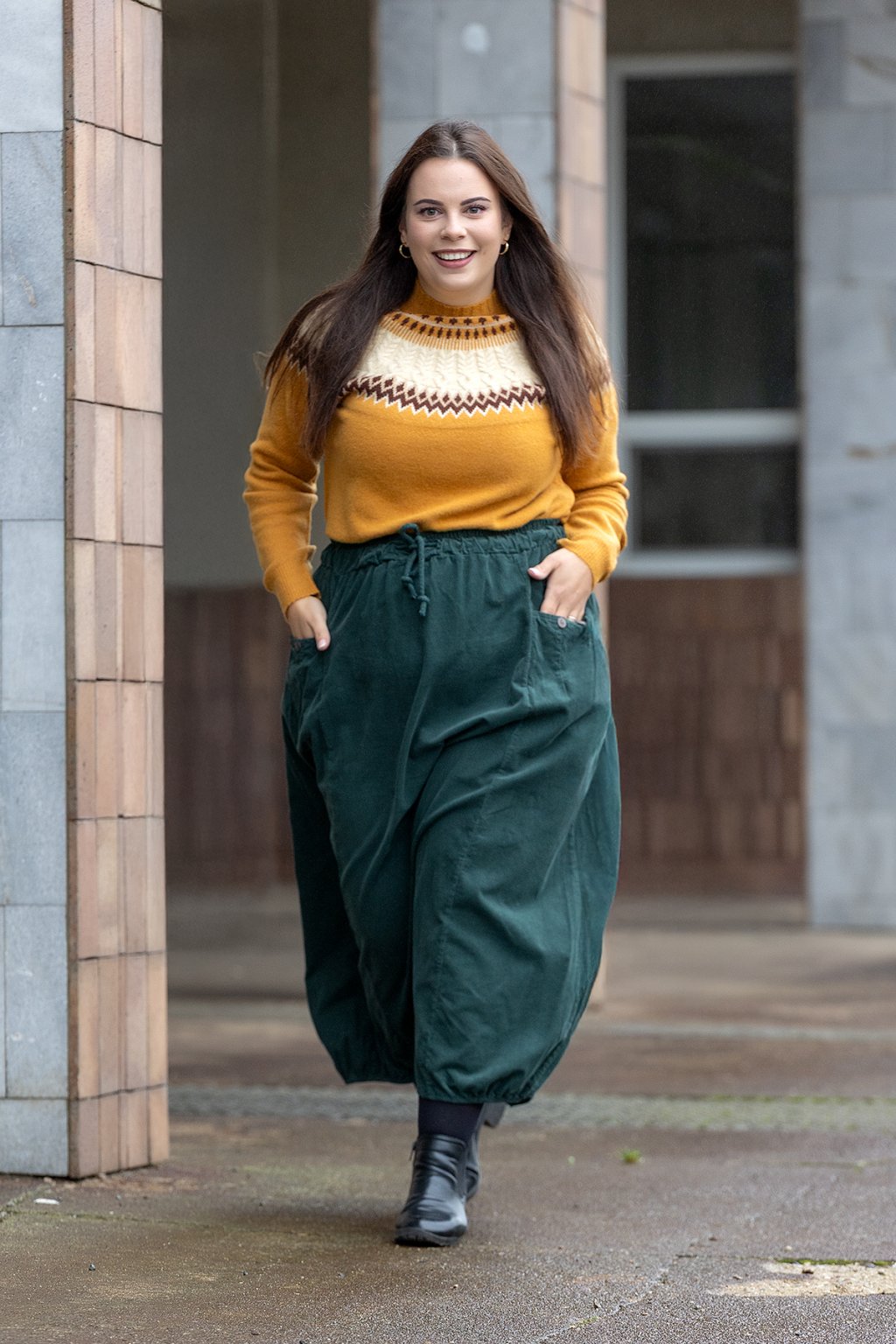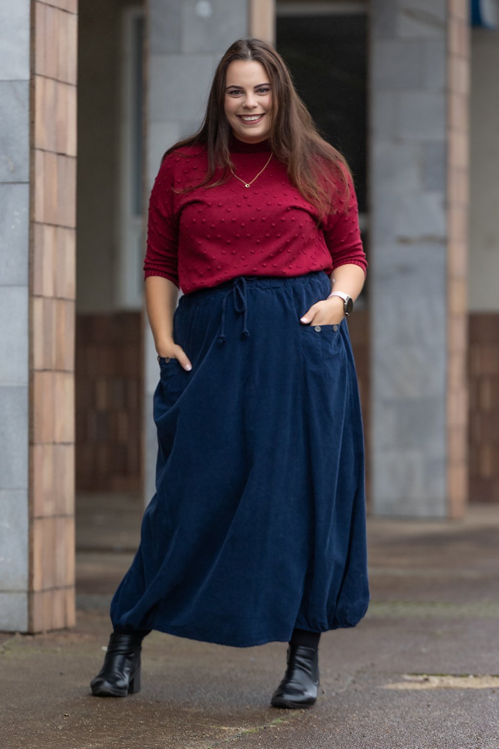 Naše překrásná manšestrová sukně BĚTKA je jedinečný kousek, který bude zářit a to nejenom ve tvém šatníku. Sukně má pas do gumy a stejně tak i spodní lem a právě to vytváří neodolatelný balónový efekt. Sukně má ideální délku ke kotníkům a je velice pohodlná - navíc si pas můžeš upravit dle potřeb i díky vázání na tkaničky. Po stranách si můžeš všimnout i stylových kapsiček, které jsou velmi praktické. Kapsy zdobí roztomilá aplikace knoflíčků. Nejlépe ti sukně bude sedět, pokud nosíš velikost XL-3XL a vybírat můžeš i z neodolatelných barviček.