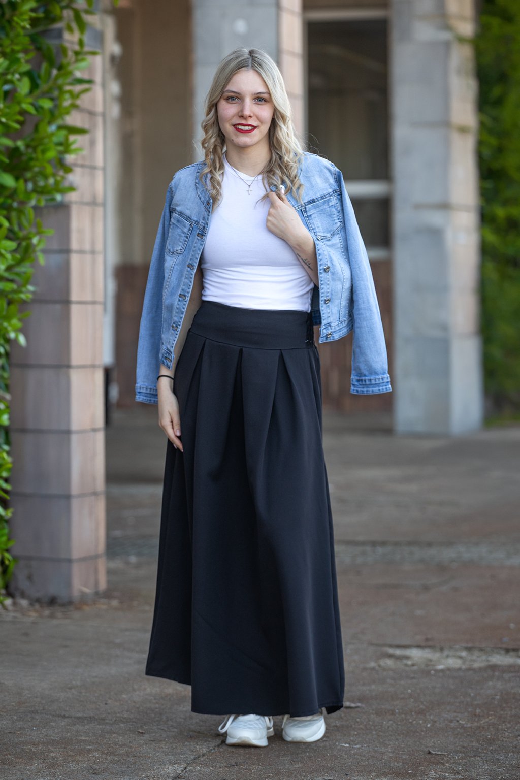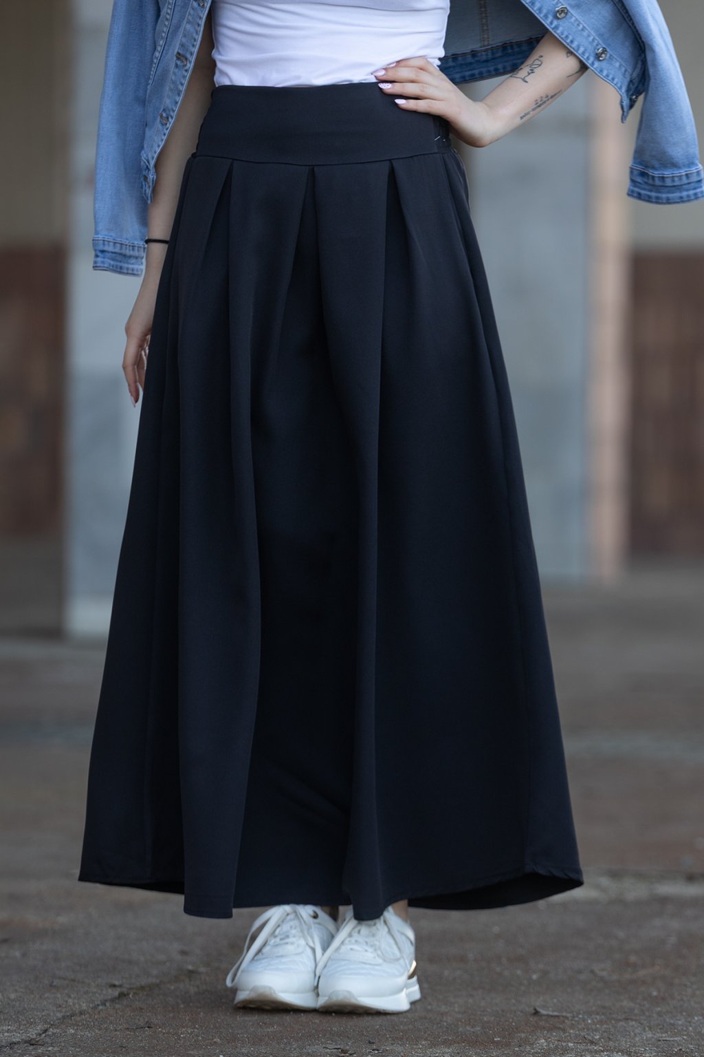 Dámská sukně JUSTINE tě nikdy nezklame. Je to dlouhá sukně se střihem do písmene A. V pase má na zadní straně žabičkování, díky kterému se ti krásně přizpůsobí a nikde tě nebude tlačit. Tento pohodlný kousek má navíc kapsy po stranách a na přední straně jej zdobí elegantní sklady. Sukně se dá perfektně kombinovat. Tento kousek u nás najdeš hned v několika barvách a nejlépe ti bude sedět pokud nosíš velikost S-L.