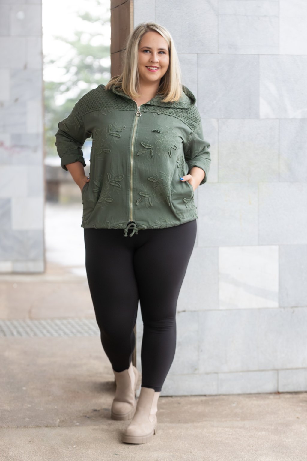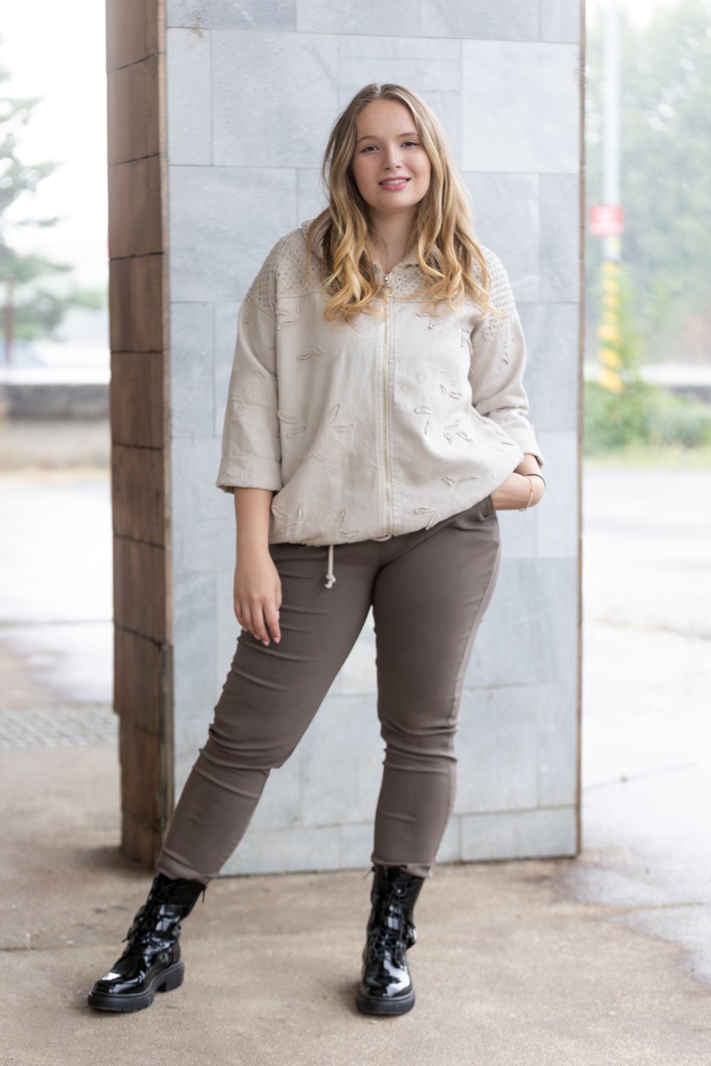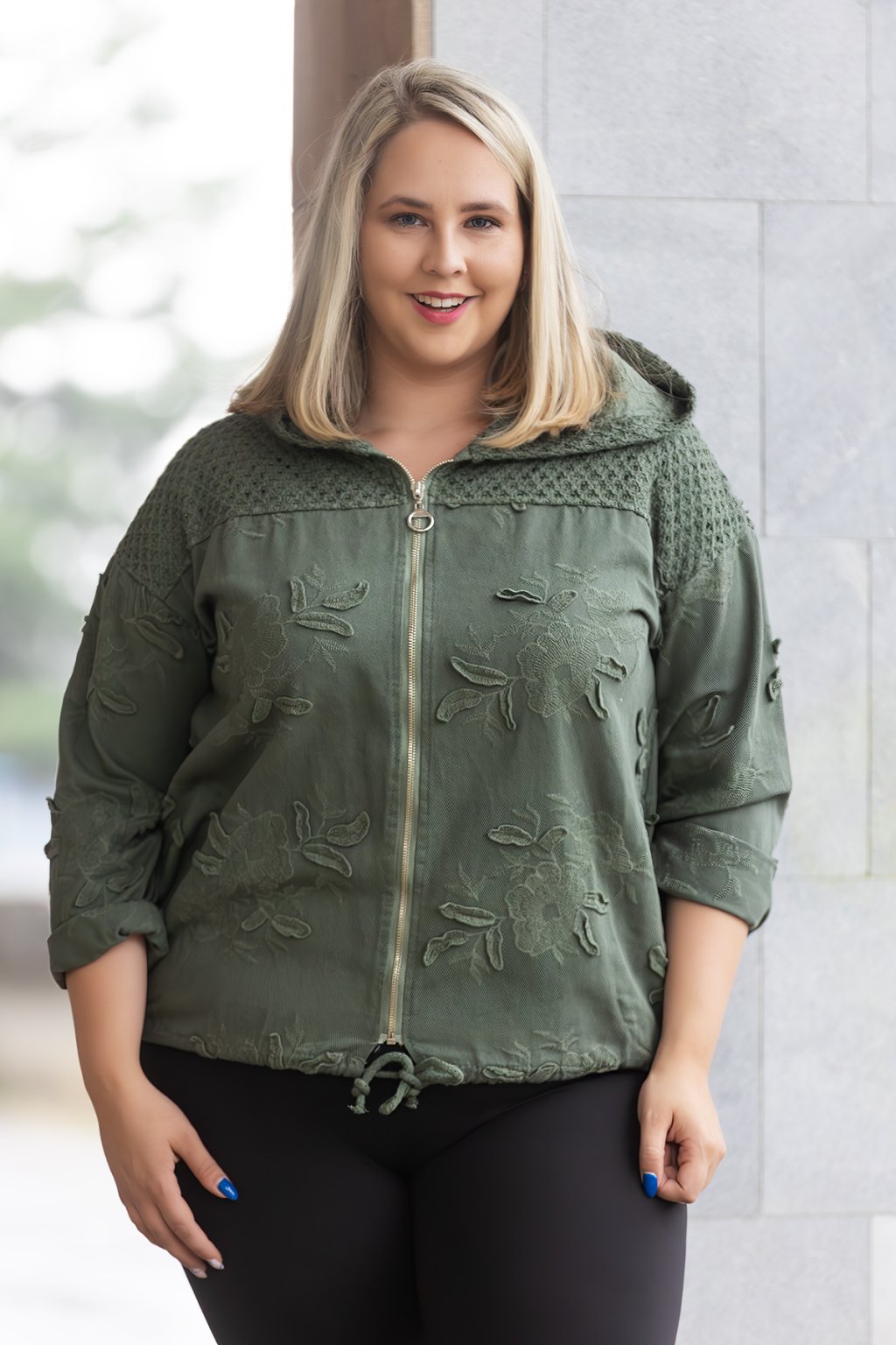 Dámská džínová banda RONJA je velice unikátní kousek, který tě zaujme svým nevšedním vzhledem. Džínová bundička je po celé své délce zdobená vyšitými květinami a lístky. Doplněná je i kapucí, na které je našitá síťka. Bunda má zapínání na zip a dlouhé rukávy, které se dají nosit i ohrnuté. Spodní lem se dá krásně nastavit pomocí tkaniček a tím se dá přizpůsobit každé postavě. Navíc má po bocích kapsy. Nejlépe sedí na velikost XL-3XL a dostupná je v mnoha krásných barvách.