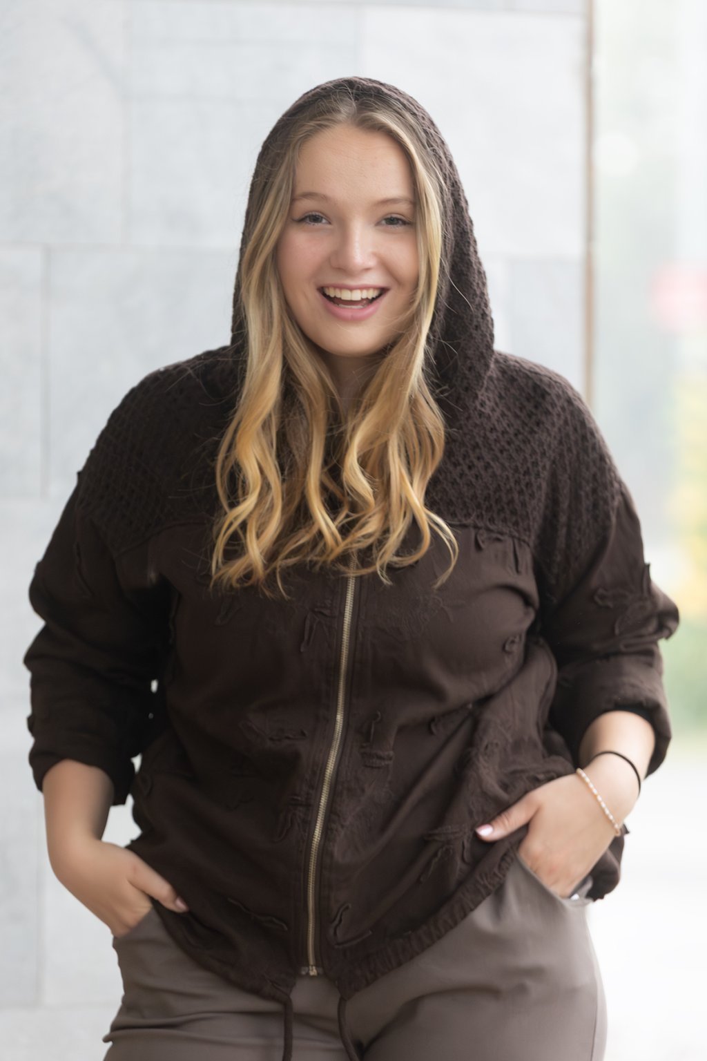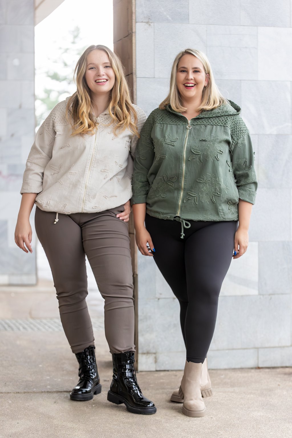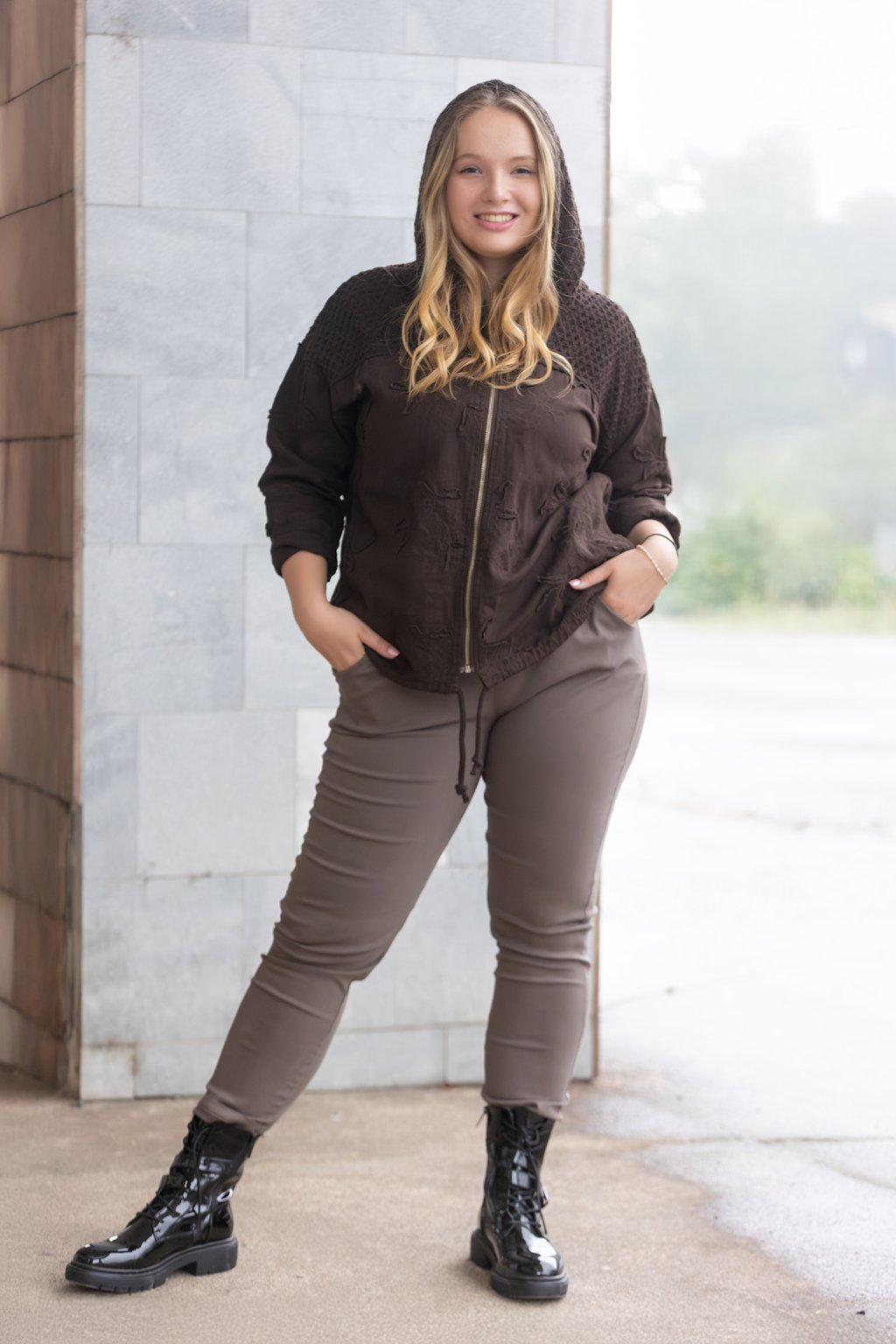 Dámská džínová banda RONJA je velice unikátní kousek, který tě zaujme svým nevšedním vzhledem. Džínová bundička je po celé své délce zdobená vyšitými květinami a lístky. Doplněná je i kapucí, na které je našitá síťka. Bunda má zapínání na zip a dlouhé rukávy, které se dají nosit i ohrnuté. Spodní lem se dá krásně nastavit pomocí tkaniček a tím se dá přizpůsobit každé postavě. Navíc má po bocích kapsy. Nejlépe sedí na velikost XL-3XL a dostupná je v mnoha krásných barvách.