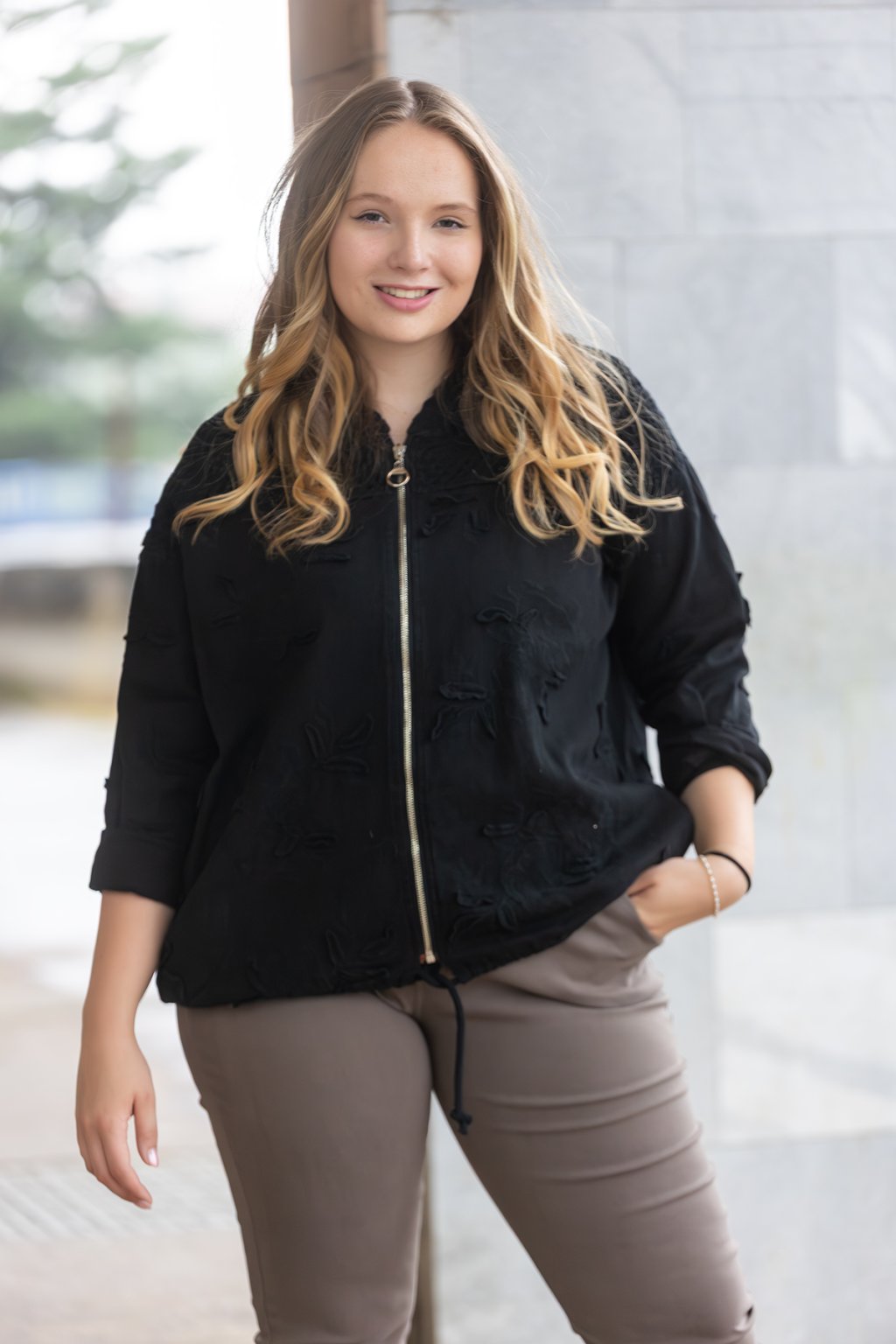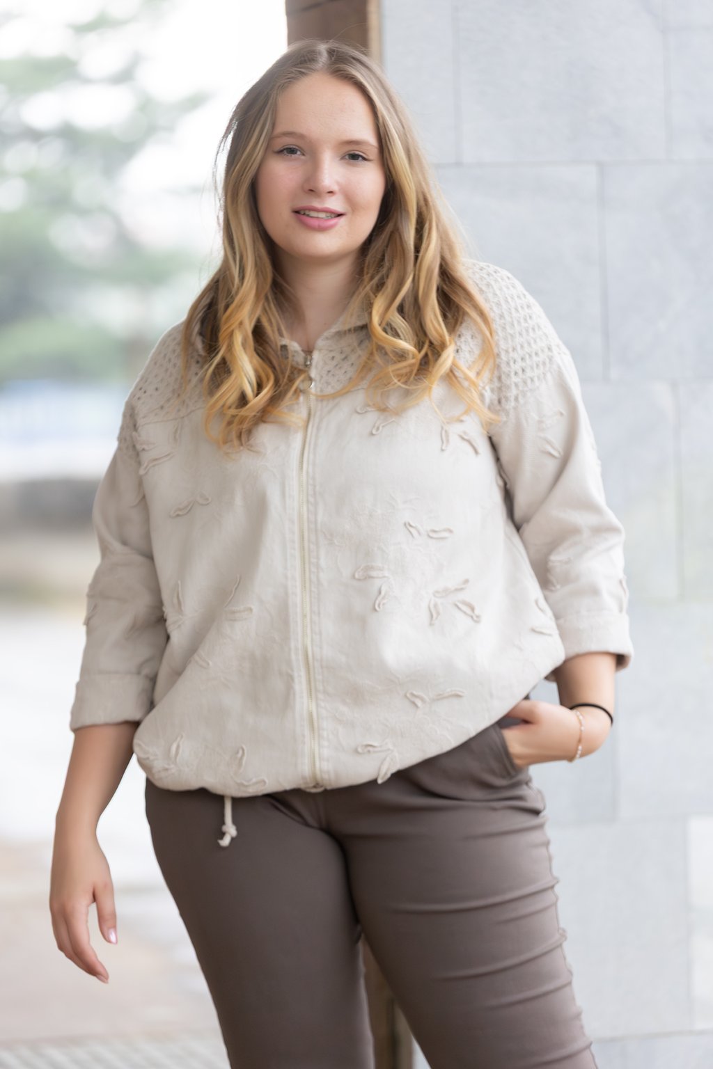 Dámská džínová bunda RONJA je z lehké džínoviny a vyšívaná po celé své délce překrásným motivem květů a lístků.