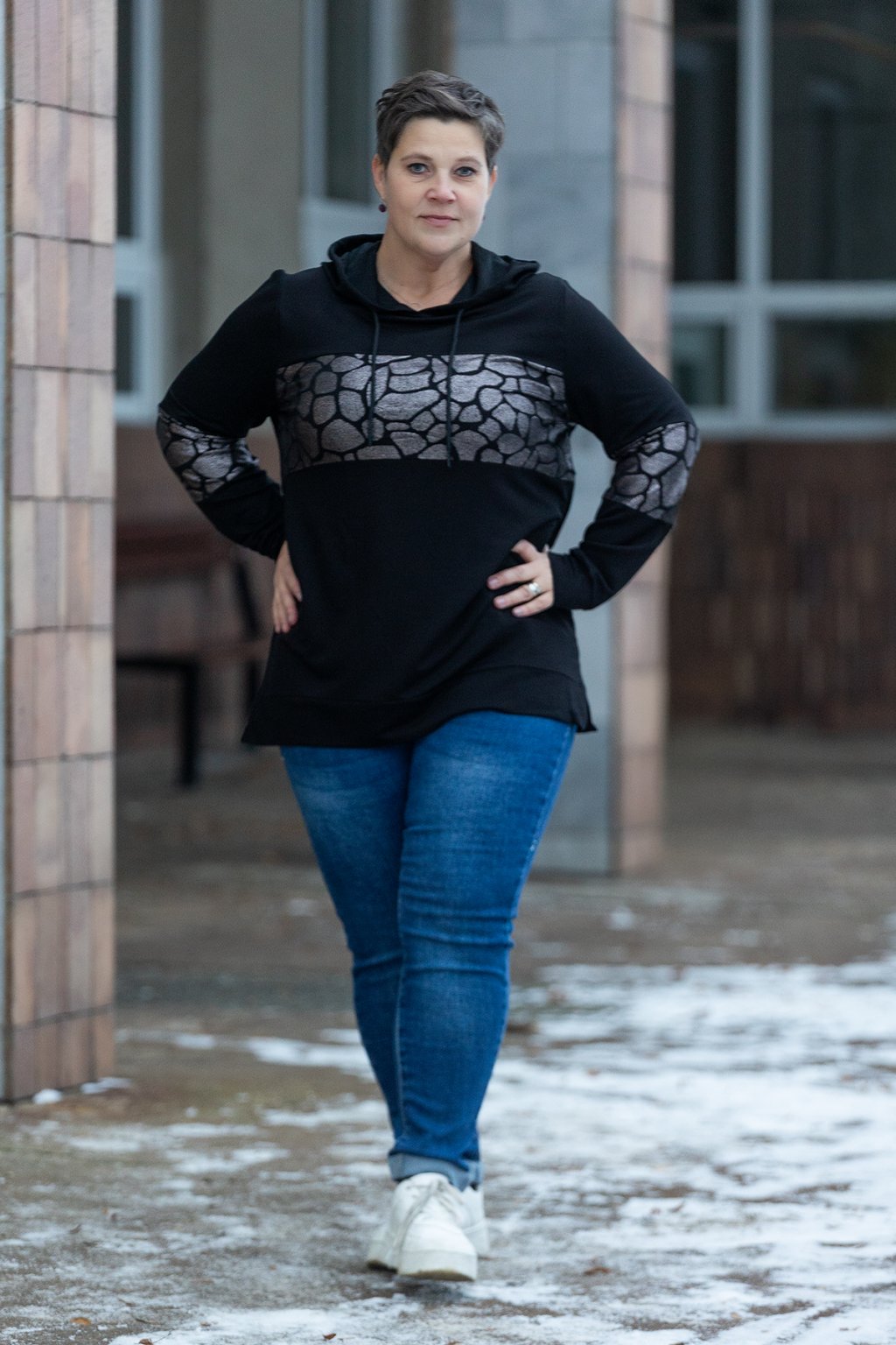 Dámská elegantní mikina TRUFLE je kousek, se kterým zazáříš každý jediný den. Obzvláštněná je lesklým a třpytivým vzorem, který má dekor želvího krunýře a dělá z mikiny naprosto jedinečný kousek. Mikina má i kapuci, která tě potěší hlavně v případě nepříznivého počasí. Doplněná je i tkaničkami, díky kterým se krásně přizpůsobí. Tato elegantní mikina má volný střih a je z velice příjemného materiálu, který navíc mírně pruží. V naší nabídce ji najdeš od velikosti S - 2XL.