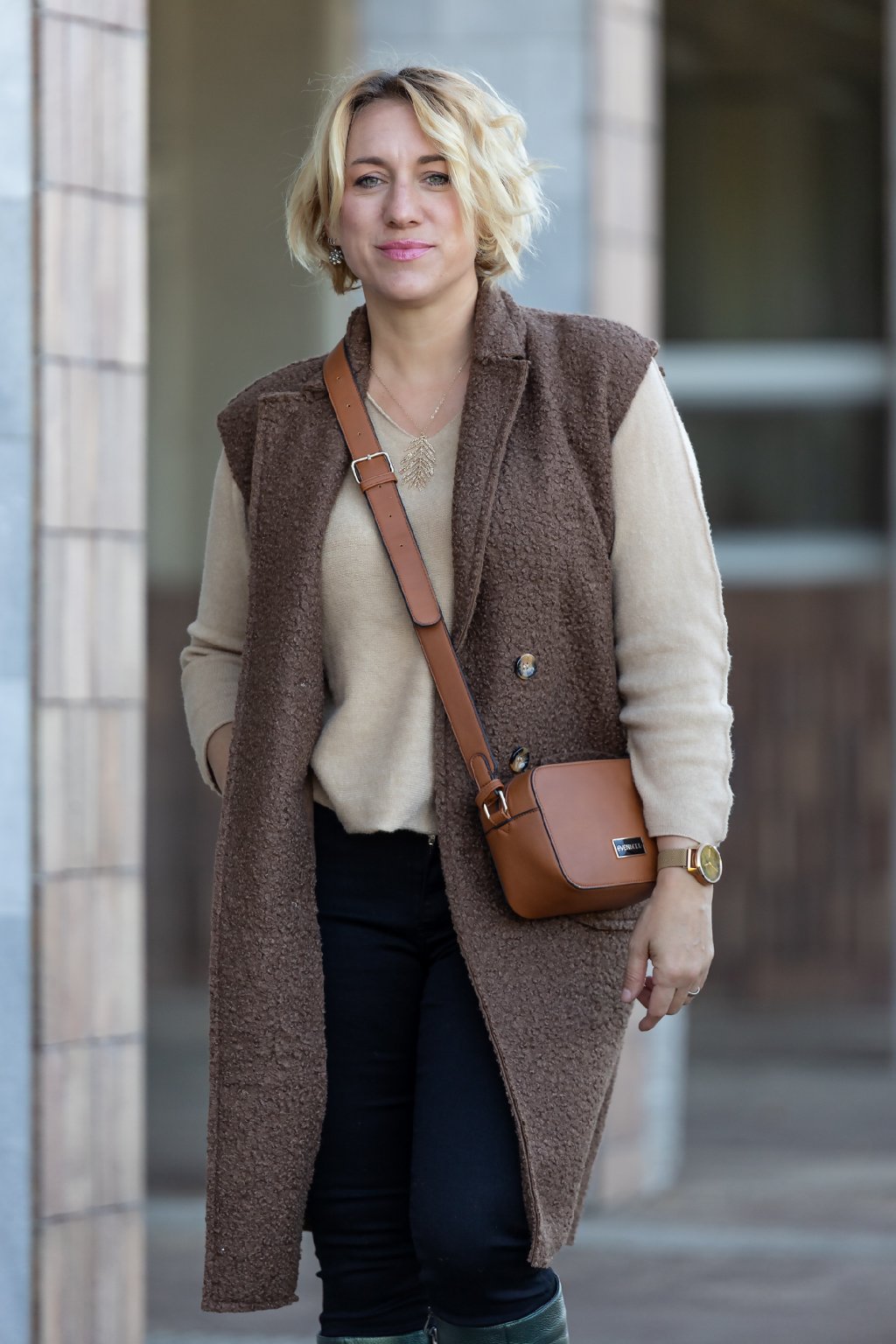 Dnes mi dorazila vesta v oříškové barvě. Běžně mám velikost 40/42 a sedí perfektně. Jsem spokojená s velikostí, barvou i materiálem.