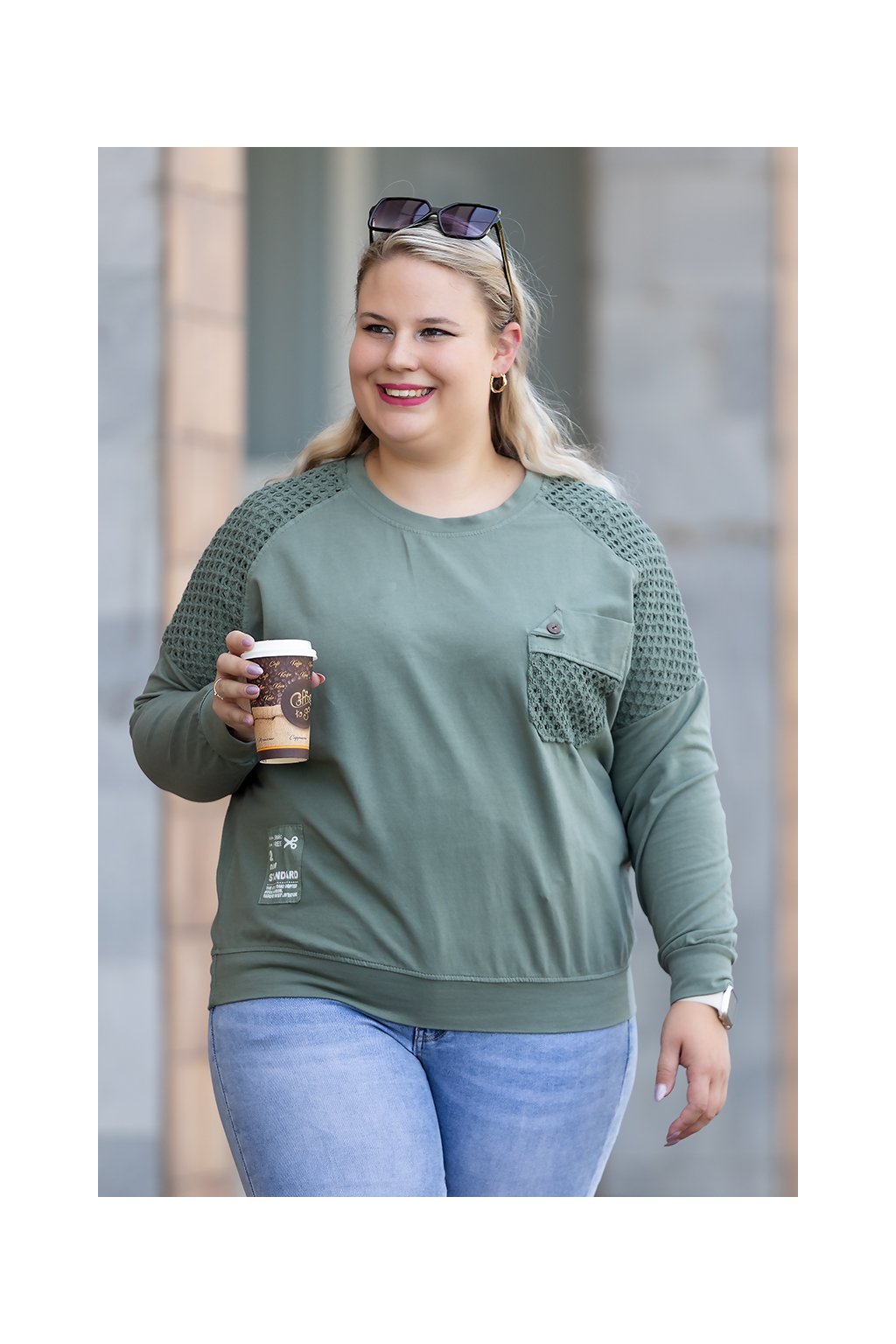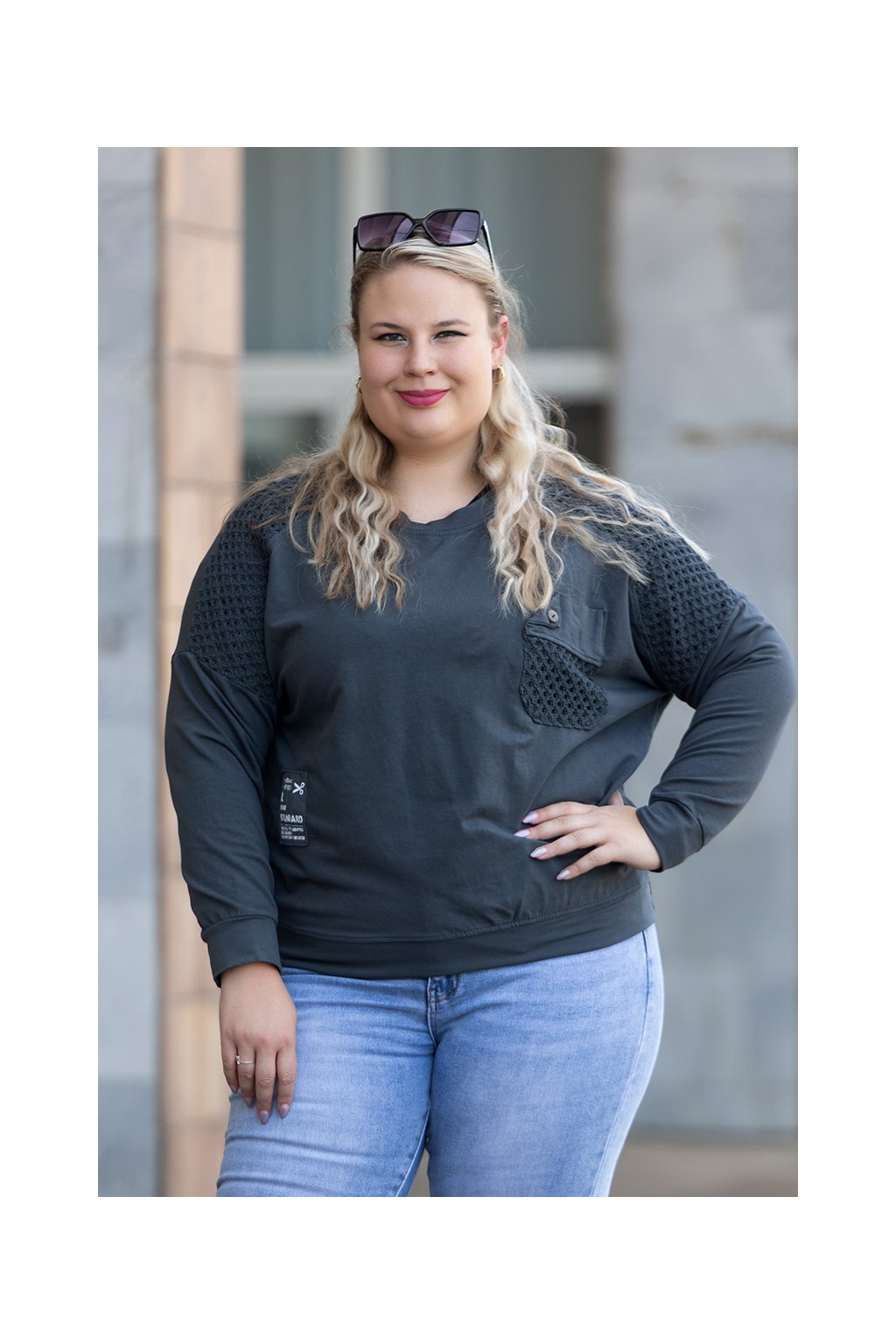 Dámská mikina NETTA je neuvěřitelně pohodlný a šmrncovní kousek. Mikča má lehce volnější střih, kulatý lodičkový výstřih a skvělý bavlněný materiál, který ti zajistí pocit pohodlí na každém kroku. Na ramenou a malé kapsičce s knoflíčkem tě jistě zaujmou krásné, originální háčkované vsadky. Tento kousek dále také zdobí zajímavá nášivka na přední straně. Mikina je střižená do boků a její rukávy a spodní část lemují manžety. Nejlépe ti sedne, pokud máš velikost XL-4XL a můžeš si u nás vybrat ze spousty krásných barev tu svou nejoblíbenější.