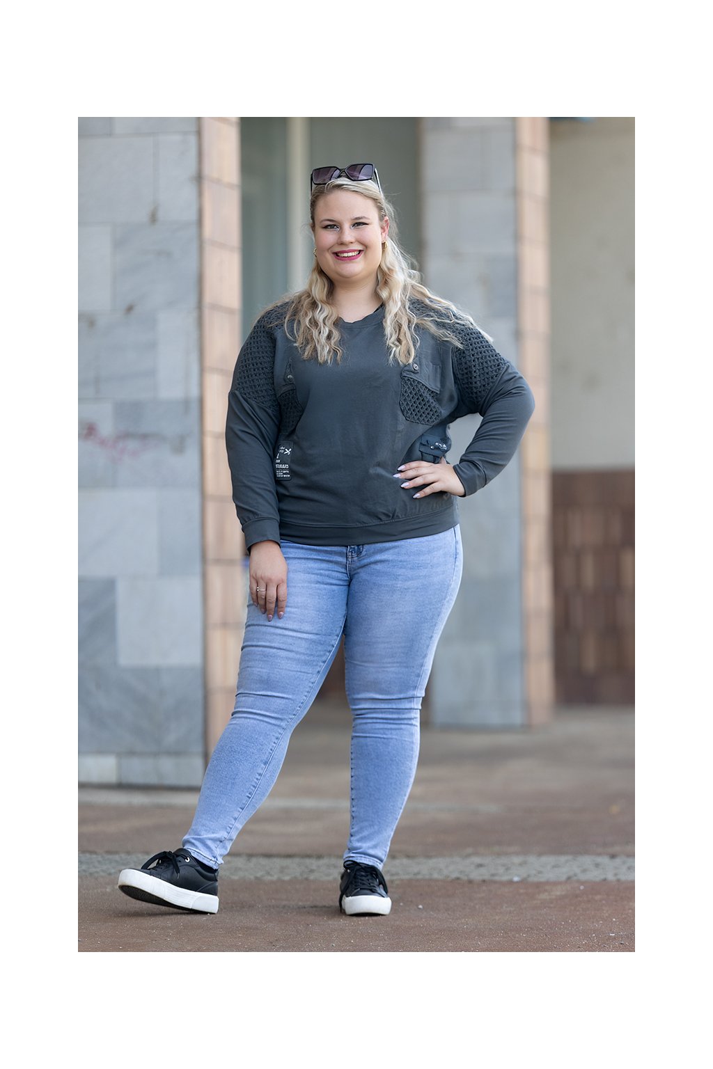 Tento model pro tebe nafotila naše Kristýnka, běžně nosí velikost XL/2XL a její míry najdeš zde.