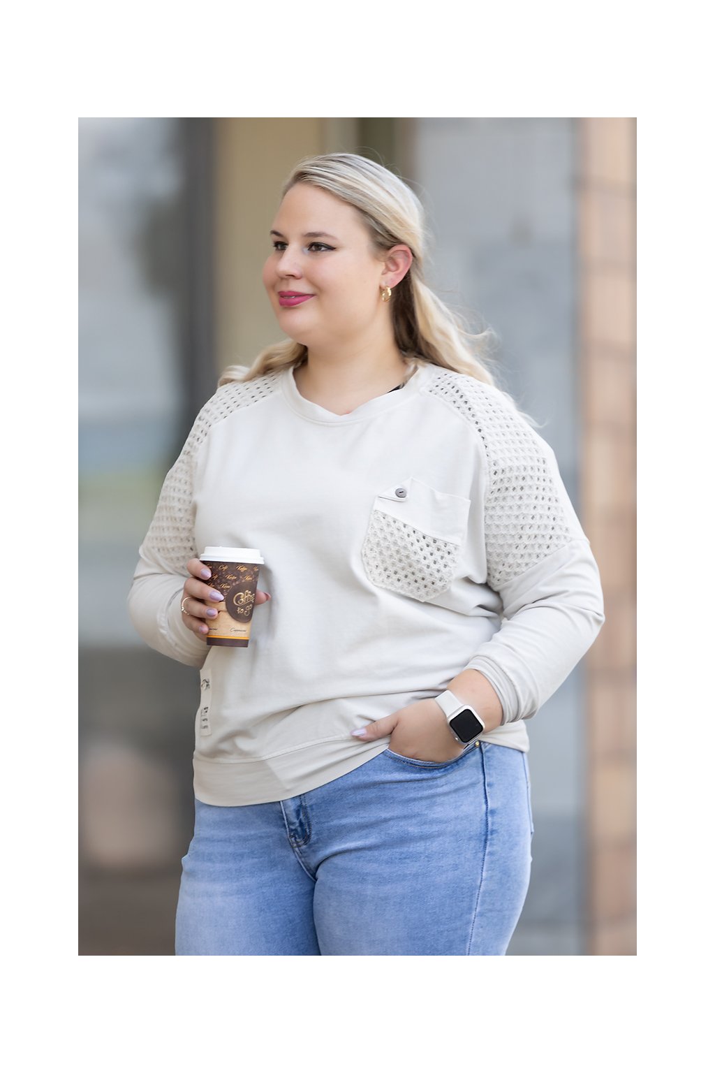 Dámská mikina NETTA dodá tvému šatníku originalitu a šmrnc díky svým ozdobným háčkovaným detailům.