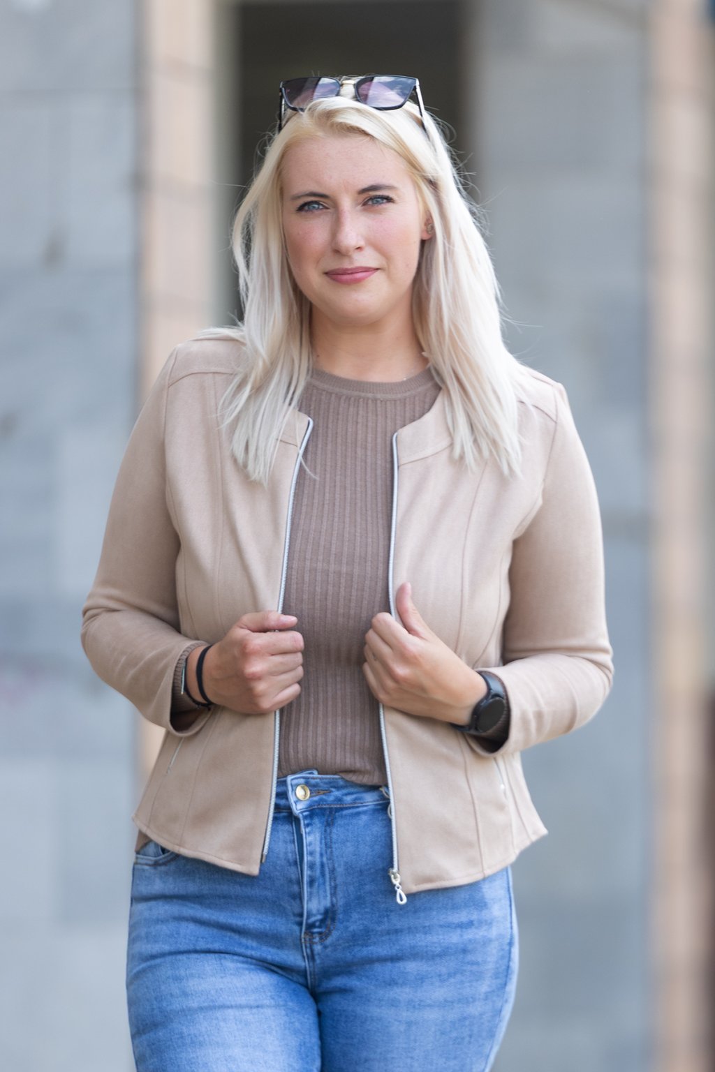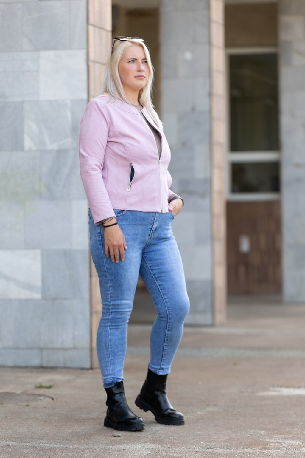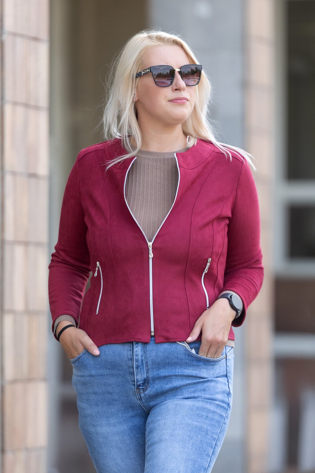 Dámská bunda RIVER je stylový svršek, se kterým na podzim zazáříš. Bunda má kulatý výstřih a zapínání na zip. Po obou bocích má kapsy, které jsou velice praktické a také se zapínají na zip. U krku je bunda lemována pruhem látky a vytváří tak krásný efekt. Vypadá fantasticky zapnutá a i rozepnutá. Dostupná je v několika barvičkách a máme ji v nabídce od velikosti 42 do velikosti 50.