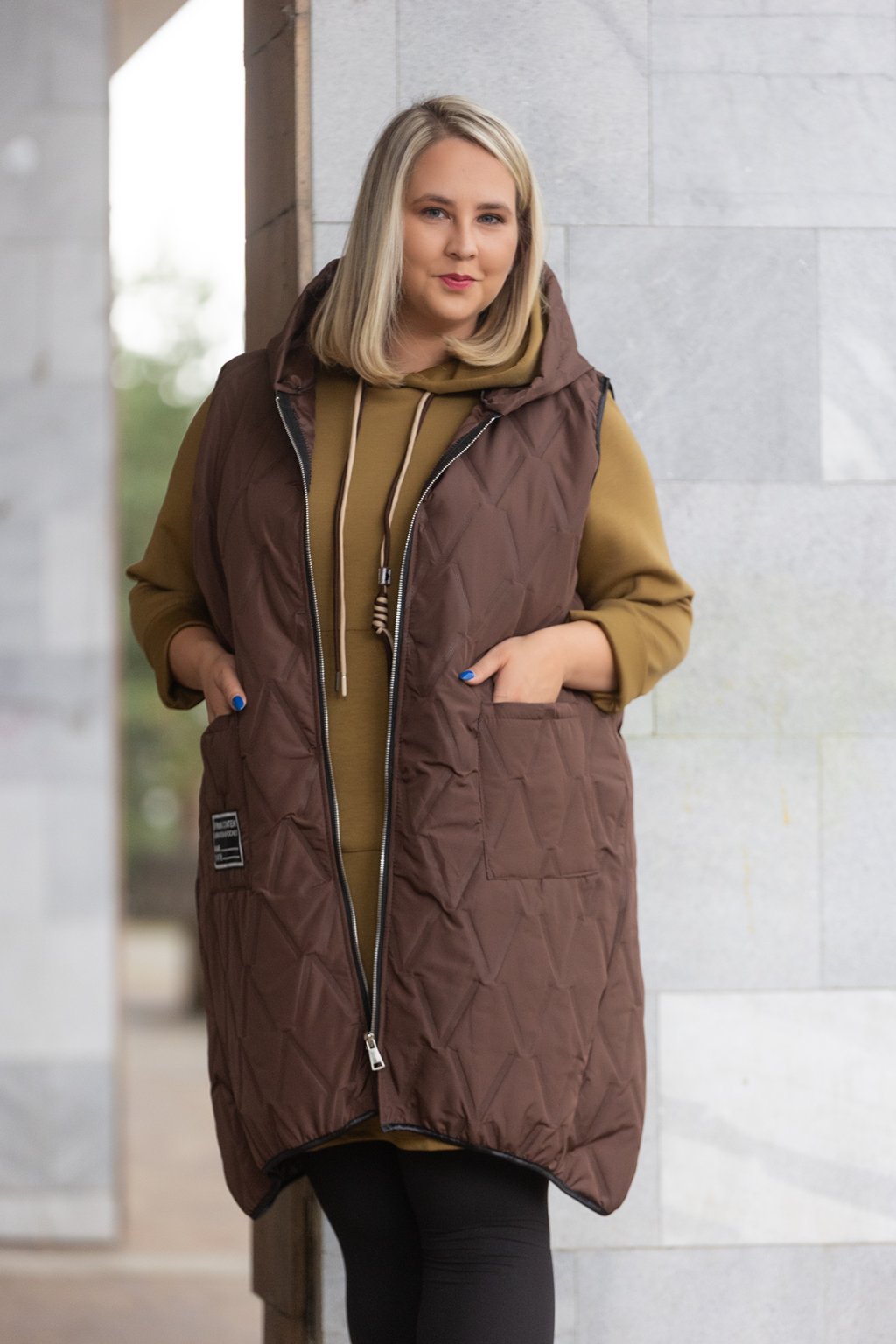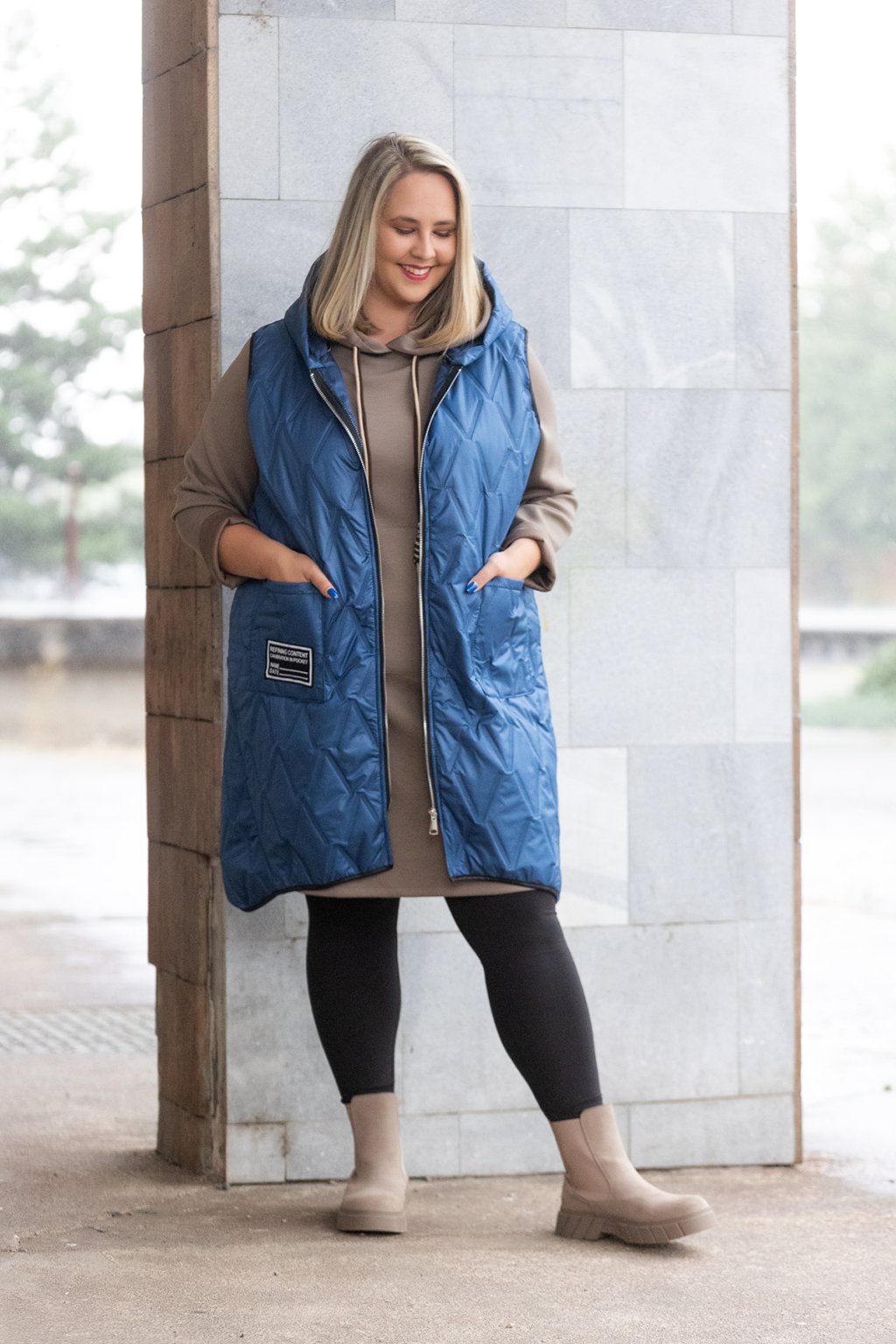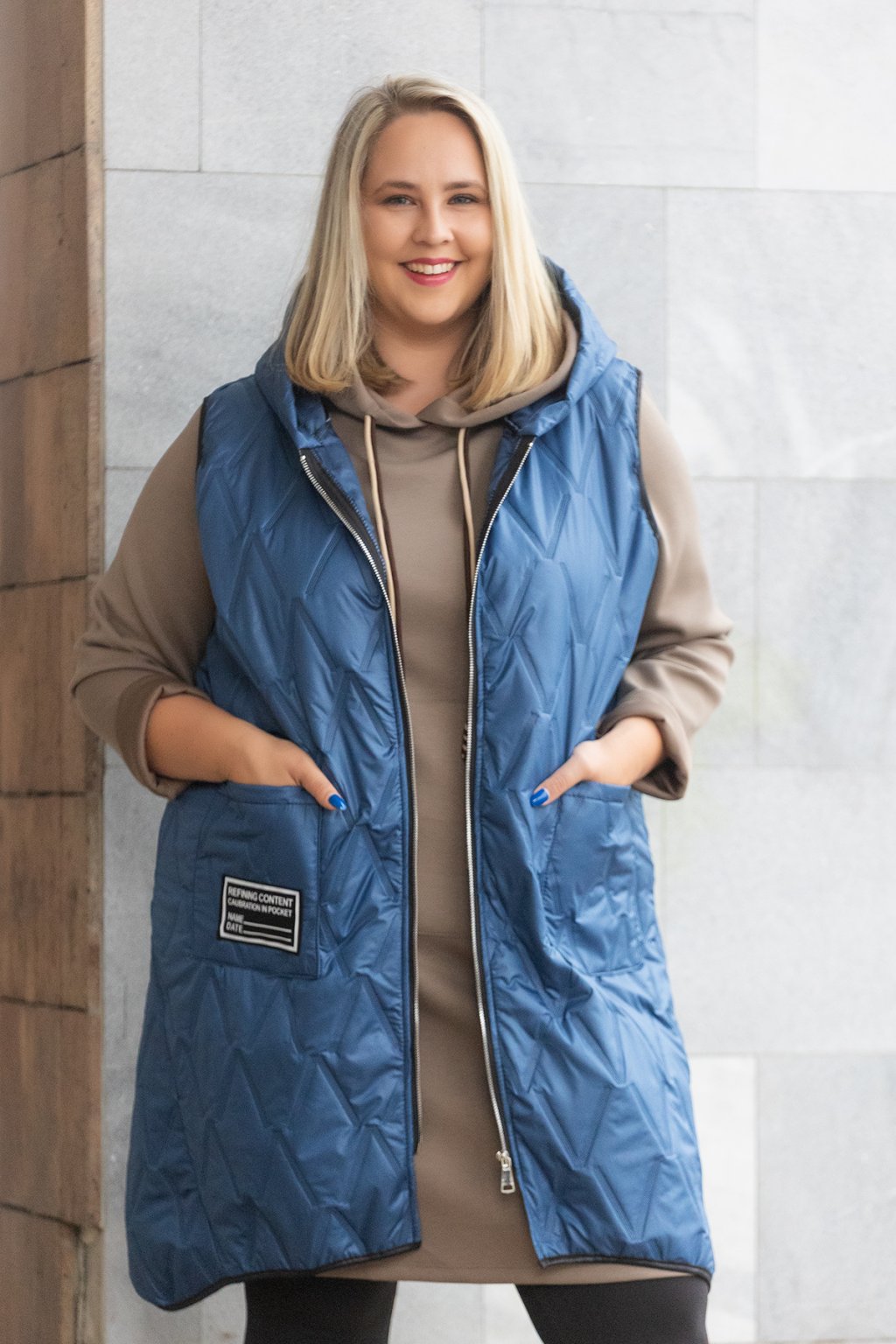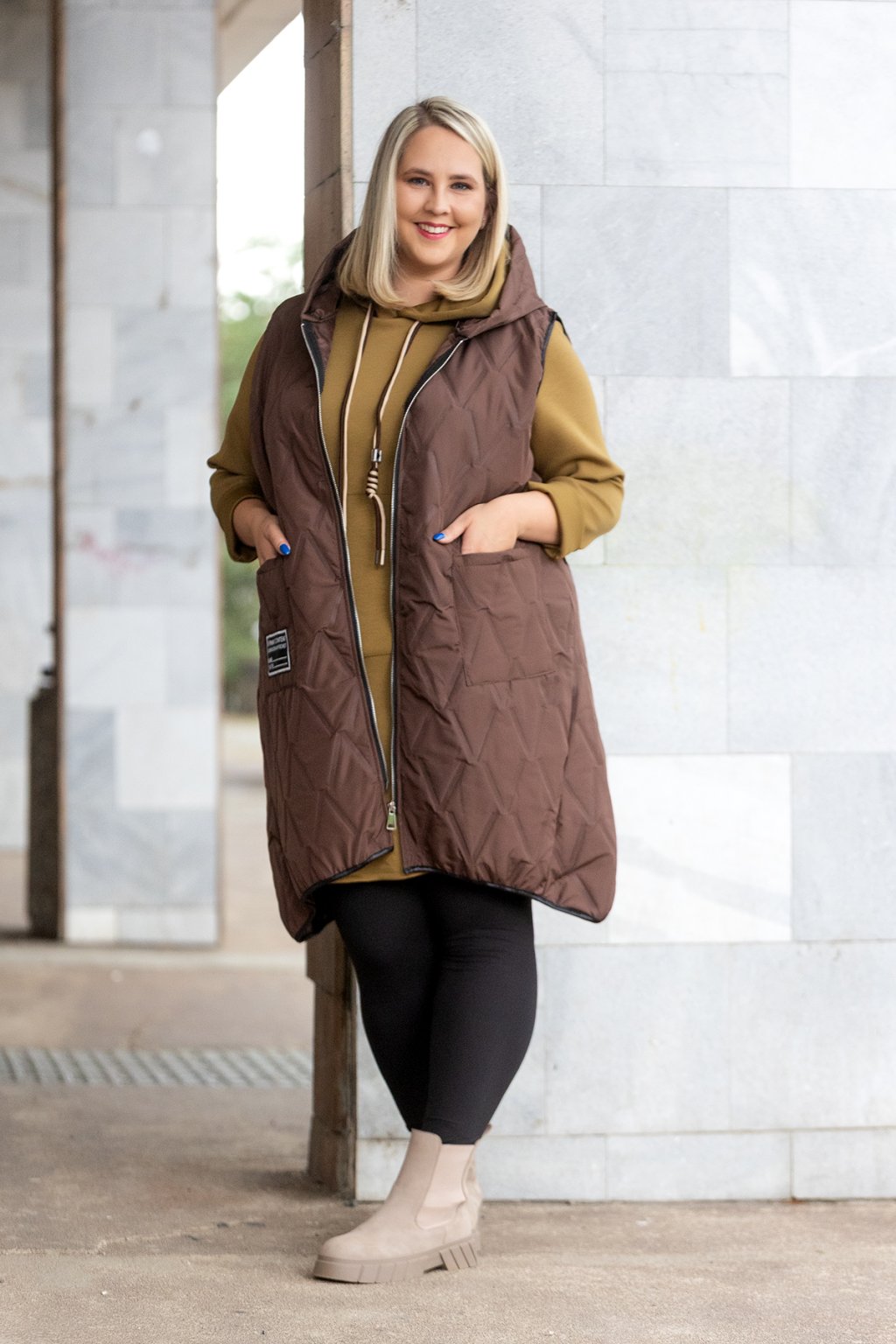 Dámská vesta TOFFI je skvělý kousek, který budeš chtít nosit každý den. Vestička je krásně příjemná na dotek a zdobená prošíváním po celé své délce. Vesta je delšího střihu, dolní lem je střižen do kulata a samozřejmostí je i kapuce, takže Tě žádný nešvar počasí nepřekvapí. Vepředu najdeš super praktické kapsičky, zdobené našitým ozdobným štítkem. Tento kousek sedne na velikost 2XL-4XL a můžeš vybírat ze spousty krásných barev tu pravou, která prozáří Tvůj den.