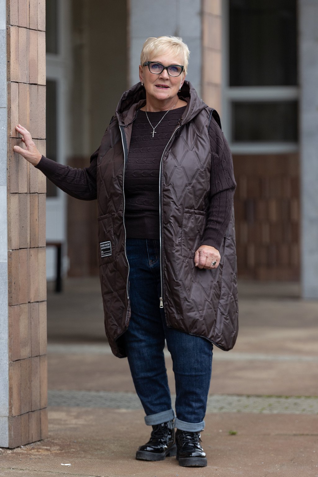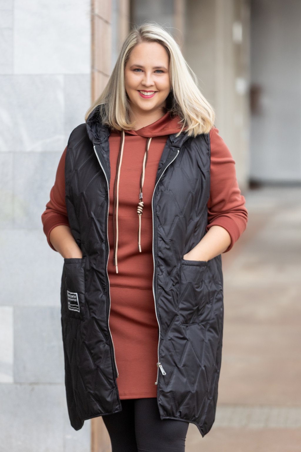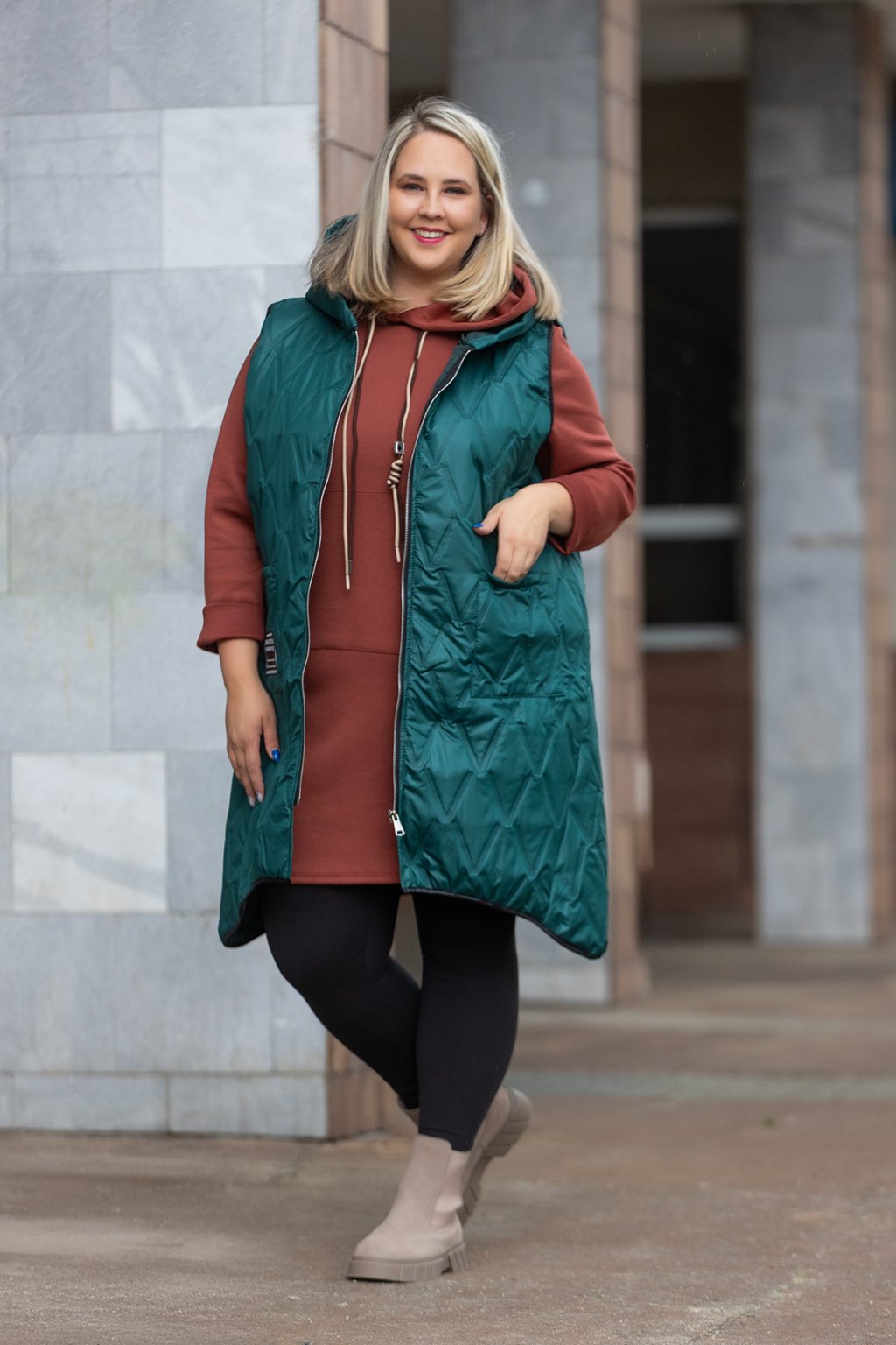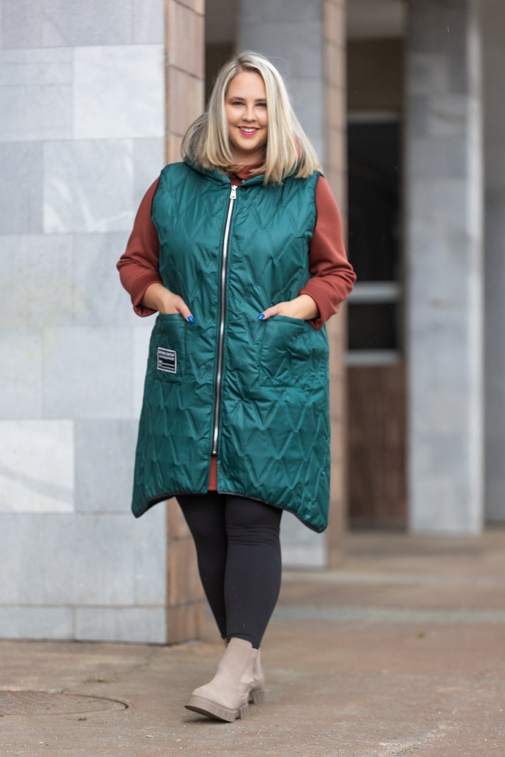 Dámská vesta TOFFI je skvělý kousek, který budeš chtít nosit každý den. Vestička je krásně příjemná na dotek a zdobená prošíváním po celé své délce. Vesta je delšího střihu, dolní lem je střižen do kulata a samozřejmostí je i kapuce, takže Tě žádný nešvar počasí nepřekvapí. Vepředu najdeš super praktické kapsičky, zdobené našitým ozdobným štítkem. Tento kousek sedne na velikost 2XL-4XL a můžeš vybírat ze spousty krásných barev tu pravou, která prozáří Tvůj den.