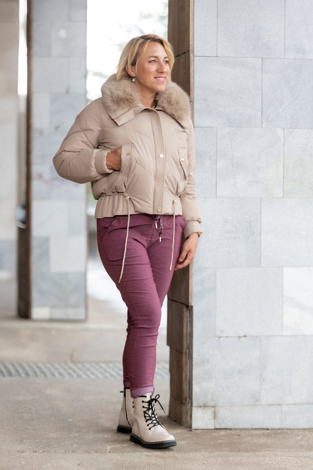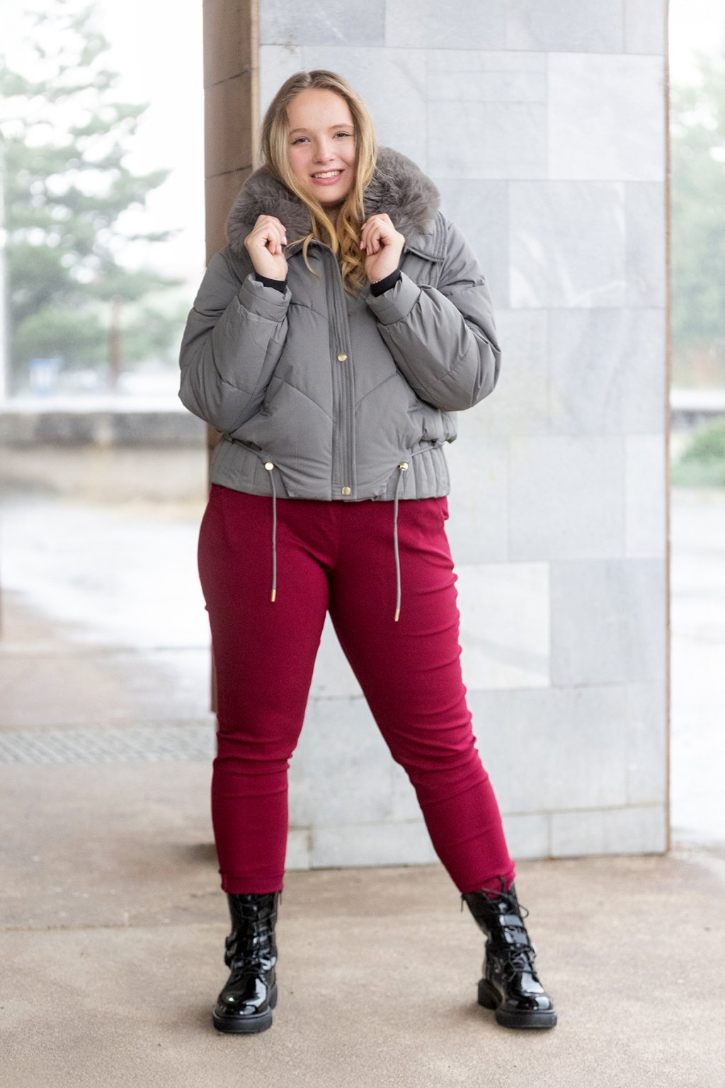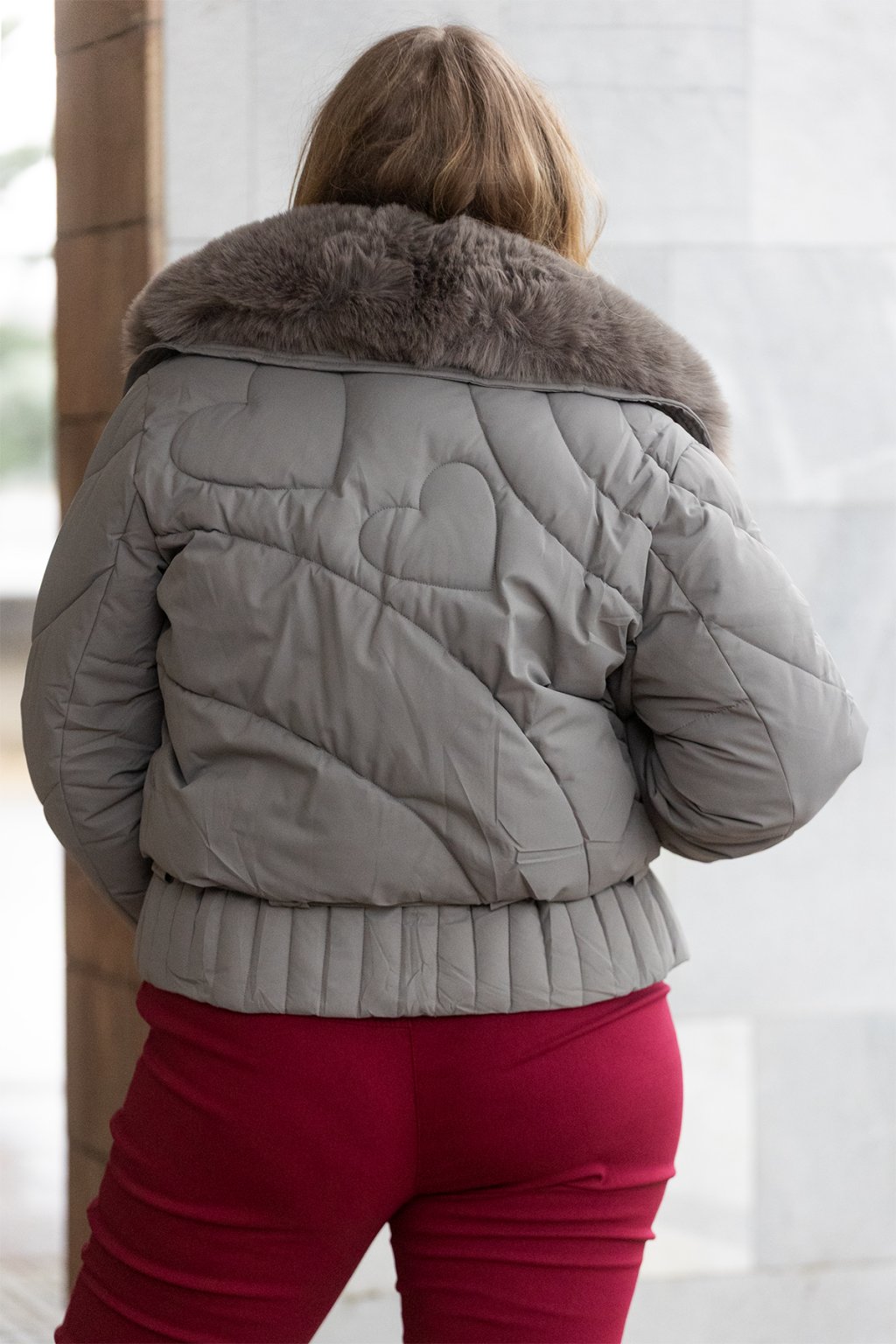 Dámská krátká bunda SONIA s délkou do pasu tě v zimě krásně zahřeje a vytvoří krásný pocit pohodlí. Prošívaná je po celé délce a na zadní straně si můžeme všimnout prošívání do tvaru srdíček. Také je vybavena podšívkou. Zimní bundu zdobí i límeček, který je lemován příjemným kožíškem, který je ale možné odepnout. Bunda má zapínání na zip, které je překryto zapínáním na patenty. Po bocích si můžeme všimnout stylových kapes. V pase je bunda do gumy a navíc je doplněna i stahováním na tkaničky. Dostupná je v neutrálních barvách a máme ji v nabídce od velikosti S až do velikosti 2XL.
