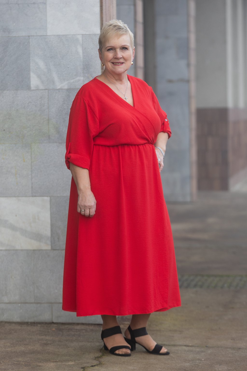 Tento model pro tebe nafotila naše Alča, běžně nosí velikost 2XL a její míry najdeš zde.