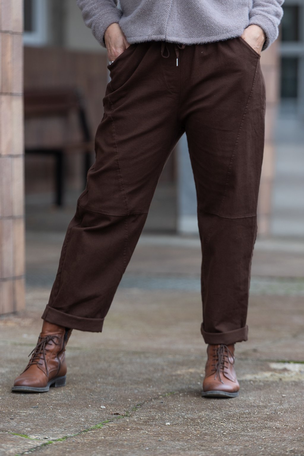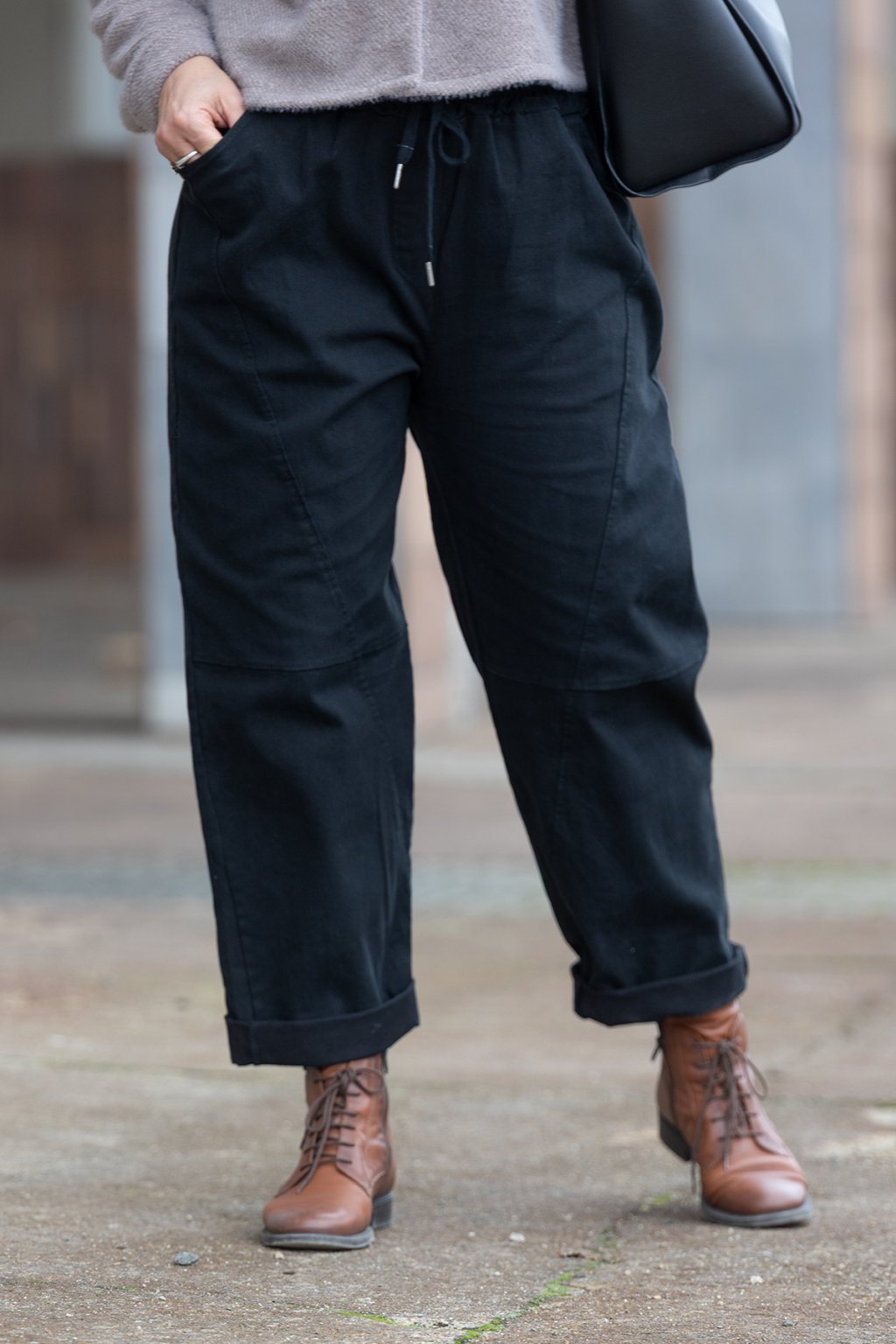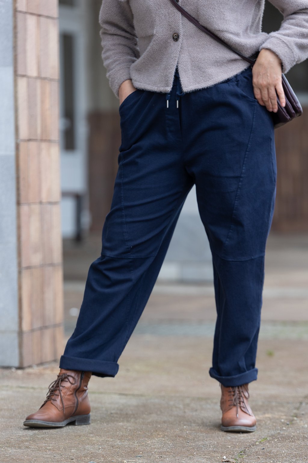 Dámské džínové kalhoty ROS jsou stylový kousek, který ti doplní ležérní outfit a dopřeje ti maximální pocit pohodlí. V pase jsou kalhoty do gumy a navíc se dají i stáhnout tkaničkami dle potřeby. Nohavice mají volný střih a jsou zajímavě zdobené švy. Mají ideální délku ke kotníkům a vypadají skvěli i ohrnuté. Po stranách si můžeš všimnout na přední straně i kapes, které se budou náramně hodit. Nejlépe ti padnou, pokud nosíš běžně velikost M-XL a máme je v nabídce v mnoha barvách.