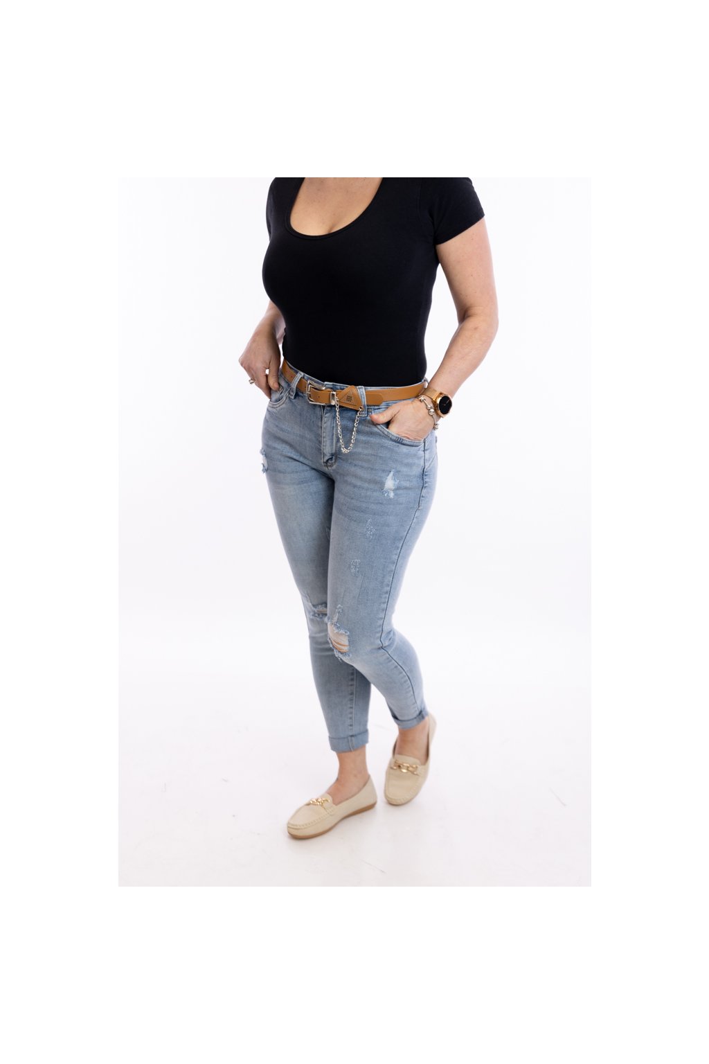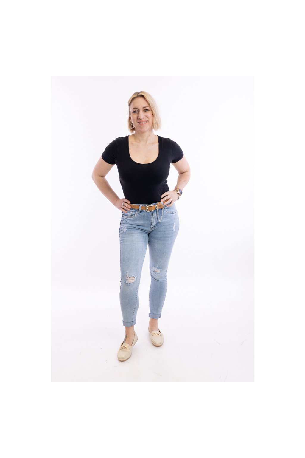 Stylové dámské strečové džíny MAREN light blue s ošoupaným efektem skvěle doplní tvůj ležérní outfit.