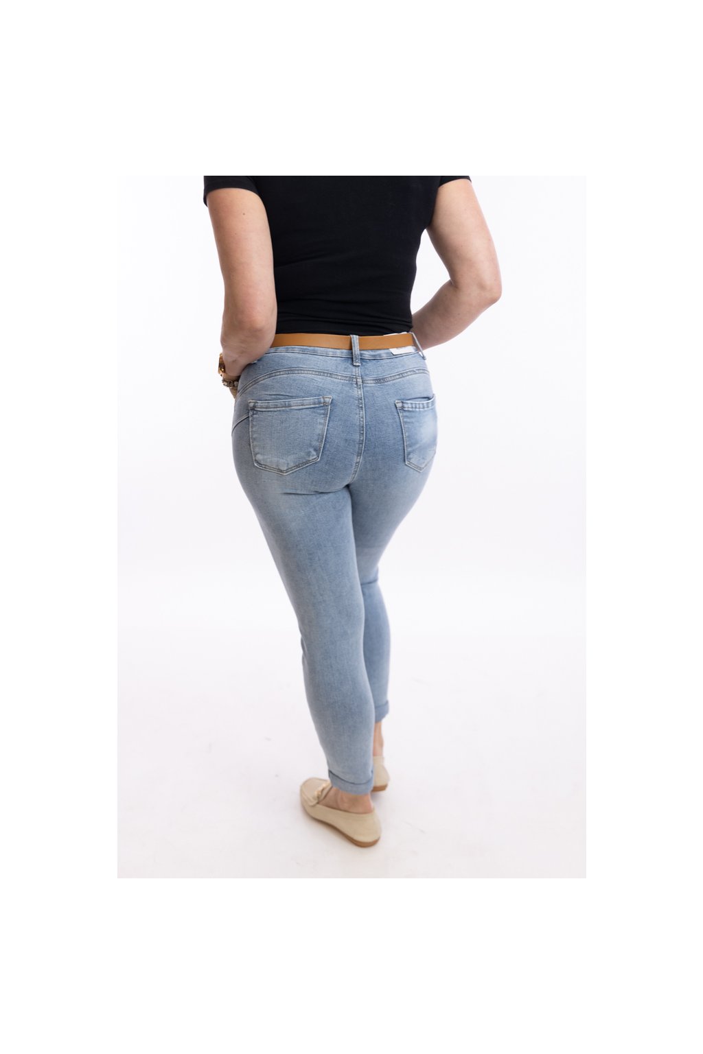 Dámské strečové džíny MAREN light blue tě překvapí svou pohodlností. Tahle kombinace ošoupaného vzhledu a klasické světle modré džínoviny působí opravdu neotřele. V zadní části mají push up efekt, takže dají krásně vyniknout tvému pozadí. Džíny jsou doplněny páskem, který doladí tvůj outfit k dokonalosti. Rozměry jednotlivých velikostí najdeš v horním popisku.