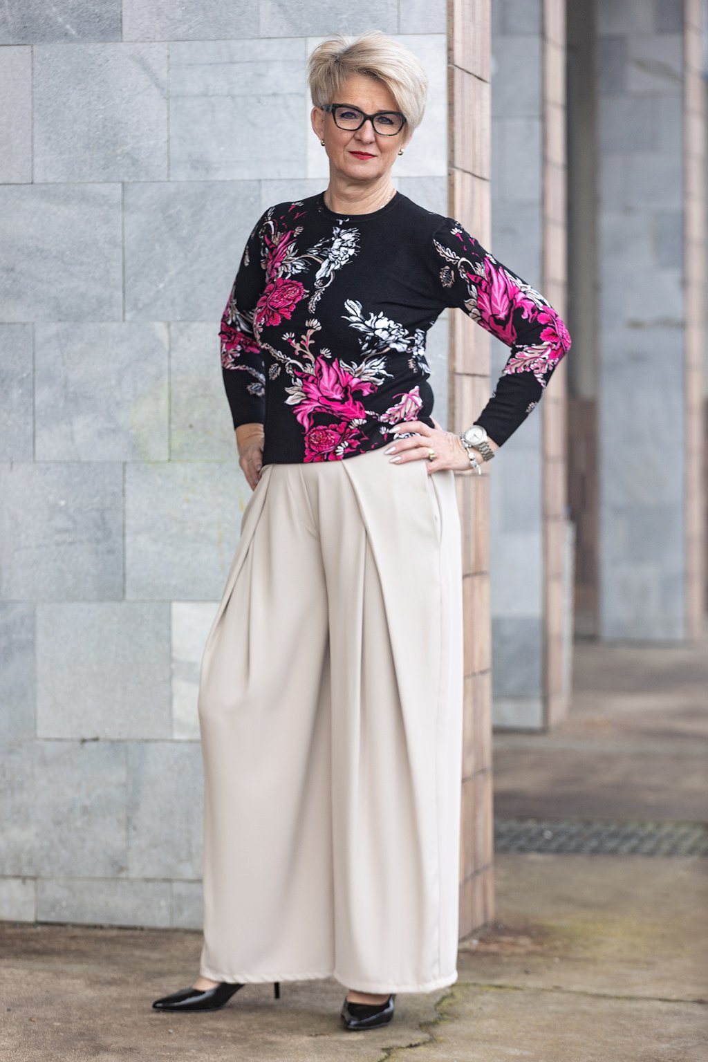 Dámské společenské kalhoty ROYAL s kapsami a elegantními sklady na přední straně jsou naším oblíbeným kouskem. Kalhoty mají ideální délku až ke kotníkům a perfektně vypadají v kombinaci s podpatky. Po stranách mají kapsy, které se ti zaručeně budou hodit. Nohavice mají široký střih a krásně splývají. Zdobené jsou překlady látky, které působí velice jedinečně a neotřele. V pase jsou do gumy a krásně se přizpůsobí tvé postavě a potřebám. Tyto společenské kalhoty jsou velice příjemné na těle a jsou z opravdu luxusního materiálu. Nejlépe ti sednou pokud nosíš velikost M-XL a máš na výběr hned z několika barev.