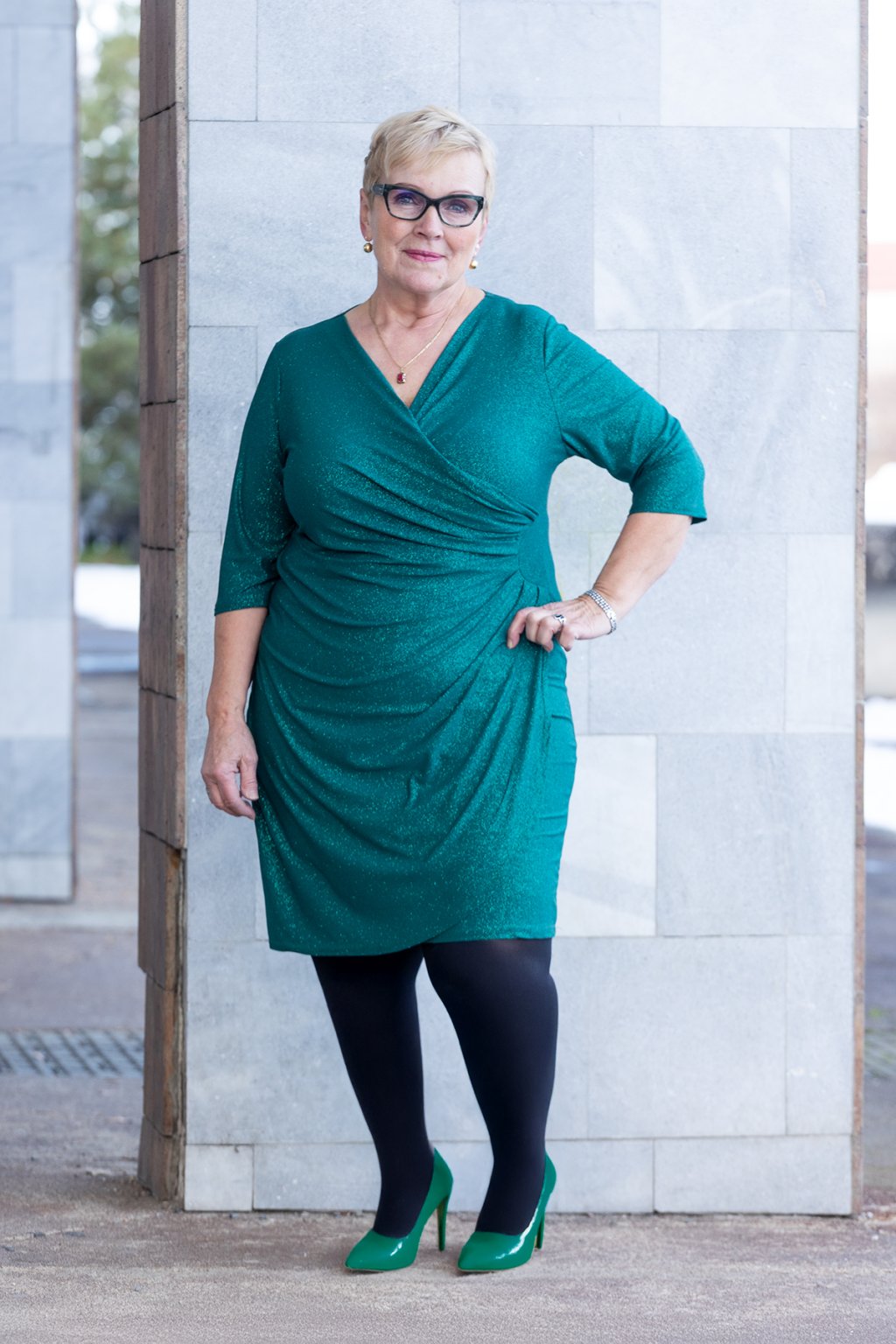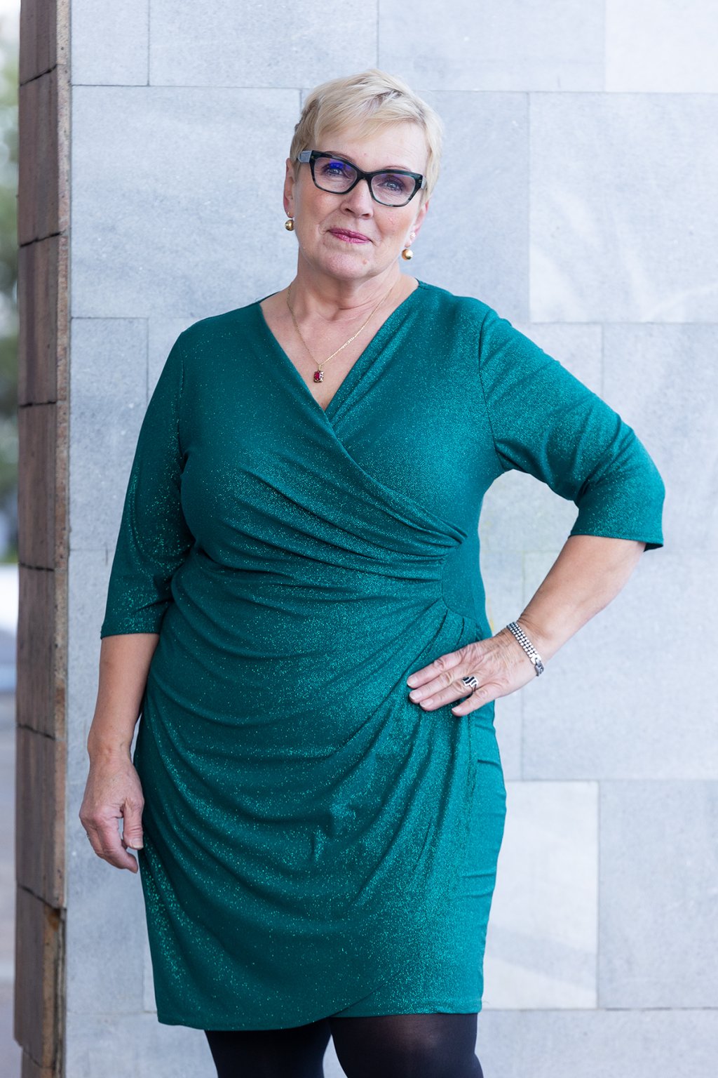 Plesové šaty ROSIE jsou ideální volbou pro všechny naše milovnice elegantních kousků. Šaty se třpytí a dodají tvému outfitu zářivý a šik dojem. Mají výstřih střižený do písmene V a zaujmout tě mohou i delší rukávy. Tyto elegantní šaty mají ideální délku ke kolenům a jemné řasení na boku. Jsou vypasované a sukně je mírně do A. Po celé své délce krásně pruží a jsou vhodnější volbou i pro prsatější dámy. Jsou velice příjemné na těle a my už se těšíme, až je budeme moct vynosit. Vybereš si u nás pokud nosíš velikost 44 - 50.