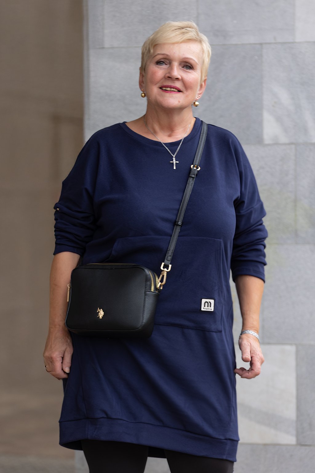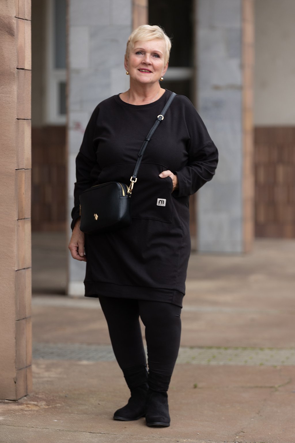 Fleecové šaty MÍŠA jsou ideální na chladnější dny a to díky svým dlouhým rukávům, hřejivému materiálu a ideální délce ke kolenům. Šaty mají volný střih, který lichotí tvé postavě a dokonale skryje nedokonalosti. Rukávy mají spadlá ramena a dají se nosit i shrnuté. Na přední části se vyjímá klokánková kapsa, která je navíc zdobená decentní třpytivou nášivkou. Dolní lem šatů je výrazný a perfektně pružný. U krku si můžeme všimnout kulatého výstřihu, který přispívá k naprosté dokonalosti šatů. Nejlépe ti tento šik kousek bude sedět pokud nosíš velikost XL-3XL a je dostupný v několika nádherných barvách.