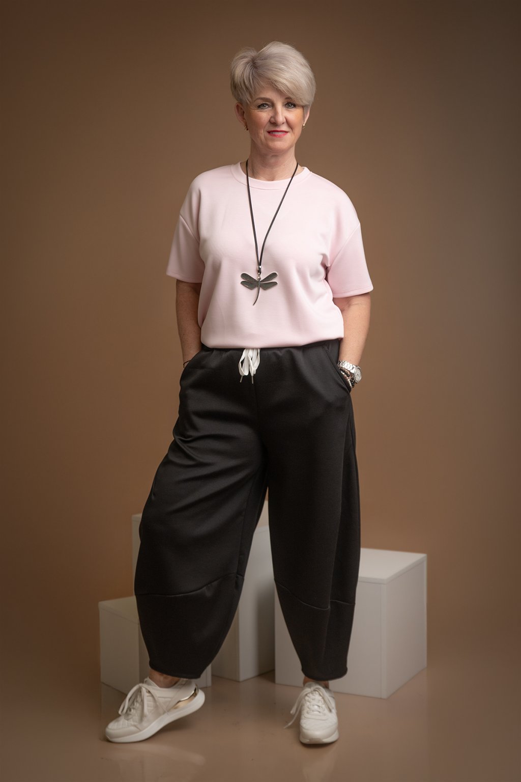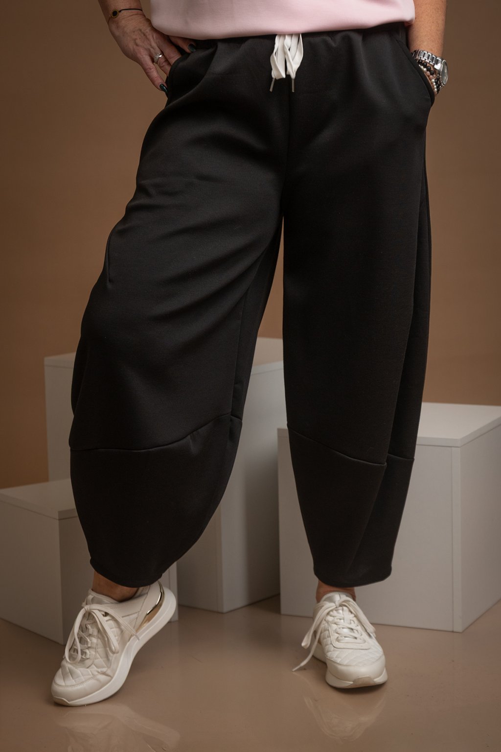 Dámské harémové kalhoty DAHLIA jsou kousek, který žádné milovnici pohodlí nesmí chybět. Nohavice mají volný střih harémového stylu. Kalhoty mají v pase gumu, díky které jsou dokonale pružné a přizpůsobí se tvé postavě. Pas se dá upravit i tkaničkou, kterou je guma doplněna. Po bocích mají kalhoty stylové kapsy a jsou dostupné v překrásných barvách. Nejlépe sedí na postavu s velikostí L-2XL.