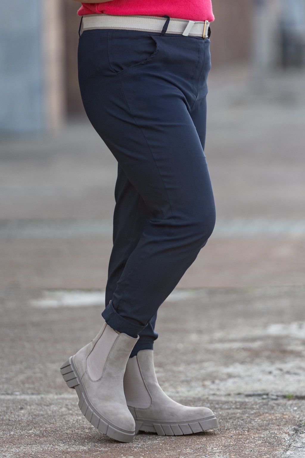 Dámské kalhoty AMIGO jsou vhodné na každodenní nošení a na podzim je určitě unosíš. Jsou doplněny stylovým páskem a mají skvělý střih. Nohavice je možné nosit ohrnuté a po bocích mají kalhoty kapsy. V pase jsou kalhoty do gumy, po celé délce pruží a díky tomu se skvěle přizpůsobí tvé postavě. Líbí se ti kalhoty, ale potřebovala by si větší velikost? Mrkni na naše kalhoty AMIGO maxi. Tento slušivý kousek máme dostupný v mnoha barvách a nejlépe sedí od velikosti M-XL.