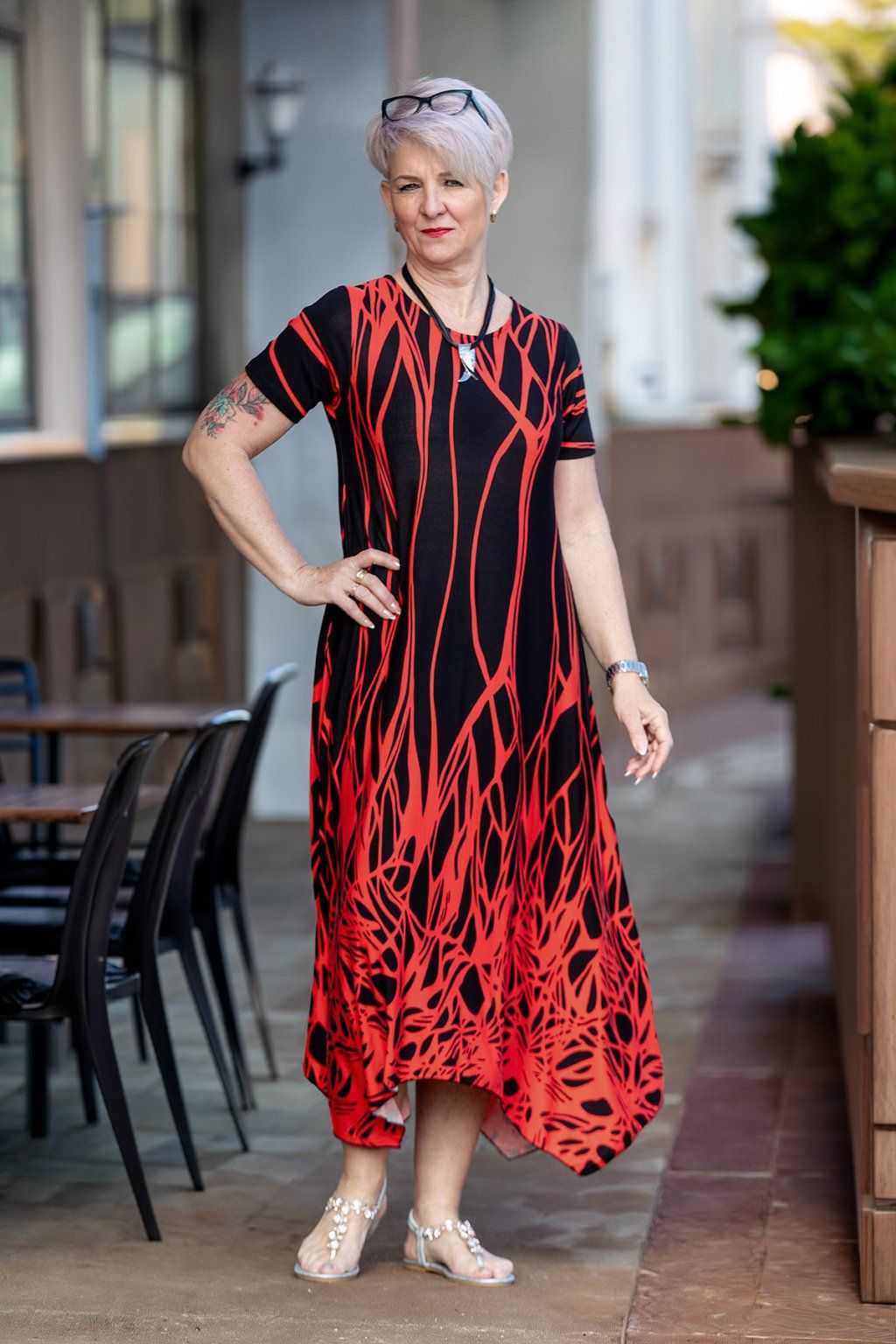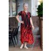 Dámské šaty TESIE jsou neuvěřitelně pružný a pohodlný kousek. Šaty mají krátké rukávy a krku je zdobí kulatý výstřih. Sukně je splývavá a na konci je střižená do cípů, které na sukni vytvářejí jedinečný a nevšední efekt. Šaty jsou po celé délce vzorované a to v barevné kombinaci černé a červené, která ti dodá šmrnc. V naší nabídce je najdeš od velikosti XL až do 5XL a věříme, že své využití najdou i u tebe.