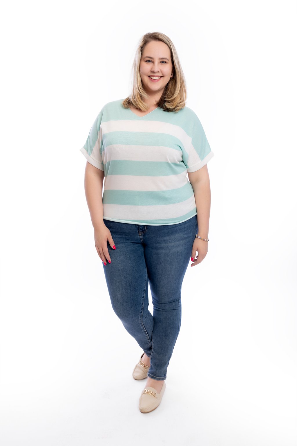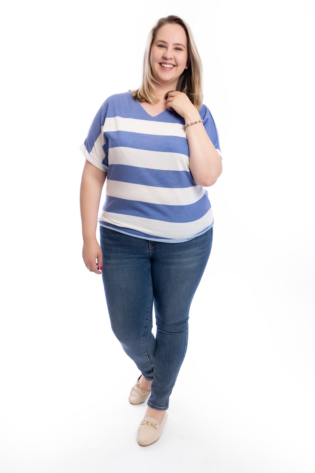 Hledáš tričko, které je jednoduché a přitom udělá spoustu parády? Už nemusíš dál hledat! Dámské pruhované tričko VENDY je ideální kousek pro každou dámu. Snadno se kombinuje s dalšími částmi outfitu. Nejlépe sedne velikostem L až 2XL a vybírat můžeš z několika barev, ať už máš ráda zemité nebo veselé barvy, hravě si vybereš.