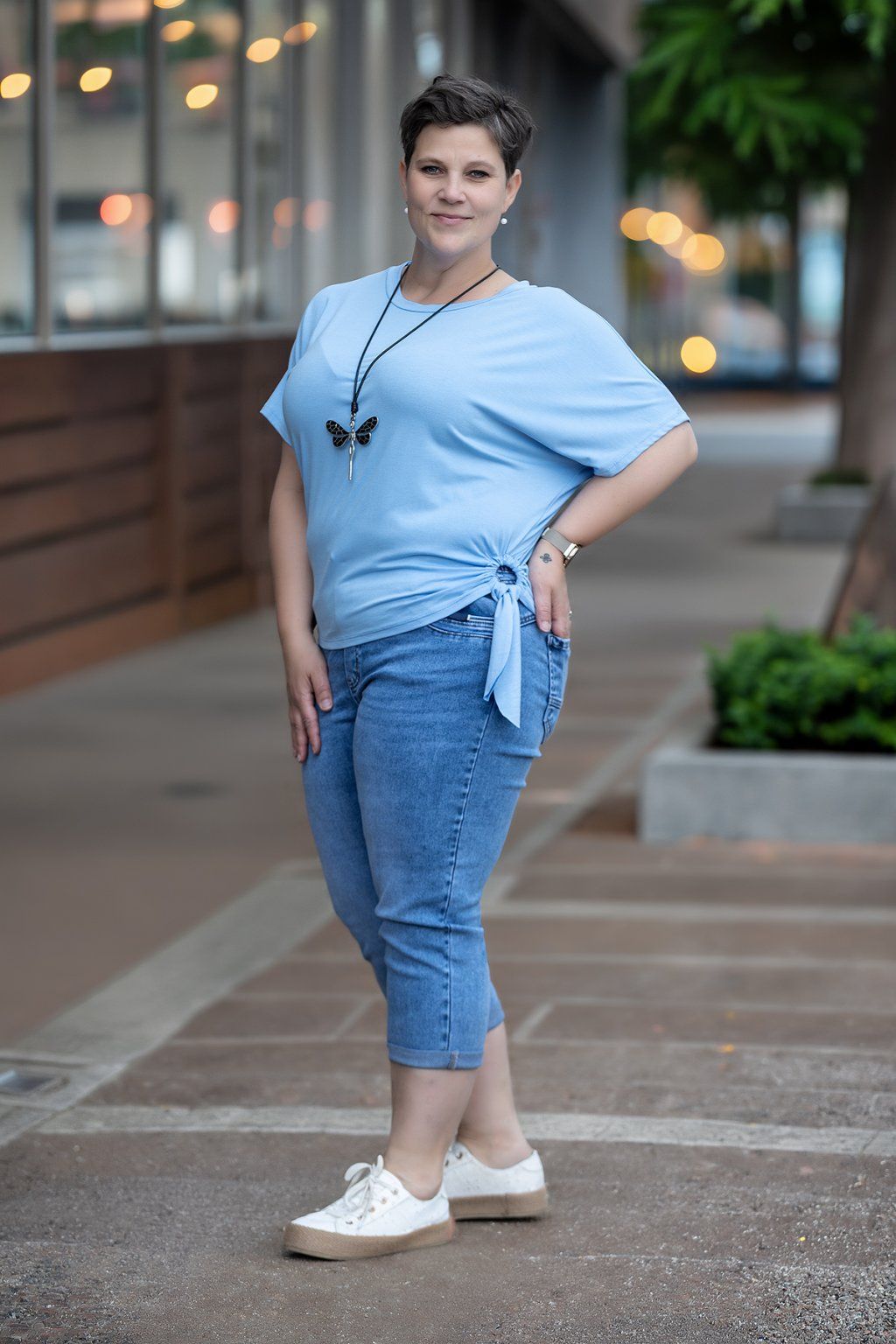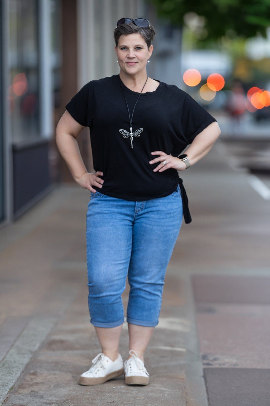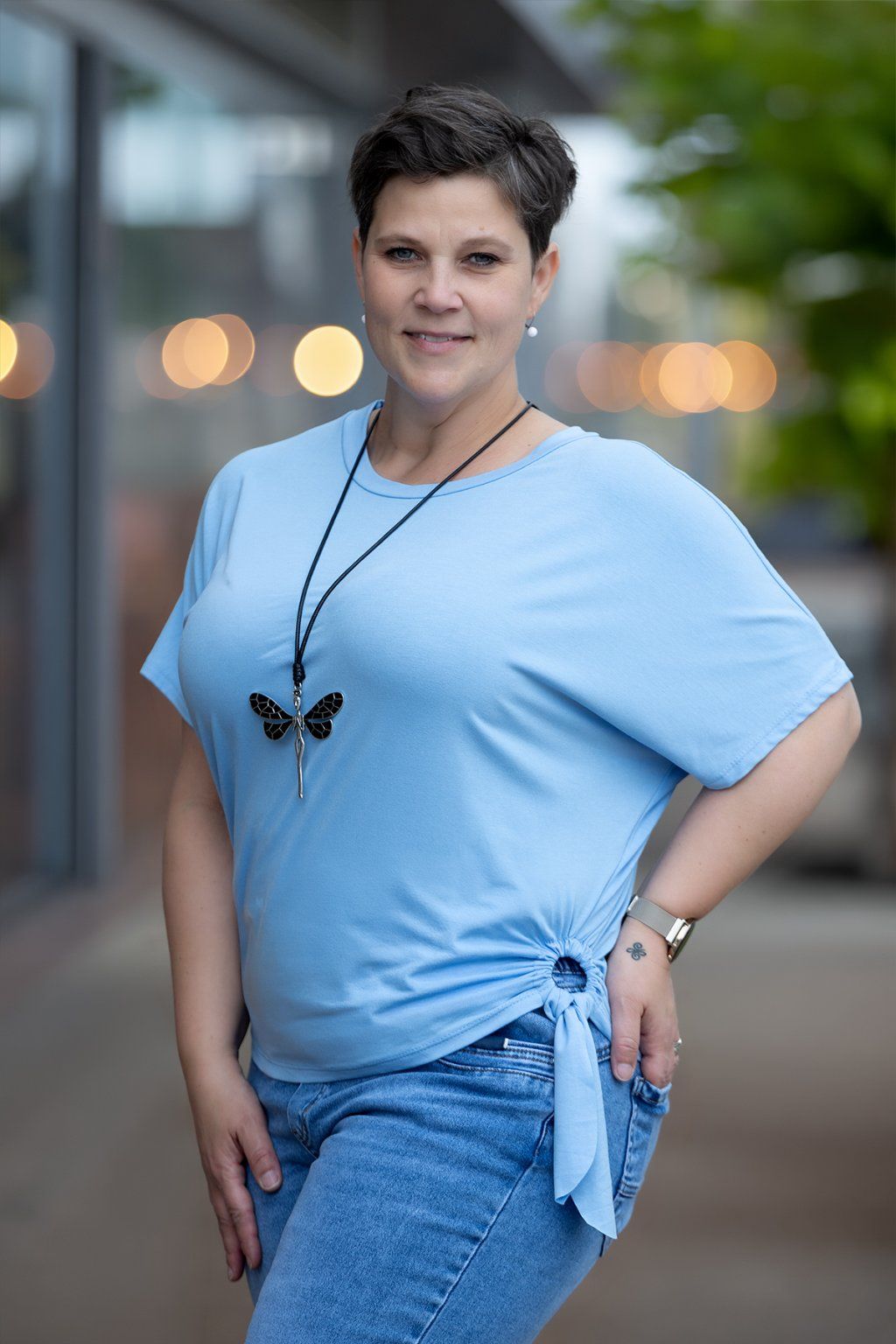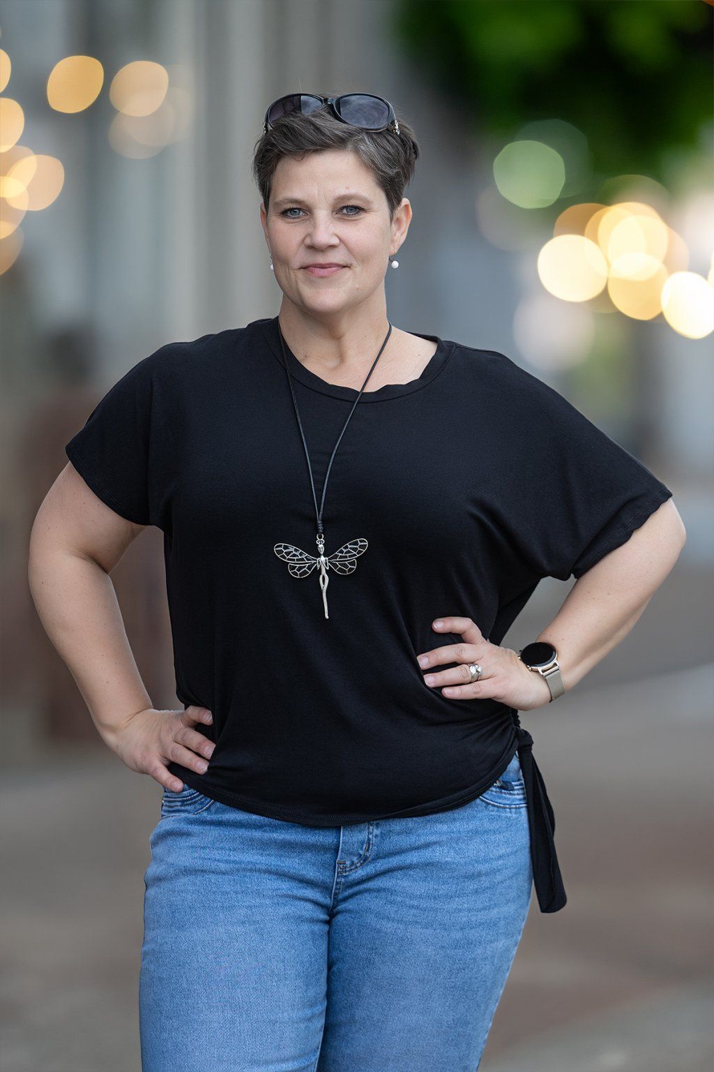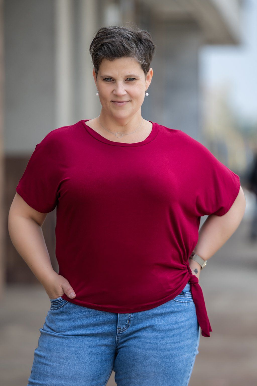 Dámské tričko DORIAN je naprostá paráda. Tričko je s krátkým rukávem a pruží po celé své délce. Na boku jej zdobí kulatá spona doladěná stylovým uzlíkem, která dodá kousku šmrnc. U krku si můžeš všimnout decentního výstřihu, který je střižený do kulata. Tento jednoduchý kousek sladíš naprosto se vším. V naší nabídce je nespočet barev a nejlépe ti bude sedět pokud nosíš velikost L-2XL.