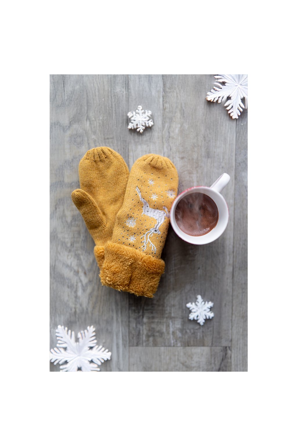 Dámské rukavice palčáky SOB mají krásné detaily stříbrně vyšitých sněhových vloček a soba. Rukavice jsou pletené a mají uvnitř chloupek - jemný fleese po celé délce rukavice. V nabídce jsou v několika barvách.