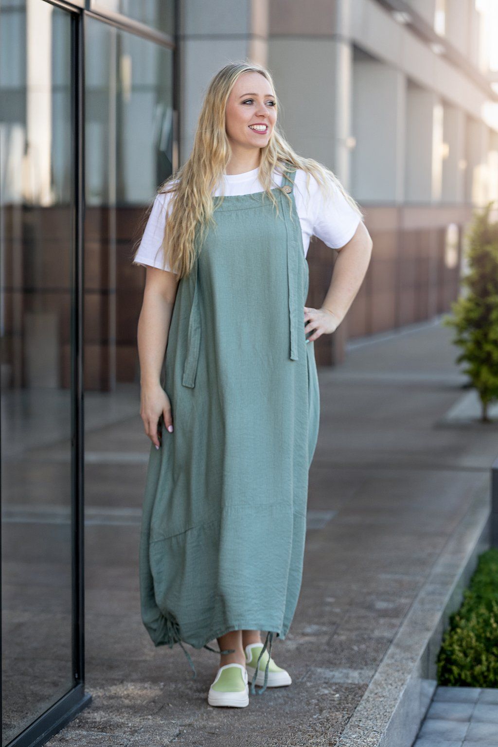 Dámské šaty ALENA - nebo spíš šatová sukně? Tento stylový kousek rozzáří každý tvůj jediný den. Šaty mají široká ramínka, kterými se dá uzpůsobit délka pomocí zapínání na knoflíky. Po stranách si můžeš všimnout i praktických kapes, které určitě oceníš. Mají volný střih, který schová veškeré nedokonalosti a po stranách sukně je jemné stahování, které vytváří z šatovky jedinečný kousek. V naší nabídce to hraje barvami a nejlépe ti bude sedět pokud nosíš velikost L-2XL.