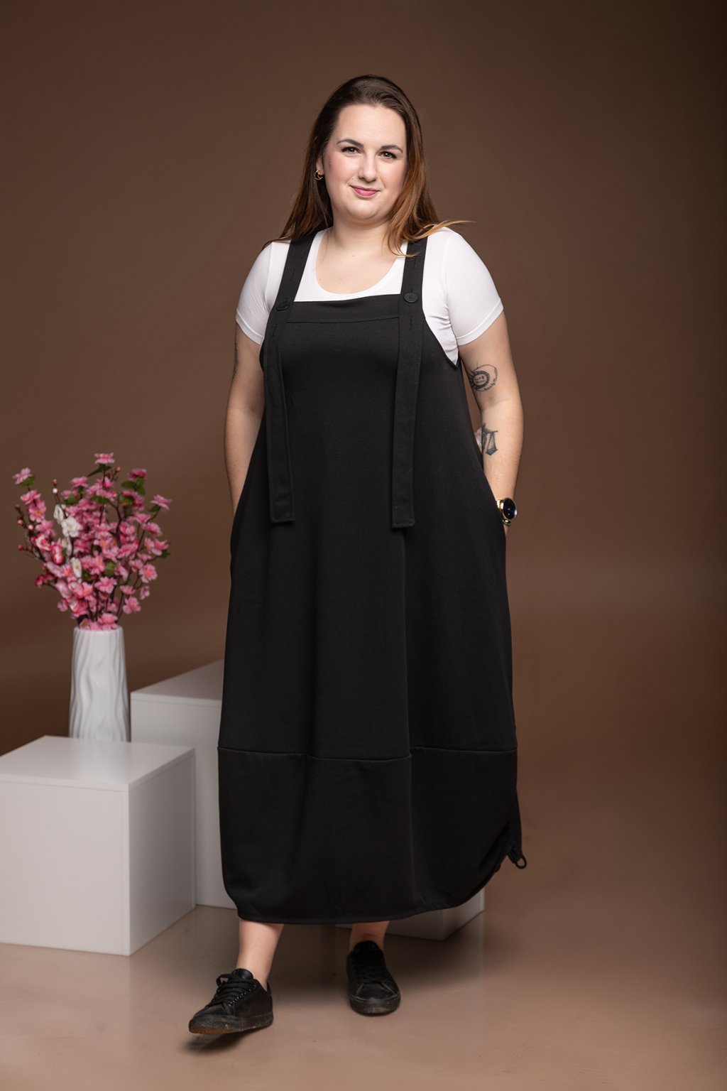 Dámské šaty DOILE - ta nejpohodlnější šatovka všech dob. Volný střih ti dopřeje nevídané pohodlí a příjemný a hladký materiál zrovna tak. Po stranách jsou i velice praktické a stylové kapsy, které se hodí na veškeré nezbytnosti. Díky své jednoduchosti se dají šaty skvěle kombinovat. Ramínka se dají upravit a zapínají se na knoflík. Sukně je střižená do oblouku a po stranách se dá stáhnout tkaničkami. V naší nabídce máš na výběr z více barev a nejlépe ti budou sedět pokud nosíš velikost L-2XL.
