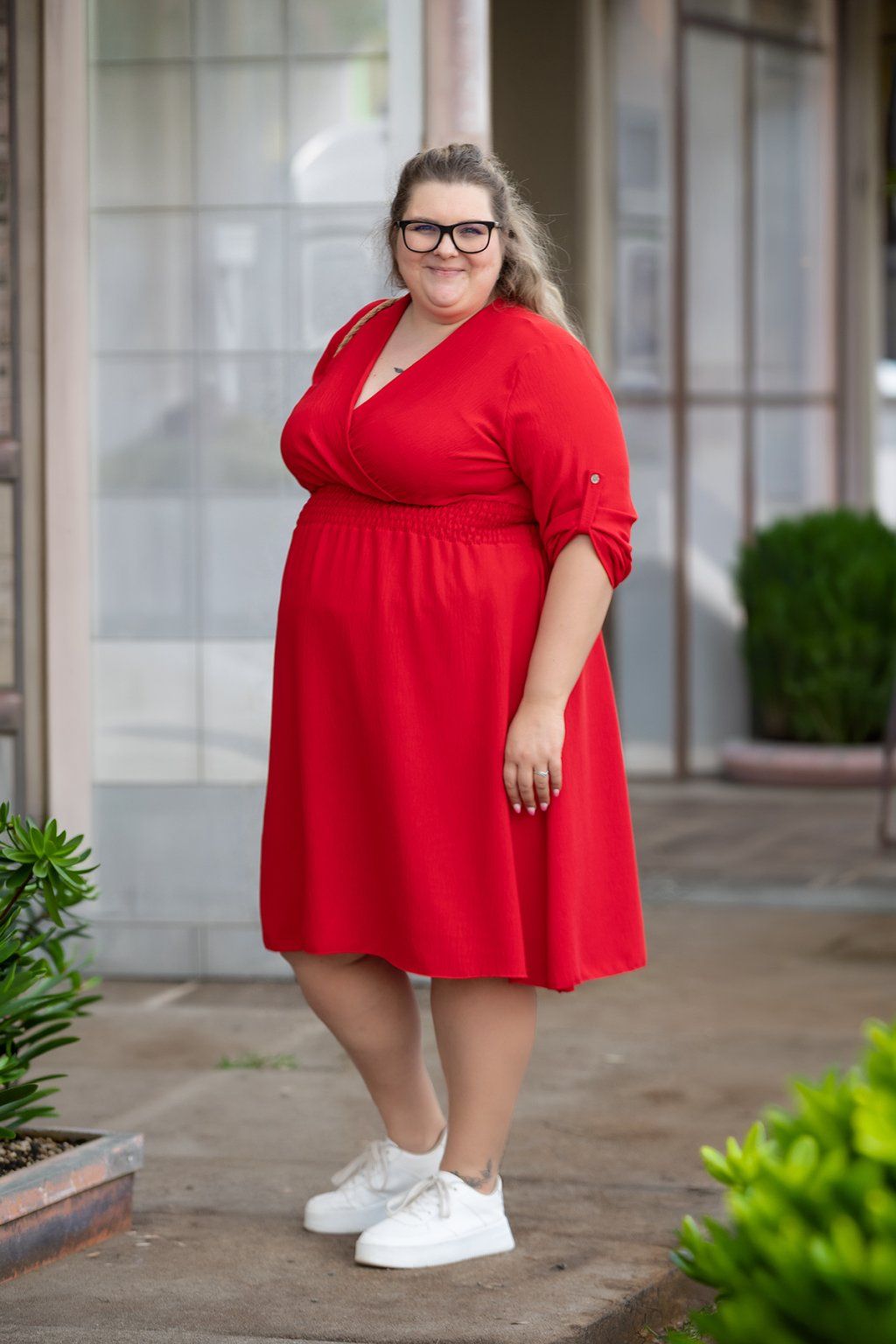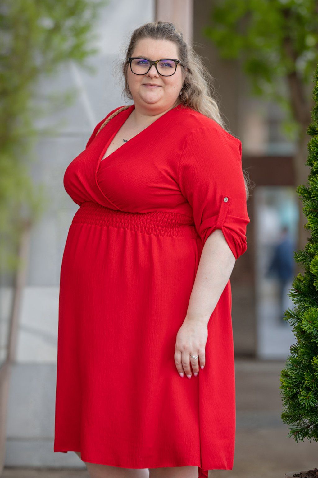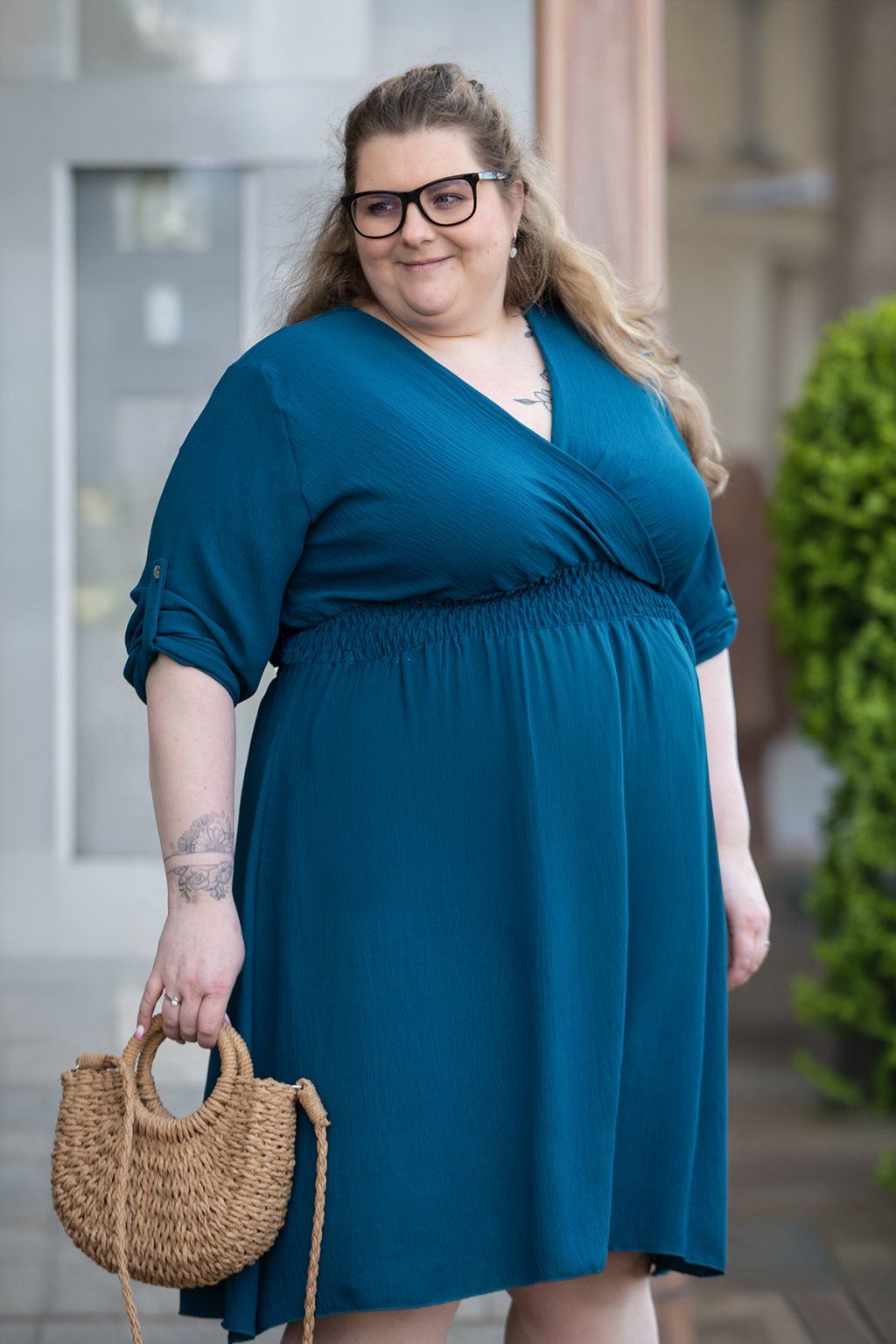 Dámské šaty GRAPE ti svým střihem vykouzlí lichotivou siluetu a svým příjemným materiálem tě pohladí po těle. Mají výstřih do písmene V a pod prsy jsou doladěné i žabičkováním, které se krásně přizpůsobí tvé postavě a nebude tě nikde tlačit ani škrtit. Rukávy jsou u šatů delší a dají se sepnout zapínáním na knoflík. Sukně šatů krásně splývá a délka je mírně pod kolena. Zadní díl šatů je delší a vytváří tak jedinečný a šik efekt. Tento kousek dodá tvým dnům šmrnc a u nás jej najdeš hned v několika barvách. Nejlépe ti šaty budou sedět pokud nosíš velikost 2XL-4XL.