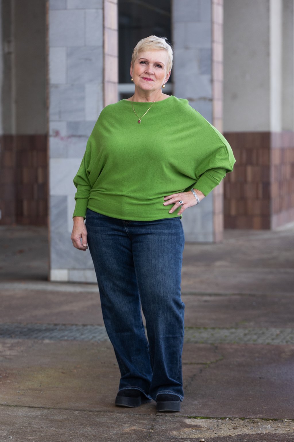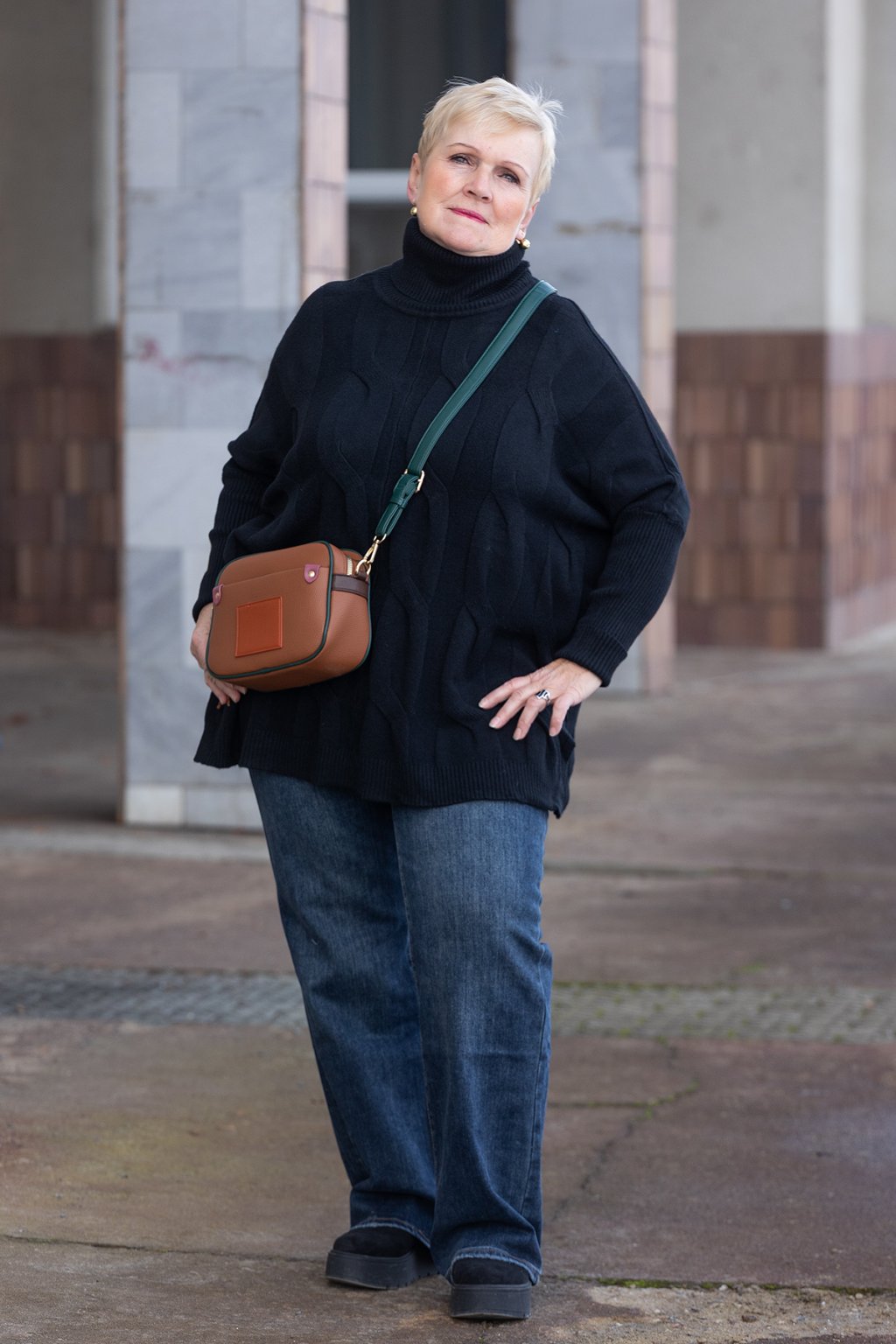 Tento model pro tebe nafotila naše Péťa, na sobě má velikost L a její míry najdeš zde.