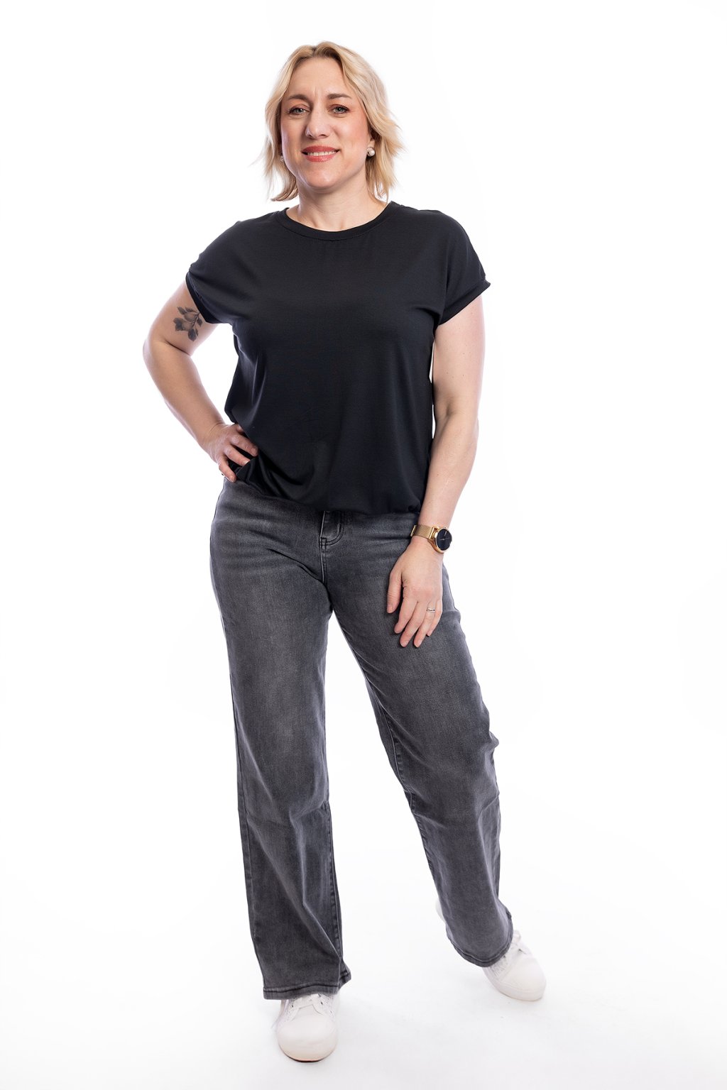 Dámské široké džíny STRIKE jsou perfektní strečové džíny v tmavě šedé barvě. Džíny krásně pruží a máme je v nabídce ve více velikostech. Mají volné, široké nohavice a kapsy na bocích v přední části a také na zadku. Džíny jsou do pasu a jsou velmi pohodlné.