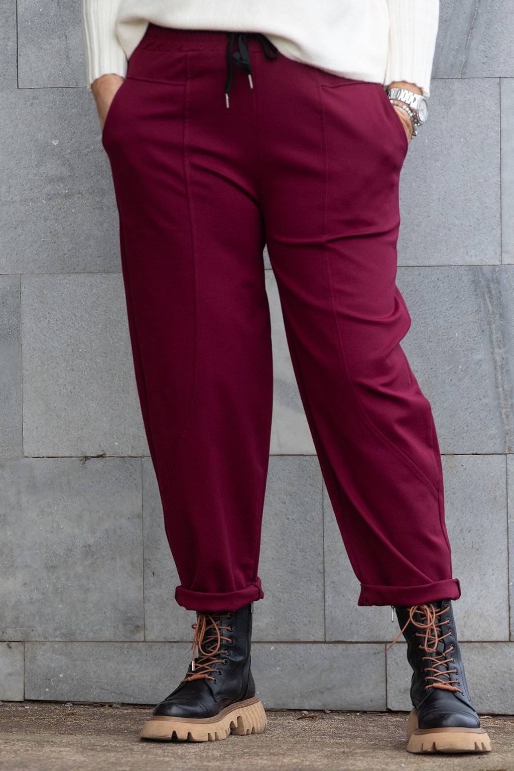 Dámské teplákové kalhoty JOE si zkrátka zamiluješ. Jsou z velice příjemného a hebkého materiálu, který tě pohladí na těle. Krásně pruží po celé své délce a v pase mají navíc gumu, takže se nemusíš bát, krásně se přizpůsobí tvé postavě. V pase se navíc zavazují pomocí tkaničky. Kalhoty mají volnější nohavice a po stranách mají stylové a navíc i praktické kapsy, které se ti určitě budou hodit. Šmrnc jim dodávají také nápadité a originální švy na nohavicích. V naší nabídce si můžeš vybírat i z barviček a budou ti sedět pokud nosíš velikost M-XL.
