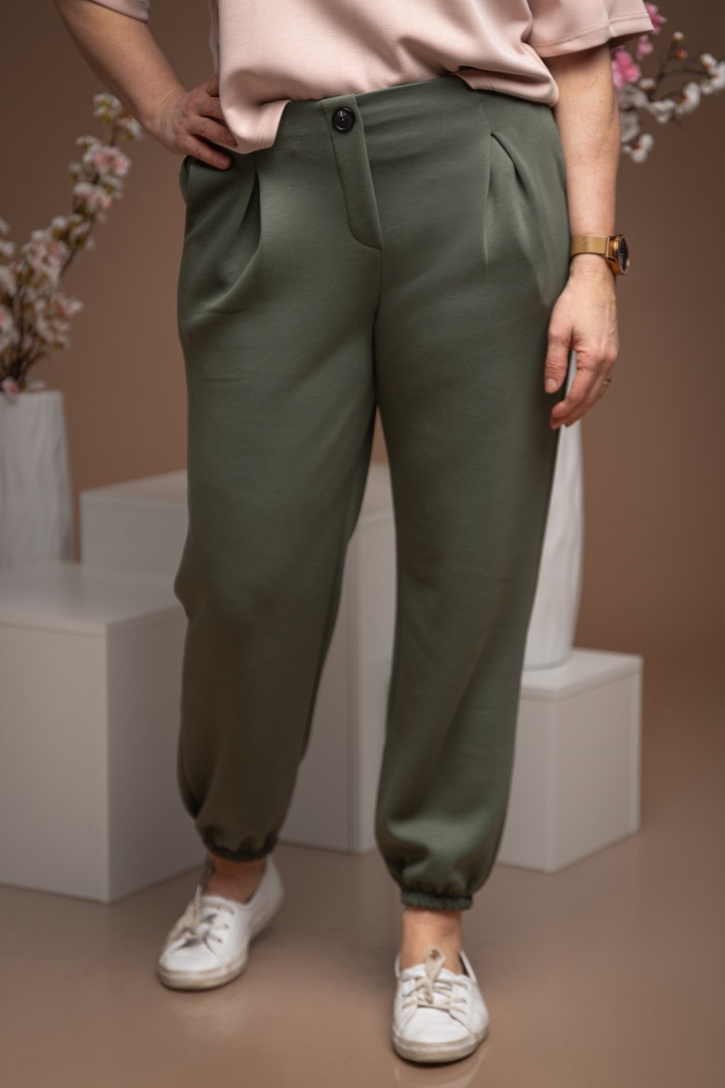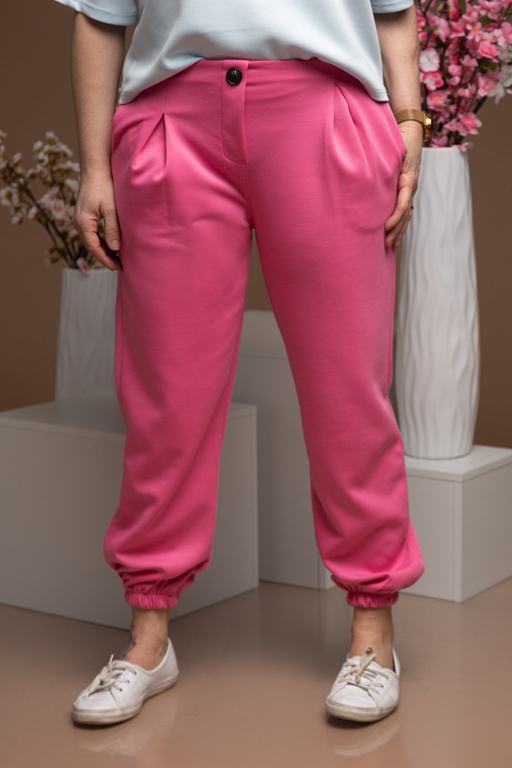 Dámské teplákové kalhoty MILKIE jsou za nás jasná volba. Definice pohodlí a stylu. Kalhoty mají spodní lem nohavic do gumy a nechybí jim ani pohodlný pružný pas. Všimnou si můžeš i ozdobného knoflíku s falešným zapínáním. Tyto teplákové kalhoty mají volný střih a na přední straně jsou zdobené překlady látky a vytváří se tak jemné řasení. Po stranách jim nechybí ani kapsy, které jsou velice praktické. Krásně pruží po celé své délce a v naší nabídce je najdeš hned v několika barvách. Nejlépe sedí na postavu s velikostí S-L.
