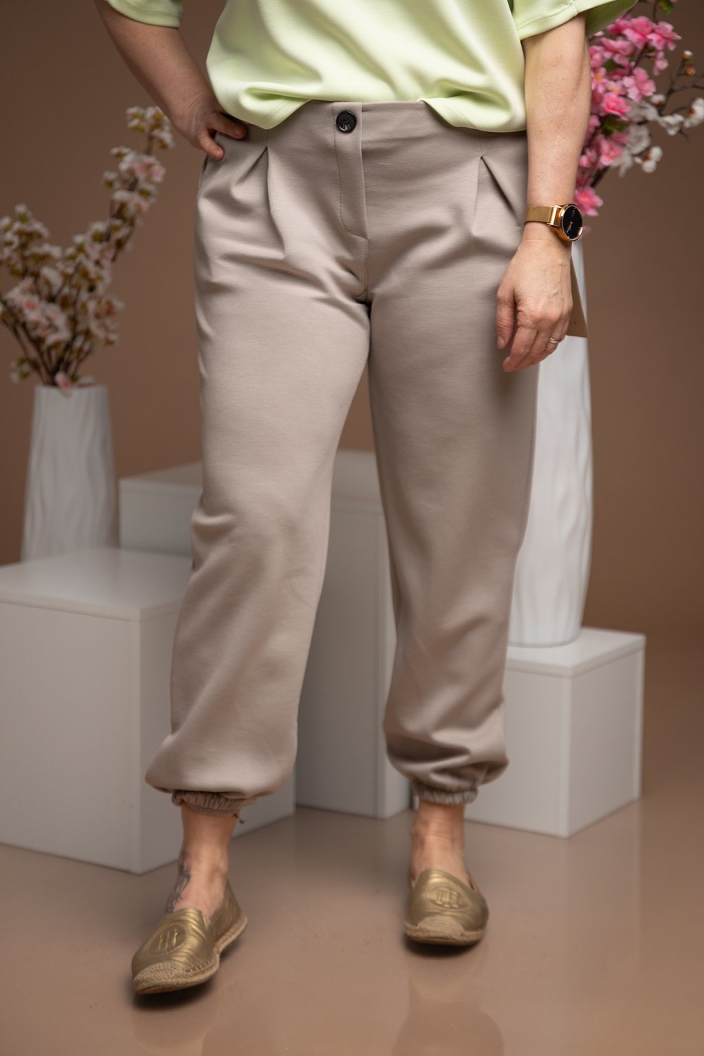 Dámské teplákové kalhoty MILKIE s kapsami po stranách a ozdobnými sklady na přední straně jsou naprostá nutnost do tvého šatníku.