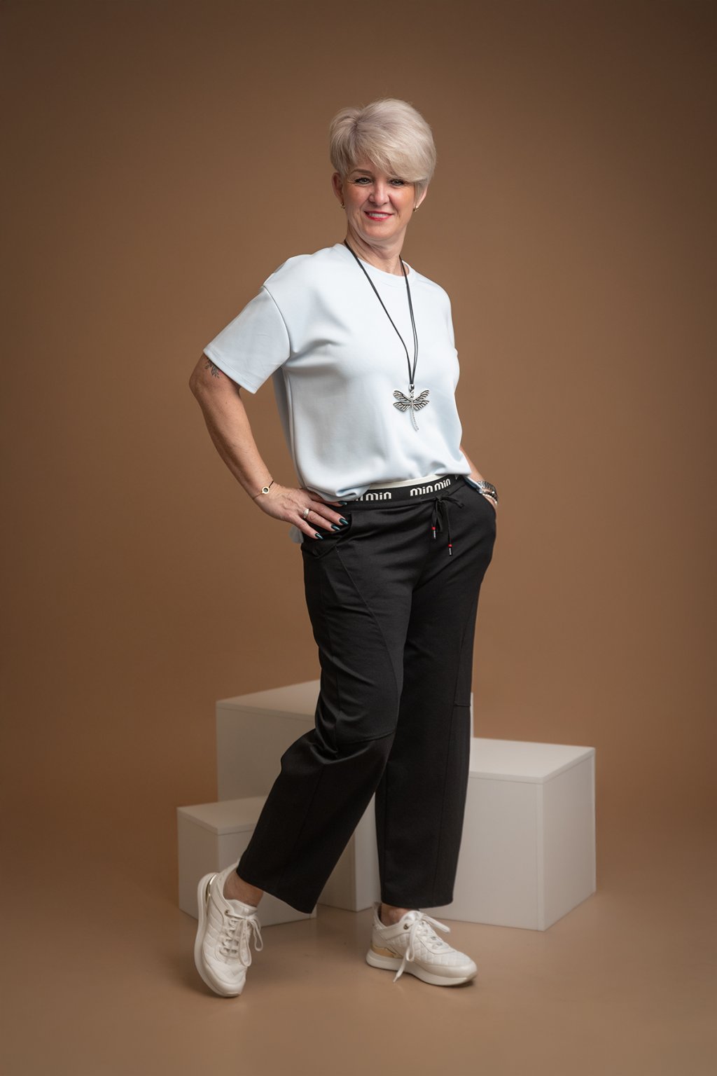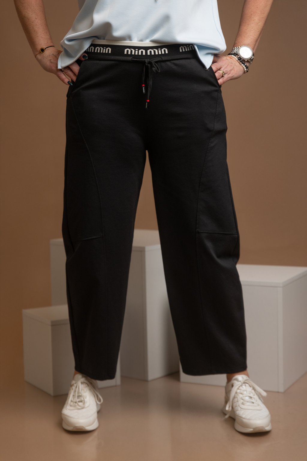 Dámské teplákové kalhoty MINIMAL jsou definice pohodlí a komfortu. Pružný pas se krásně přizpůsobí tvé postavě a balónový střih schová veškeré nedokonalosti.