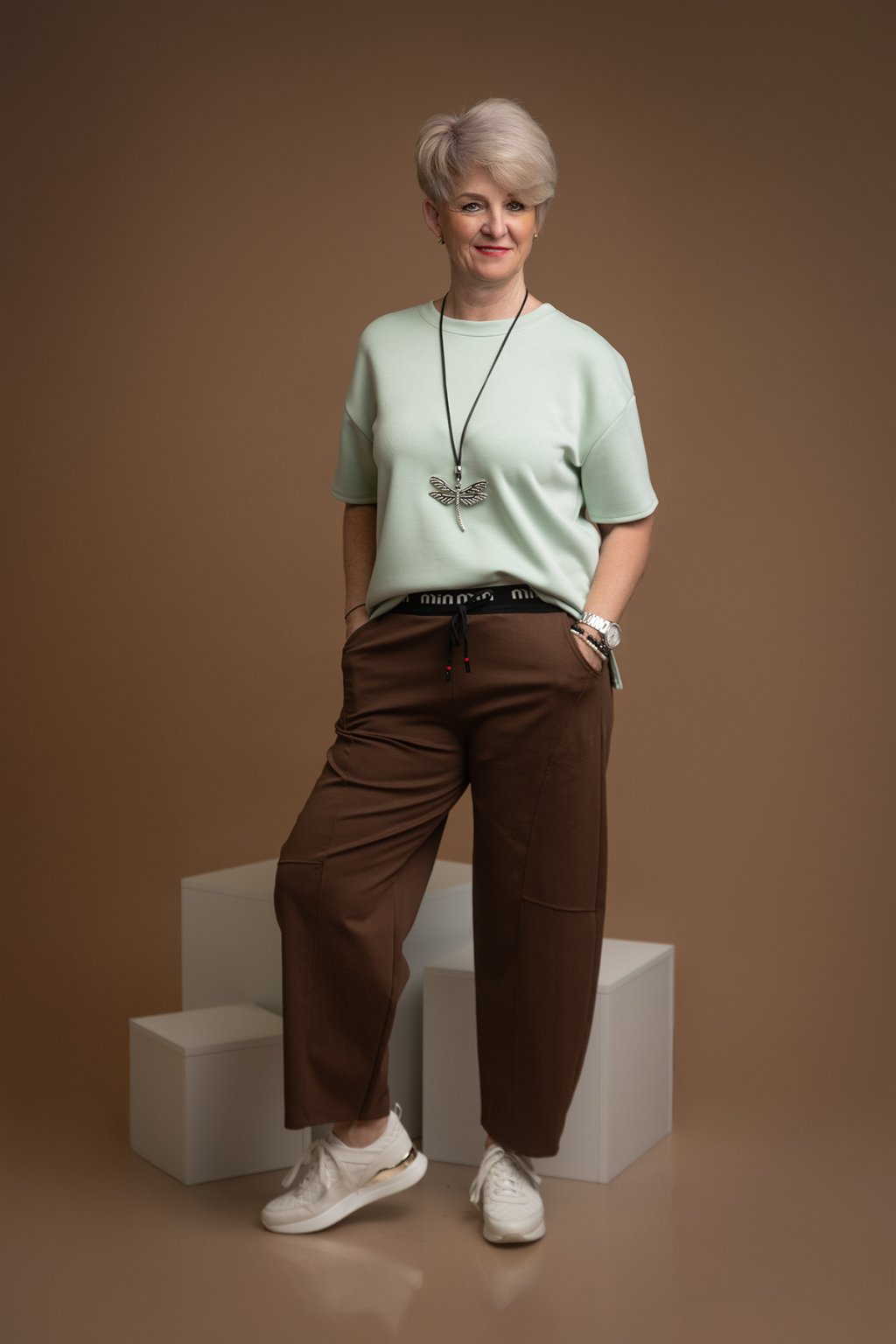 Dámské teplákové kalhoty MINIMAL - pocit pohodlí a volnosti. V pase je pružná guma v černé barvě s bílým nápisem. Navíc je pas doplněn i tkaničkou, takže se ti dokáže maximálně přizpůsobit. Po bocích mají kalhoty i praktické kapsy, které se budou zaručeně hodit. Tyto teplákové kalhoty mají lichotivý střih balónových nohavic a dodají každému tvému outfitu šmrnc. Velice pruží po celé své délce. V naší nabídce jsou v mnoha veselých barvách a nejlépe ti bude sedět pokud nosíš velikost M-XL.