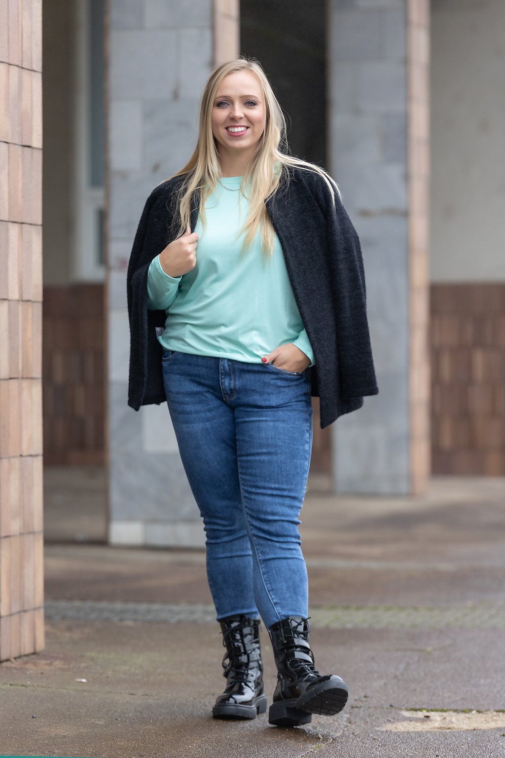 Tento model pro tebe nafotila naše Péťa, běžně nosí velikost XL/2XL a její míry najdeš zde. Také ho pro tebe nafotila naše Raduška, která nosí velikost L/XL a její míry najdeš zde.
