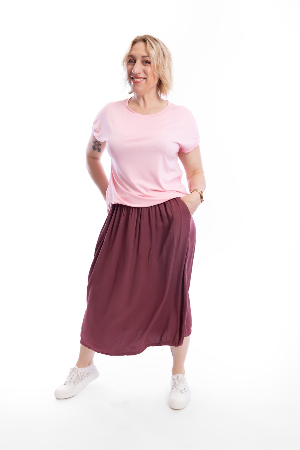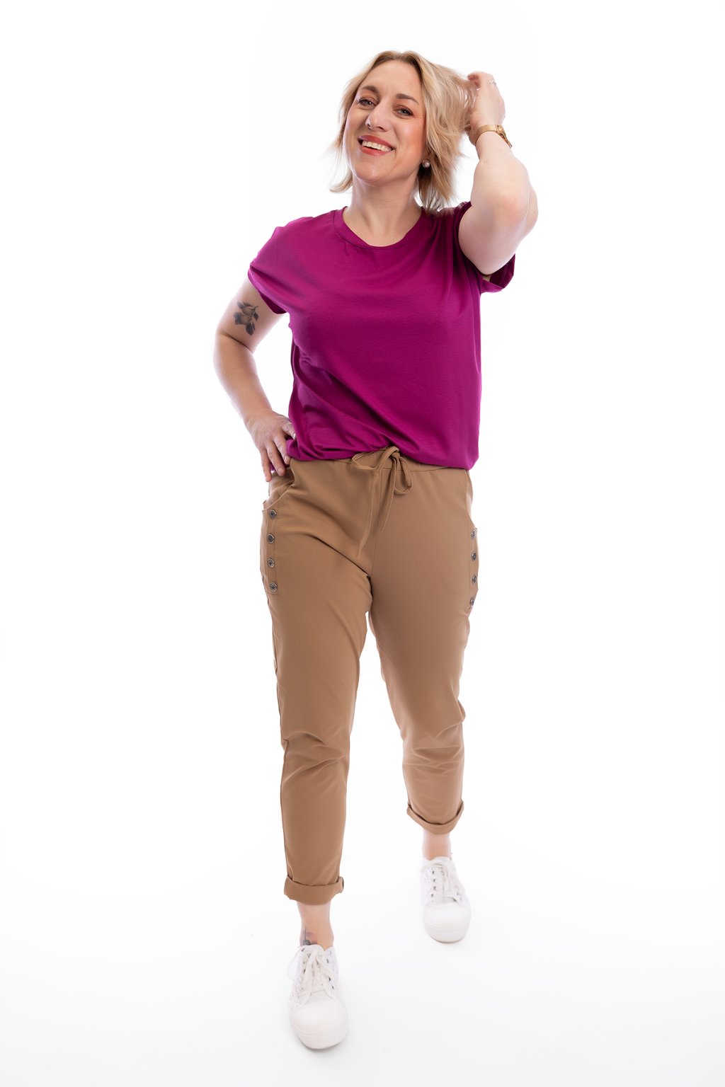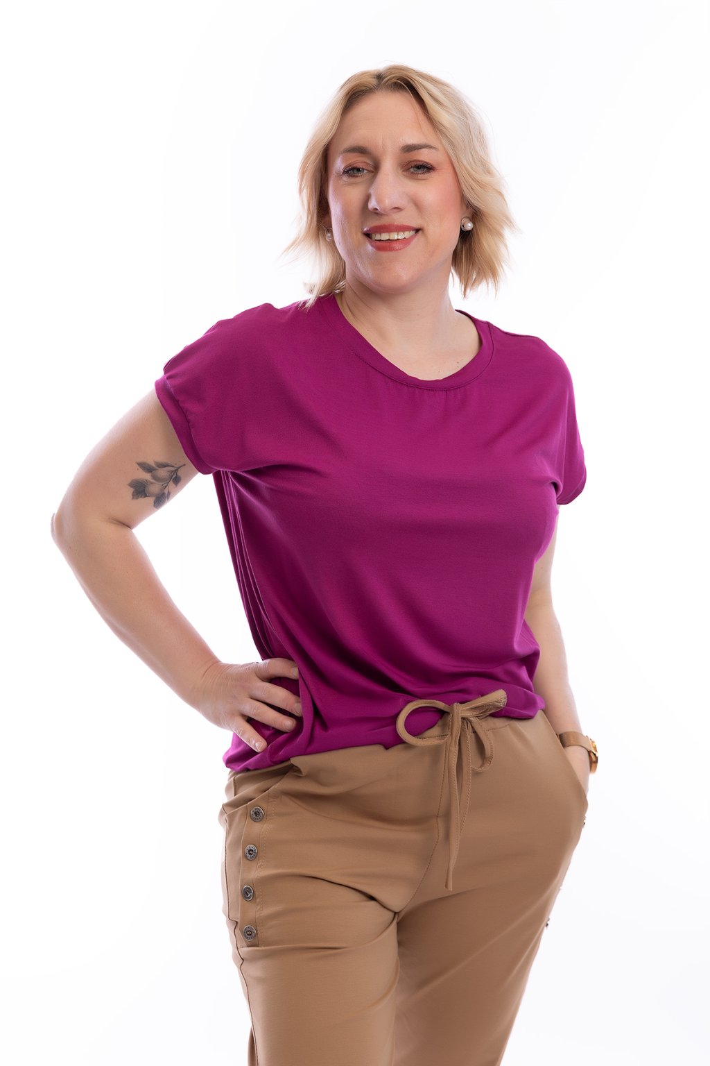 Tip od Holek: Tápeš, čím tohle tričko doplnit? Pohodlí ti zaručí taky pružné kalhoty ATOMKY comfy nebo pružné kraťasy TOCCA.