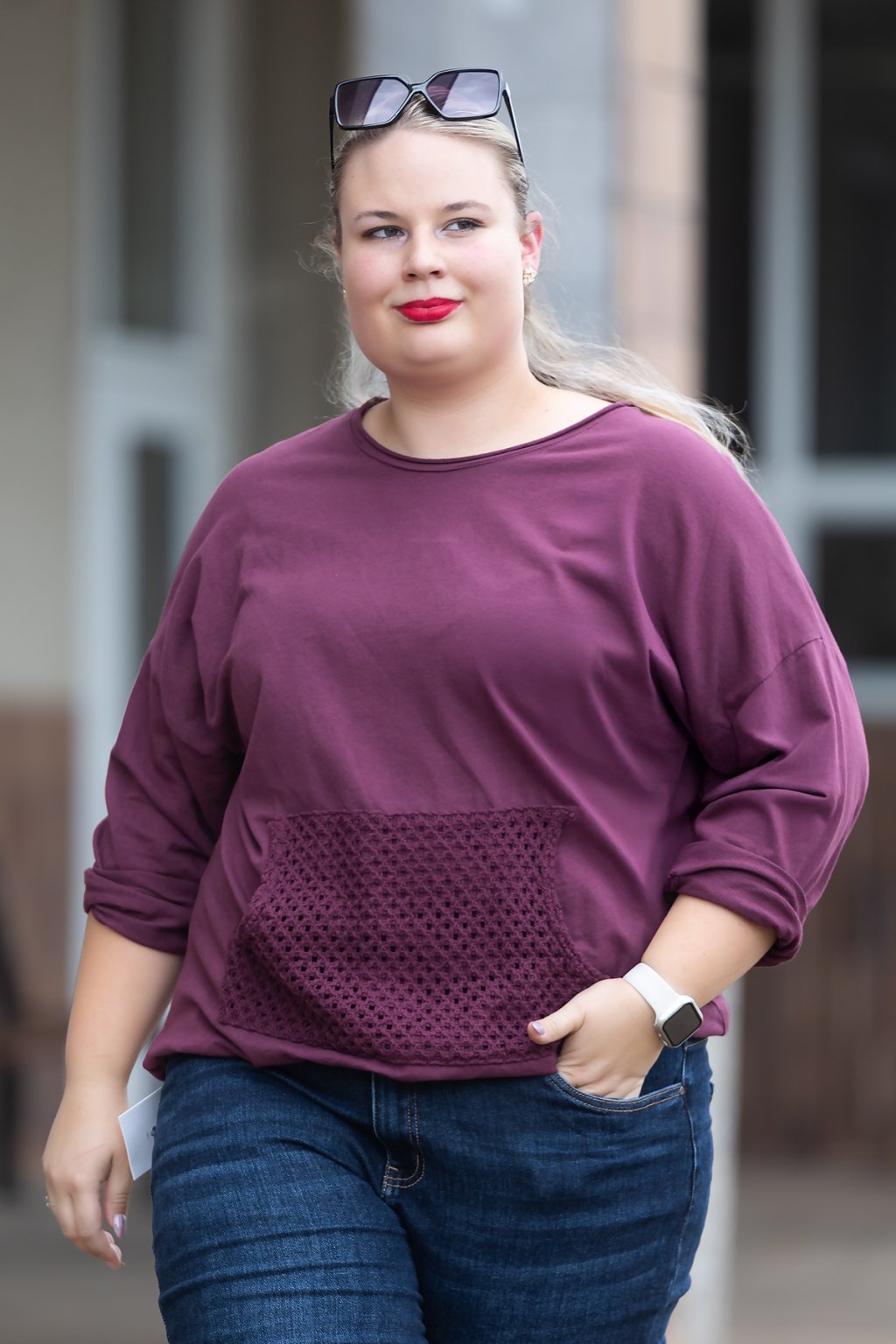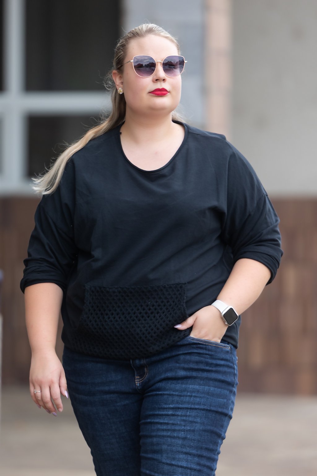 Dámské tričko s vázáním MIRIAM je nevšední kousek, kterým doladíš svůj outfit k dokonalosti. Tričko má 3/4 rukáv a na přední straně je zdobena klokánkovou kapsou, která je z háčkované síťky. Síťka vytváří na tričku krásný efekt a udělá z obyčejného trička naprosto ojedinělý kousek. Dolní lem se krásně přizpůsobí tvé postavě tkaničkou, díky které vykouzlíš z trička každý den trochu jiný kousek. Výstřih má tričko střižený do kulata a je dostupné v mnoha krásných barvách. Nejlépe sedí na postavu s velikostí 2XL-4XL.