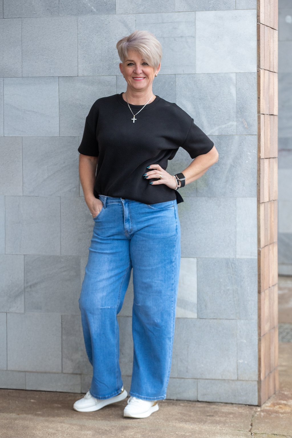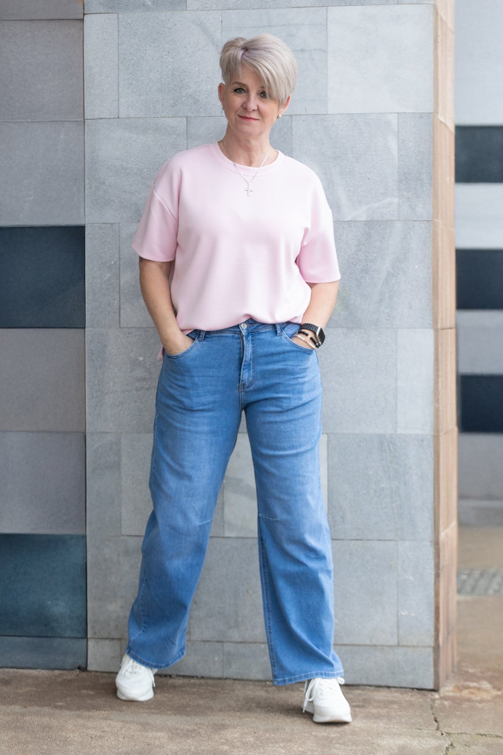 Tento model pro tebe nafotila naše Raduška, běžně nosí velikost L/XL a její míry najdeš zde.