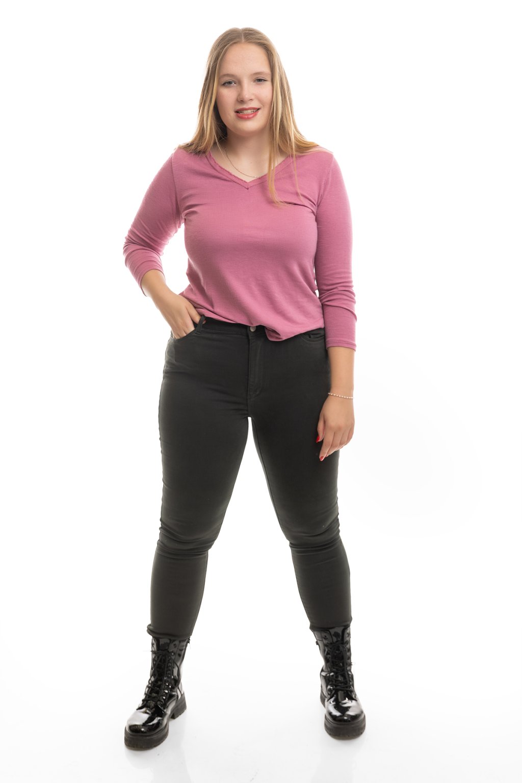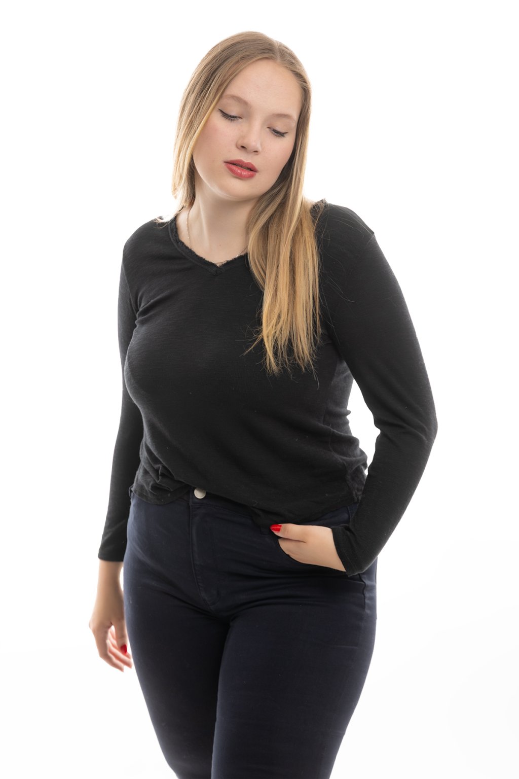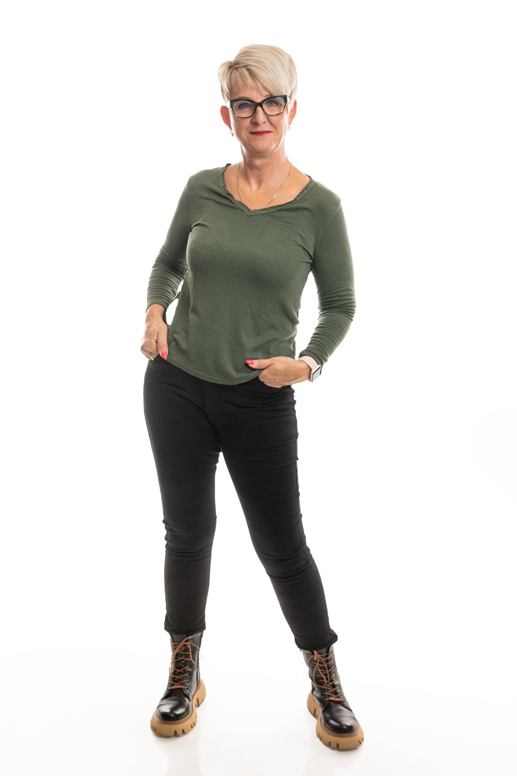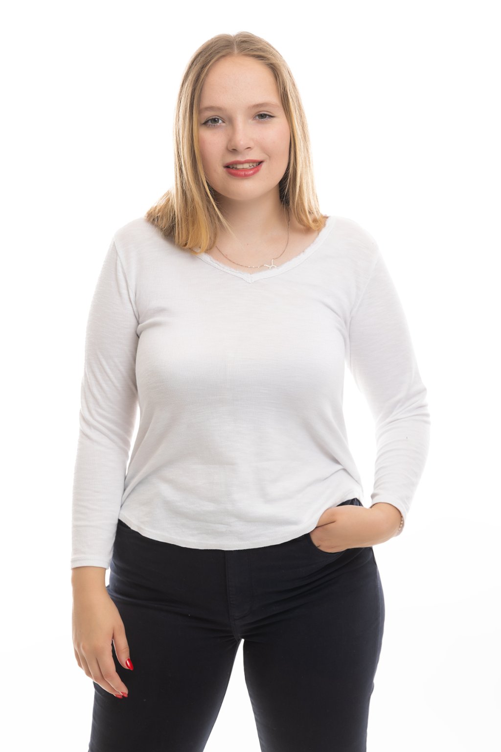 Dámské tričko VELA je krásný a pohodlný kousek z příjemného materiálu. Tento svršek je perfektní univerzální kousek, který perfektně dotvoří každý Tvůj outfit. Tričko má dlouhé rukávy a výstřih do V, který navíc zdobí roztřepené lemování. Nejlépe sedne na velikost M-XL a najdeš ho u nás ve spoustě krásných barev.