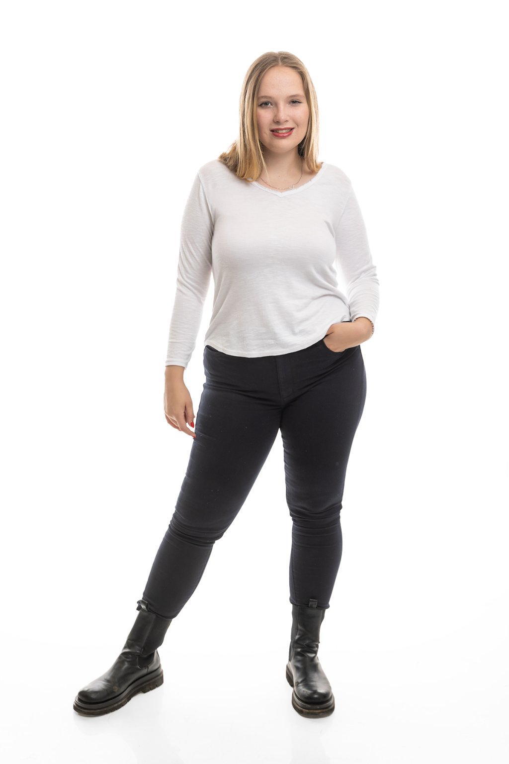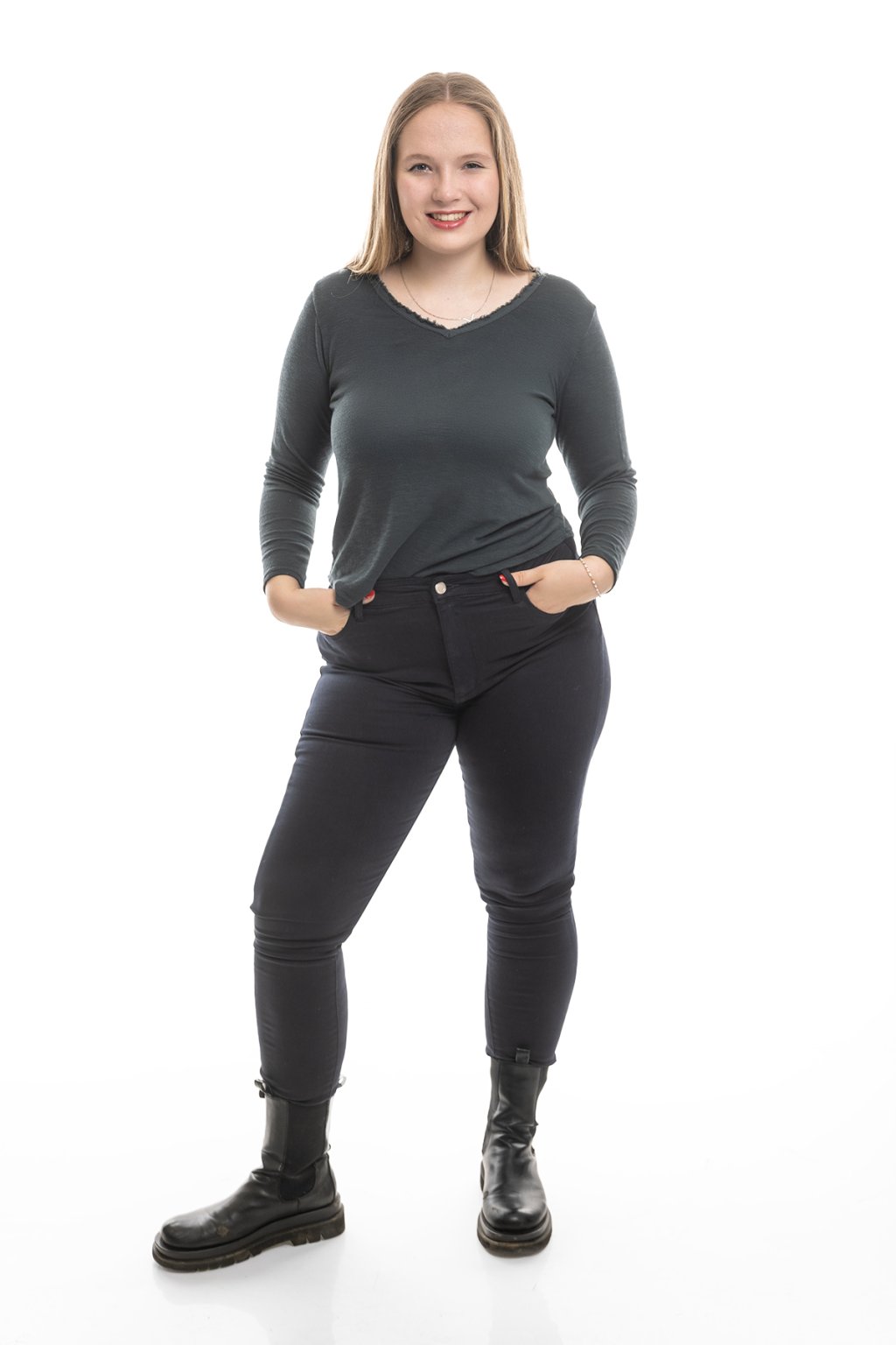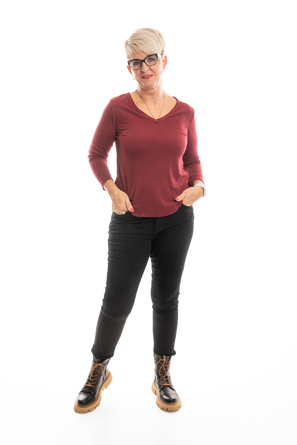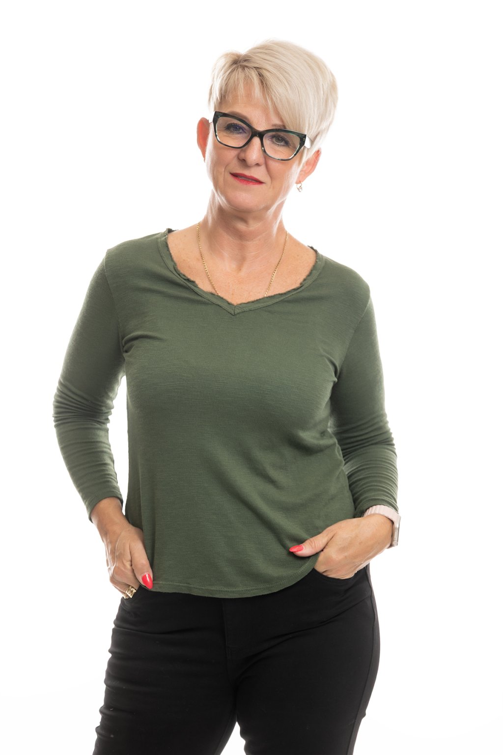 Dámské tričko VELA je krásný a pohodlný kousek z příjemného materiálu. Tento svršek je perfektní univerzální kousek, který perfektně dotvoří každý Tvůj outfit. Tričko má dlouhé rukávy a výstřih do V, který navíc zdobí roztřepené lemování. Nejlépe sedne na velikost M-XL a najdeš ho u nás ve spoustě krásných barev.