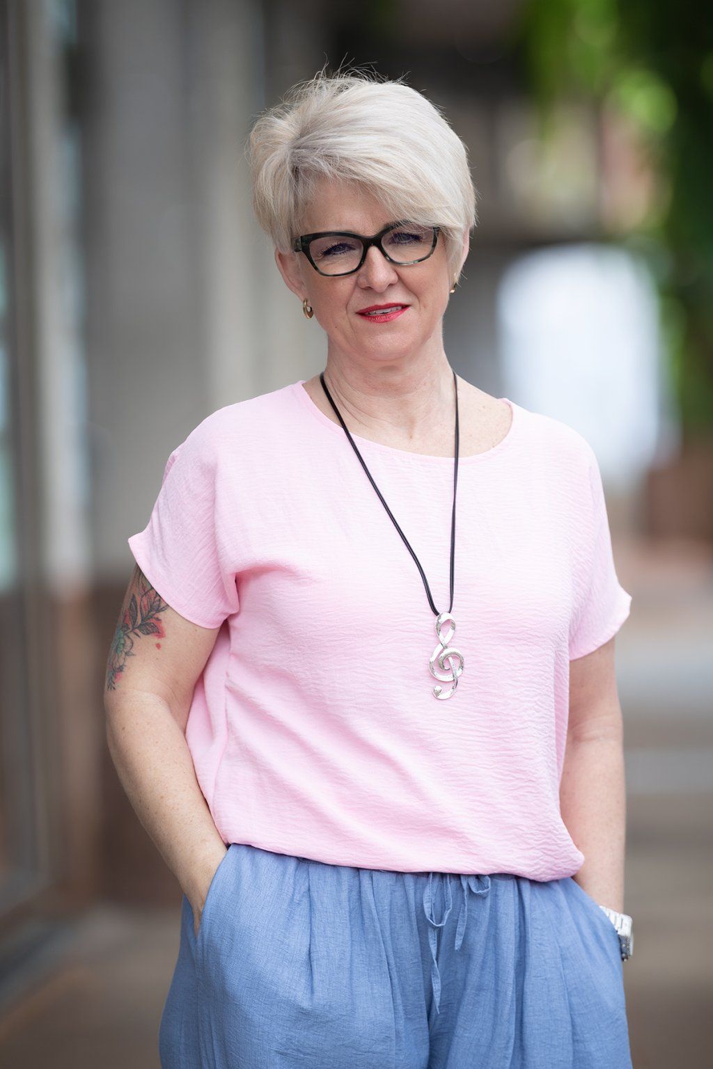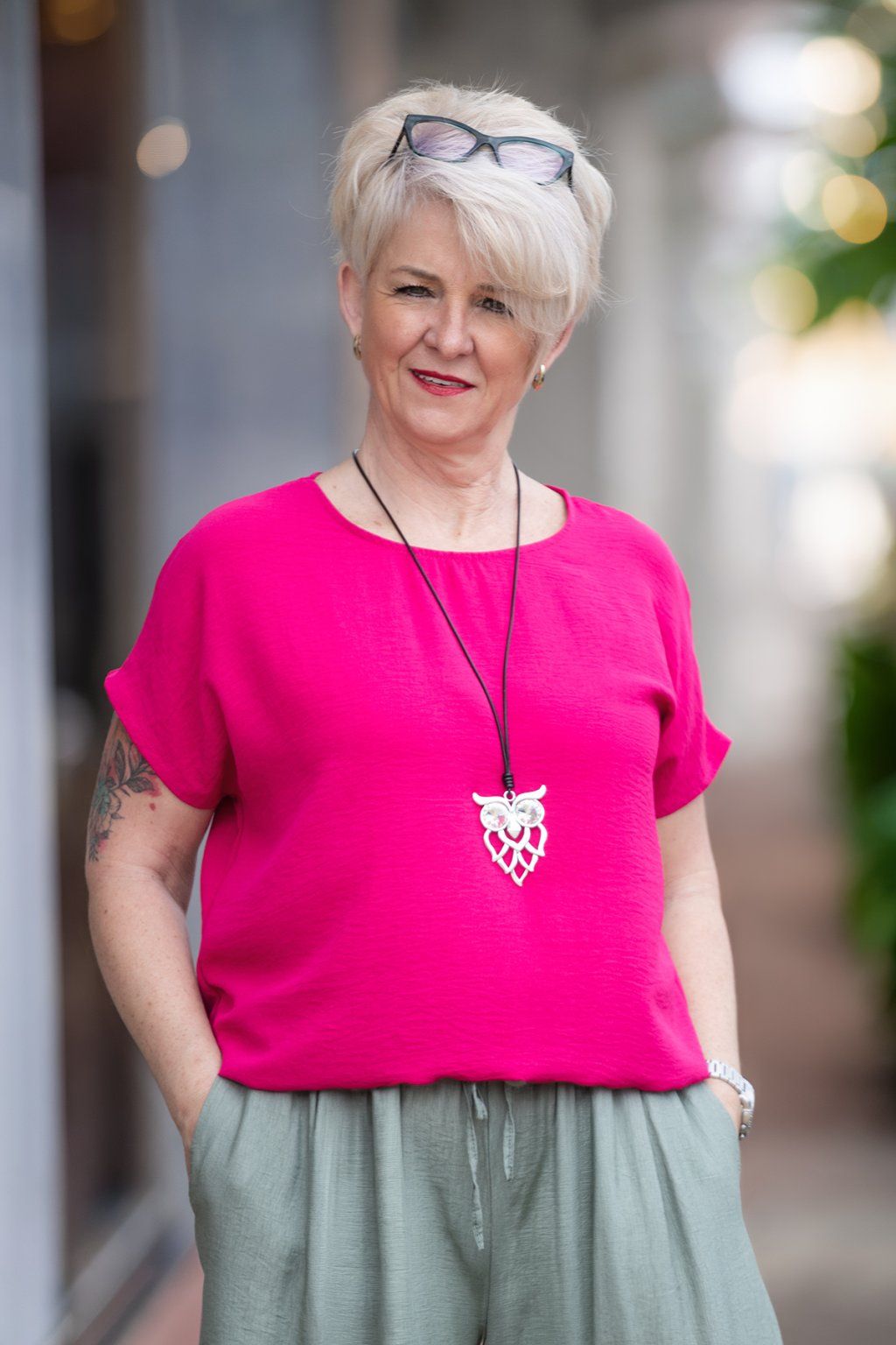 Dámské tričko VIOLETA se hodí pro slavnostní i všední příležitosti. Díky zakončení spodního lemu gumičkou schová bříško. Rukávy trička jsou krátké a mají volnější střih. Nejlépe sedne velikostem M až XL. Vybírat můžeš z 15 barev.