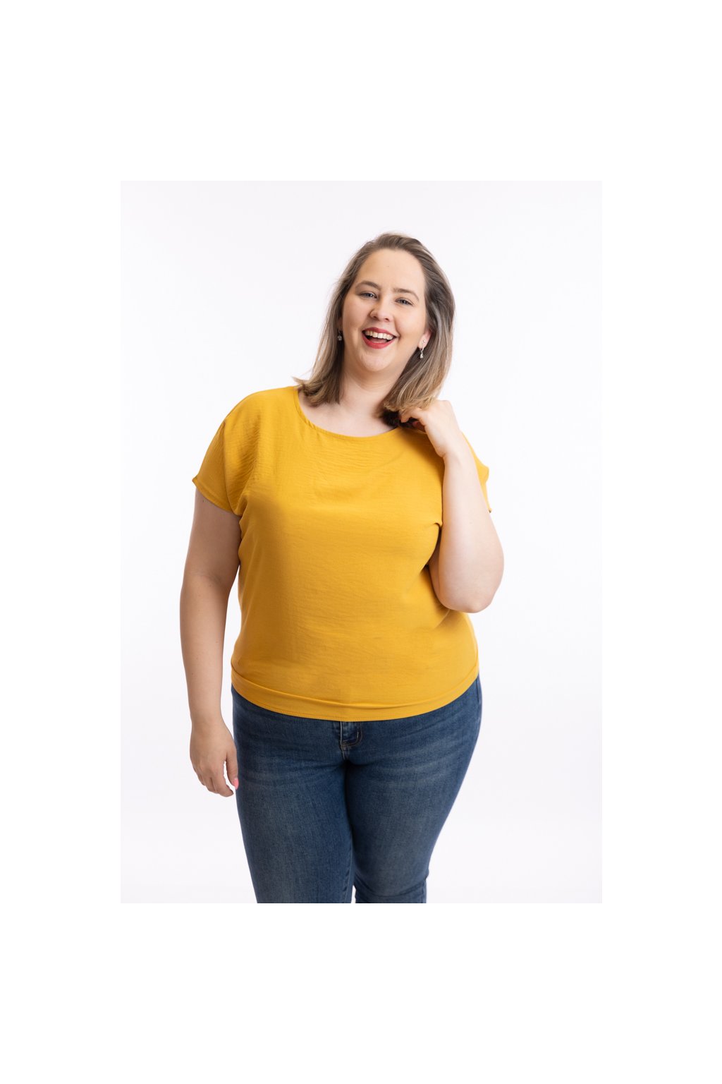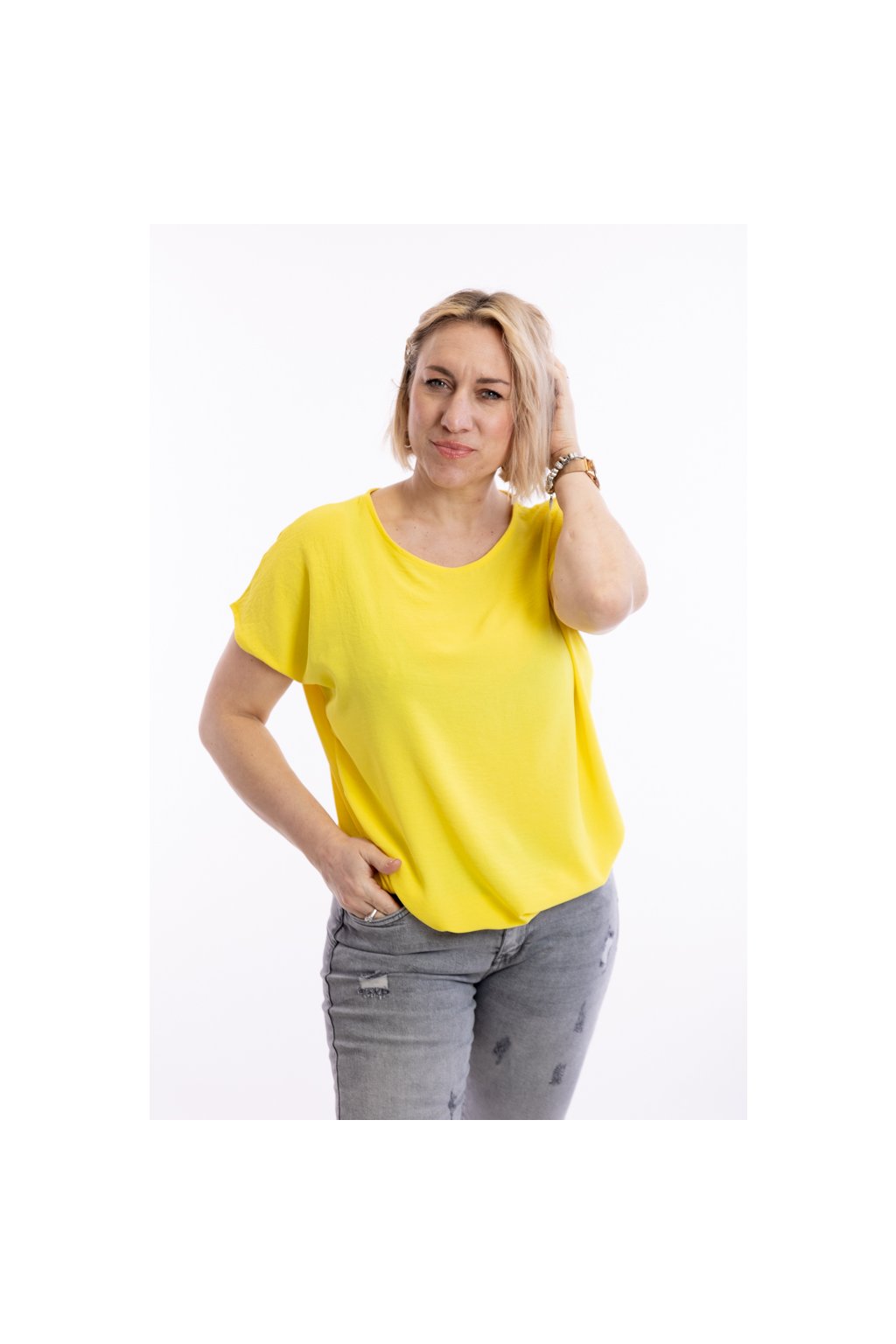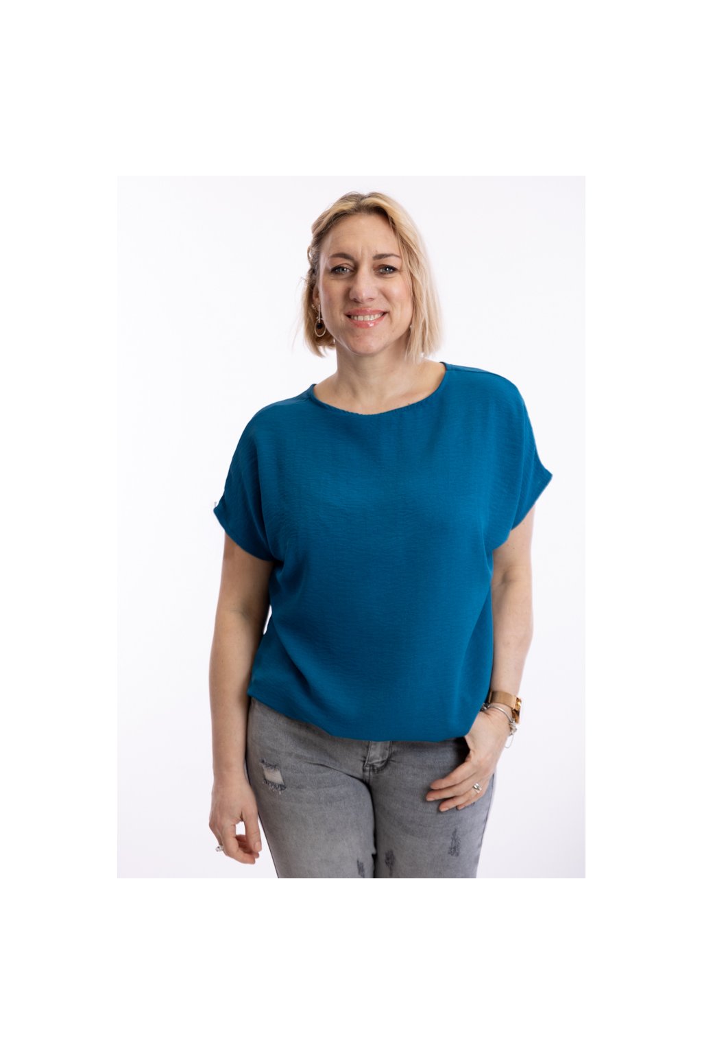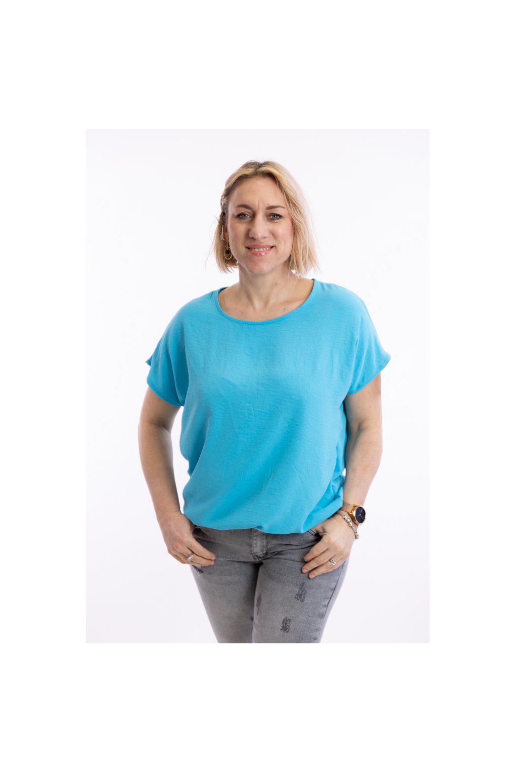 Dámské tričko VIOLETA se hodí pro slavnostní i všední příležitosti. Díky zakončení spodního lemu gumičkou schová bříško. Rukávy trička jsou krátké a mají volnější střih. Nejlépe sedne velikostem M až XL. Vybírat můžeš z 15 barev.