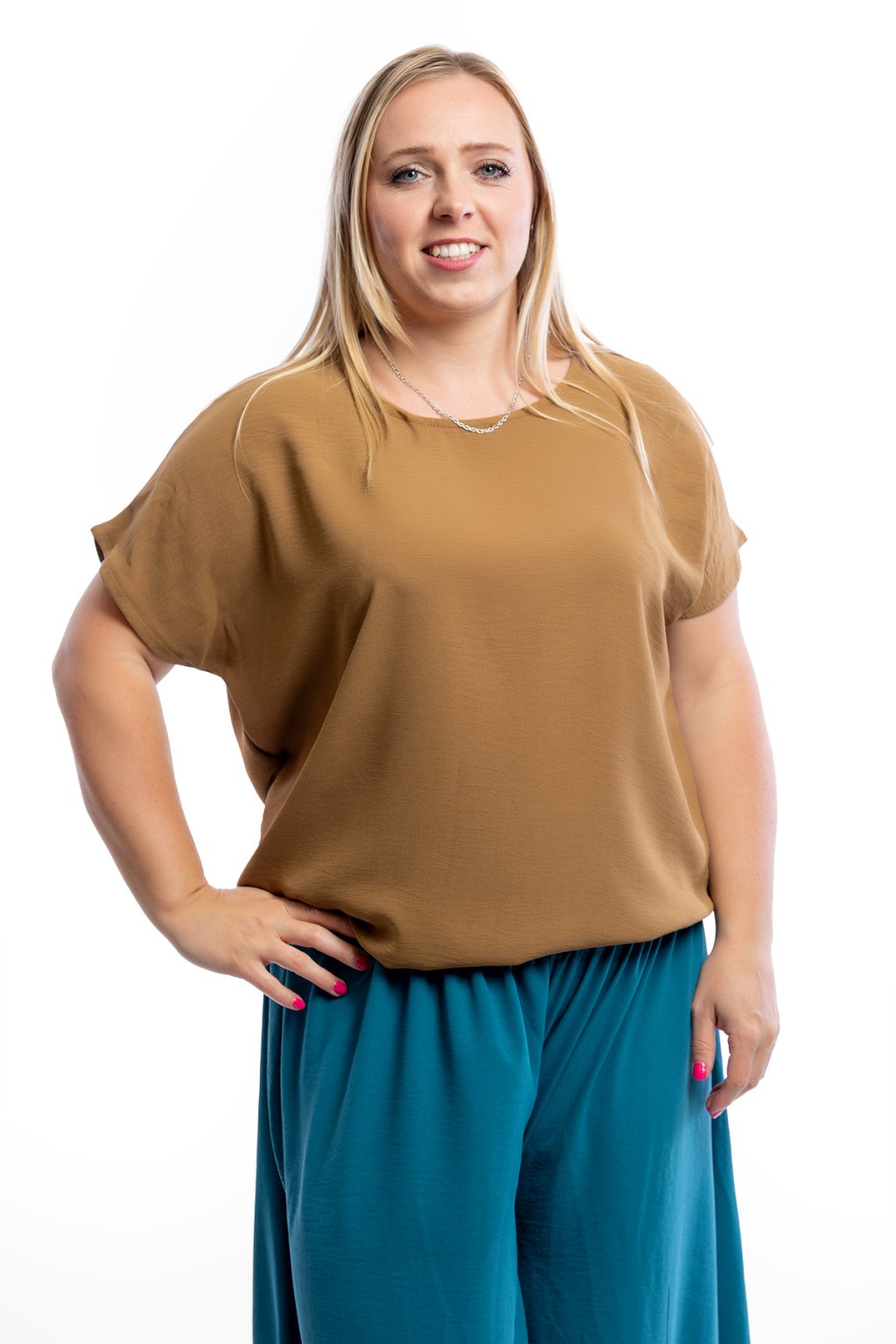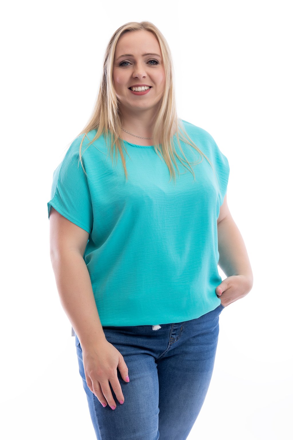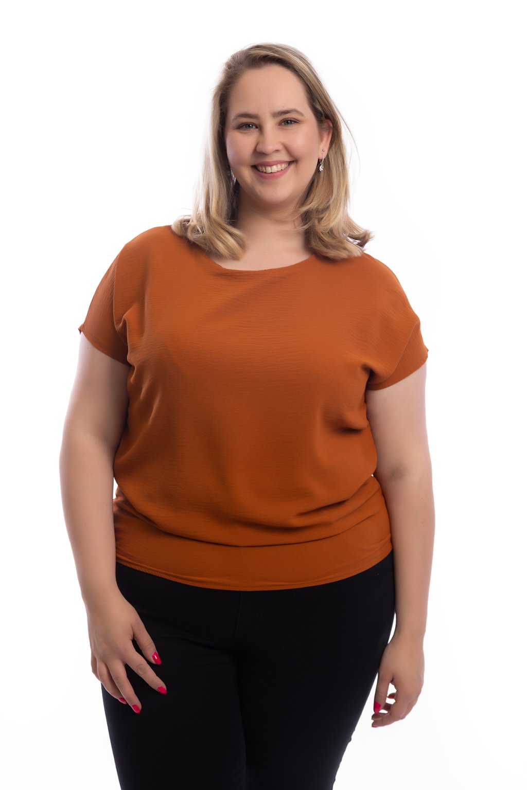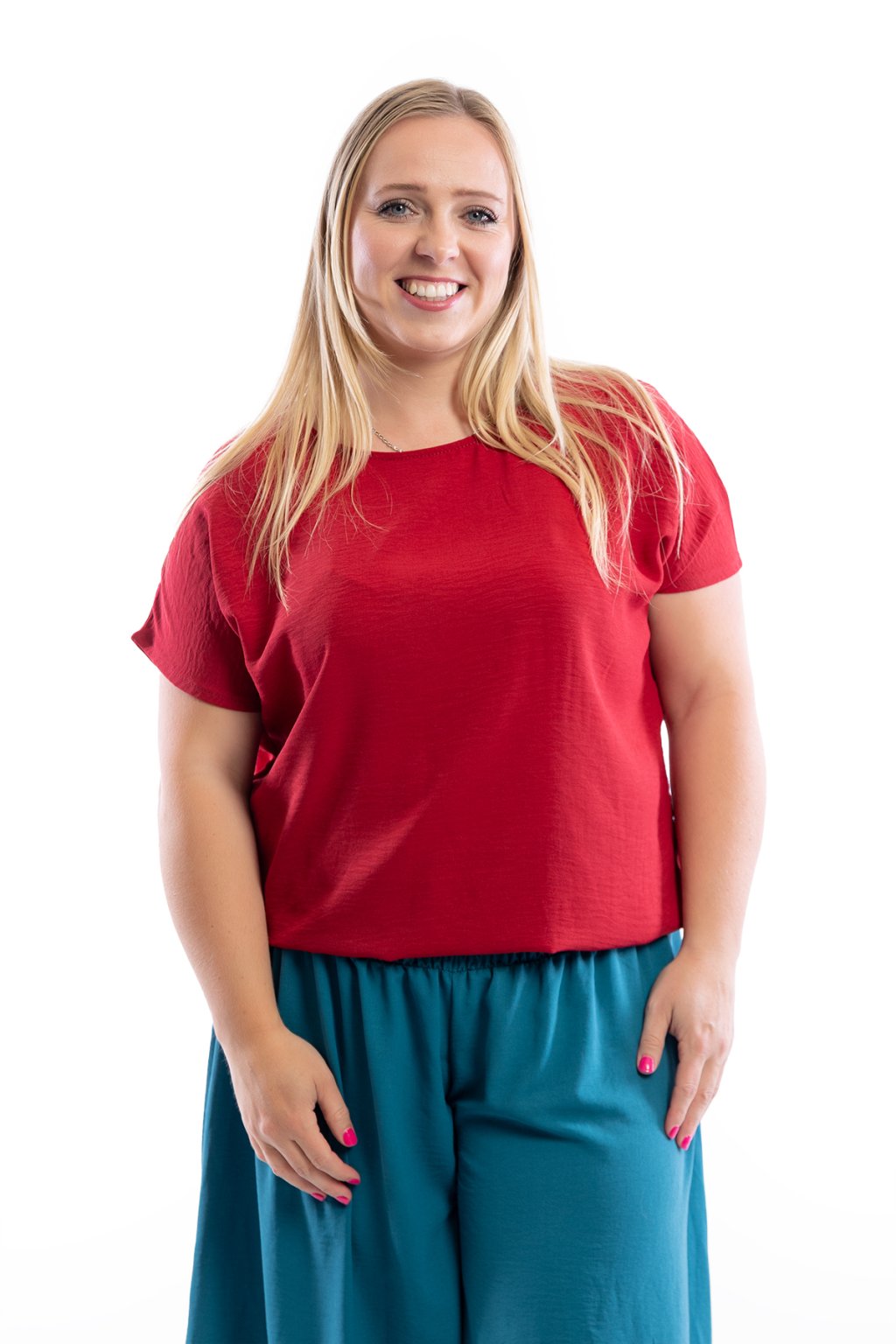 Dámské tričko VIOLETA se hodí pro slavnostní i všední příležitosti. Díky zakončení spodního lemu gumičkou schová bříško. Rukávy trička jsou krátké a mají volnější střih. Nejlépe sedne velikostem M až XL. Vybírat můžeš z 15 barev.